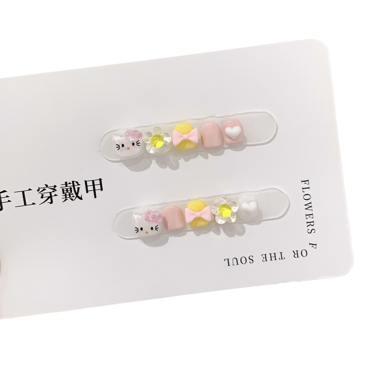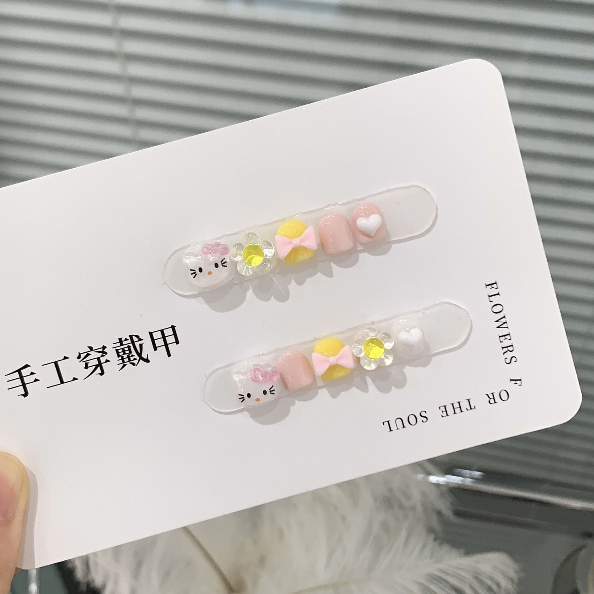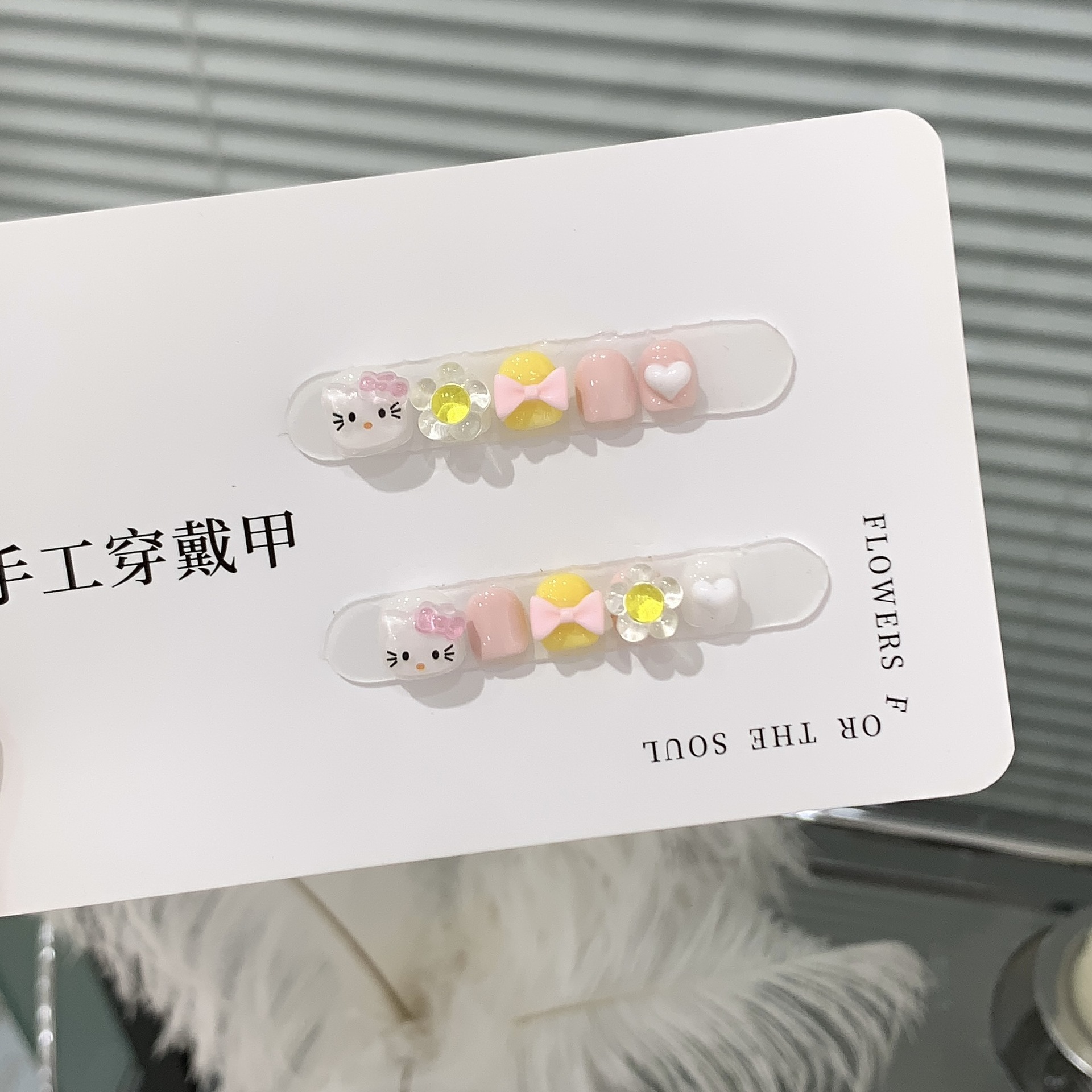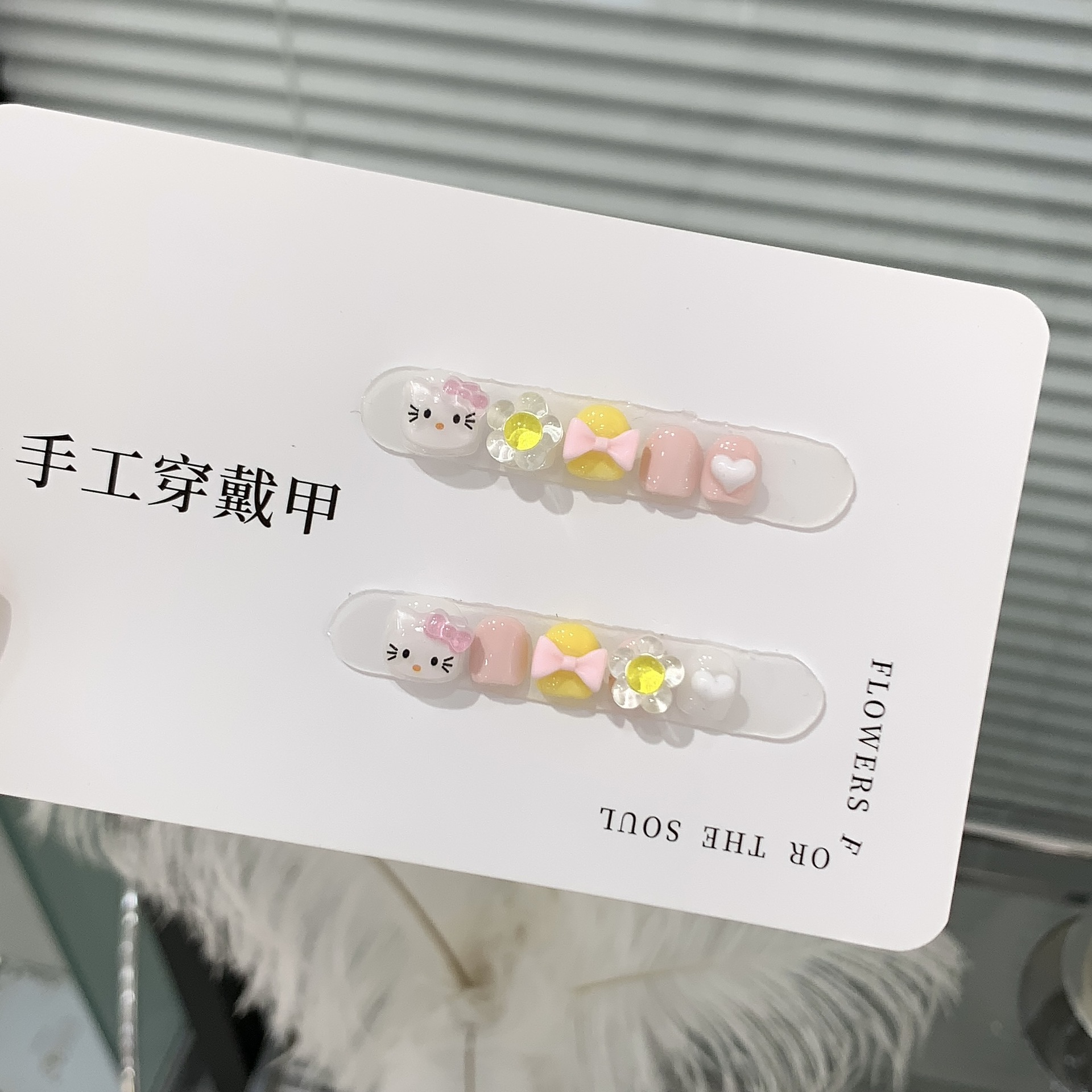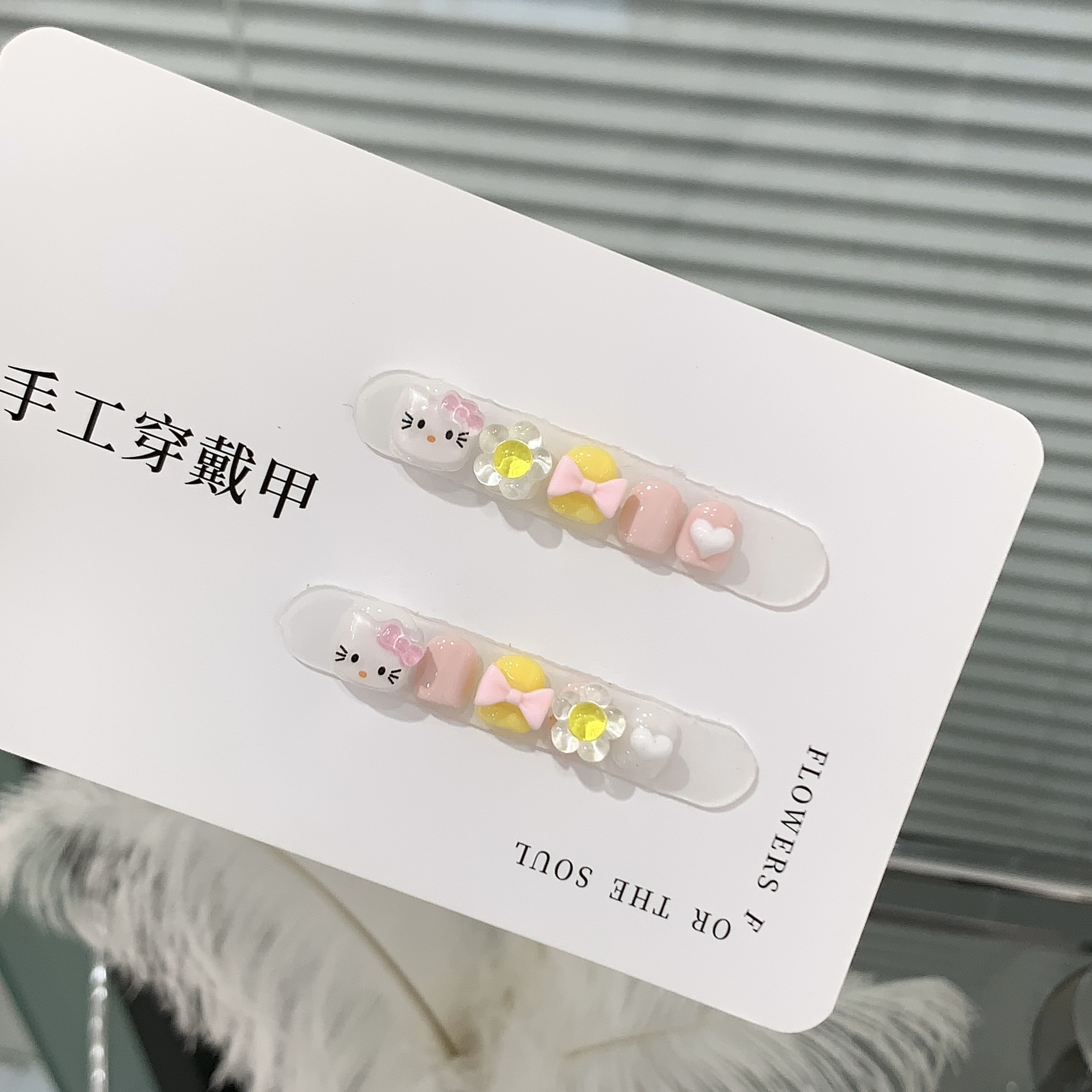 一只顾美甲 卡通可爱花朵蝴蝶结多巴胺星粉Kitty儿童日常穿戴甲