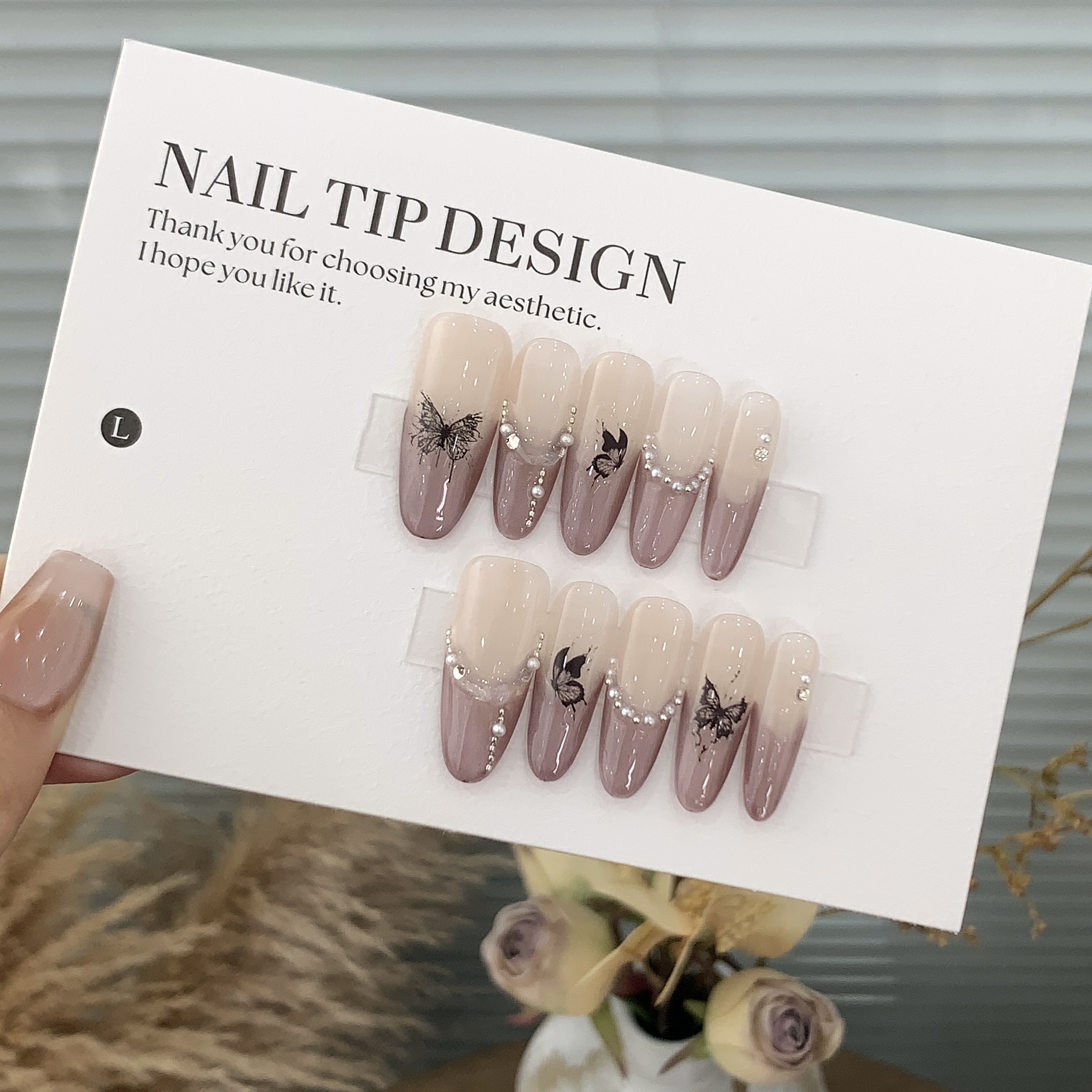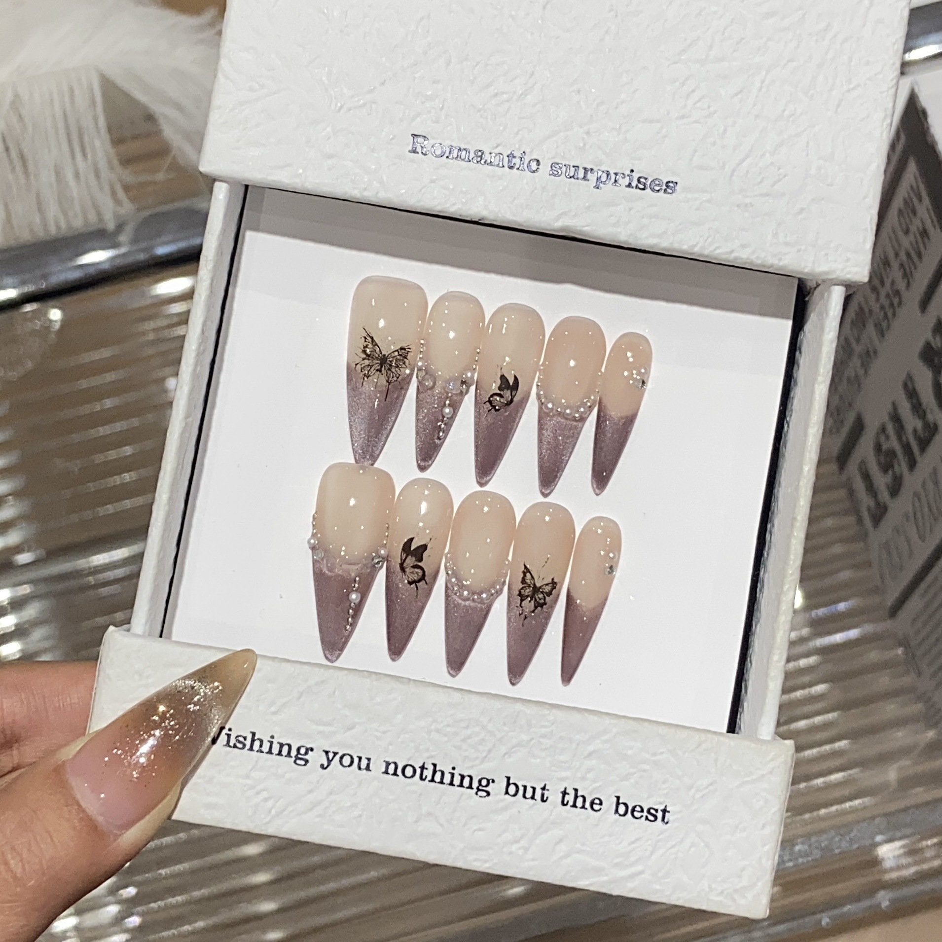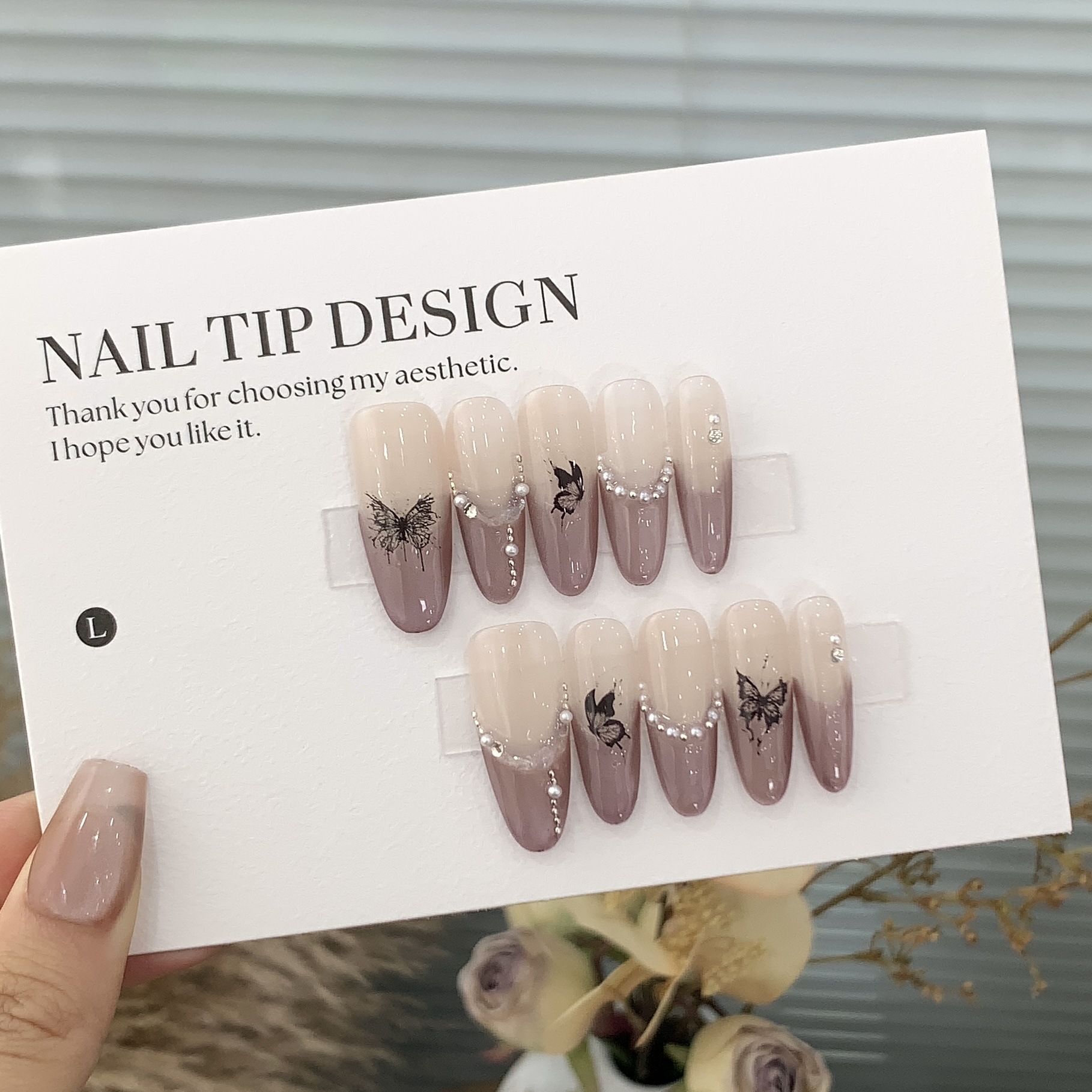 【手工穿戴甲】美甲贴片假指甲贴片成品冰透色蝴蝶甲片可拆卸穿戴