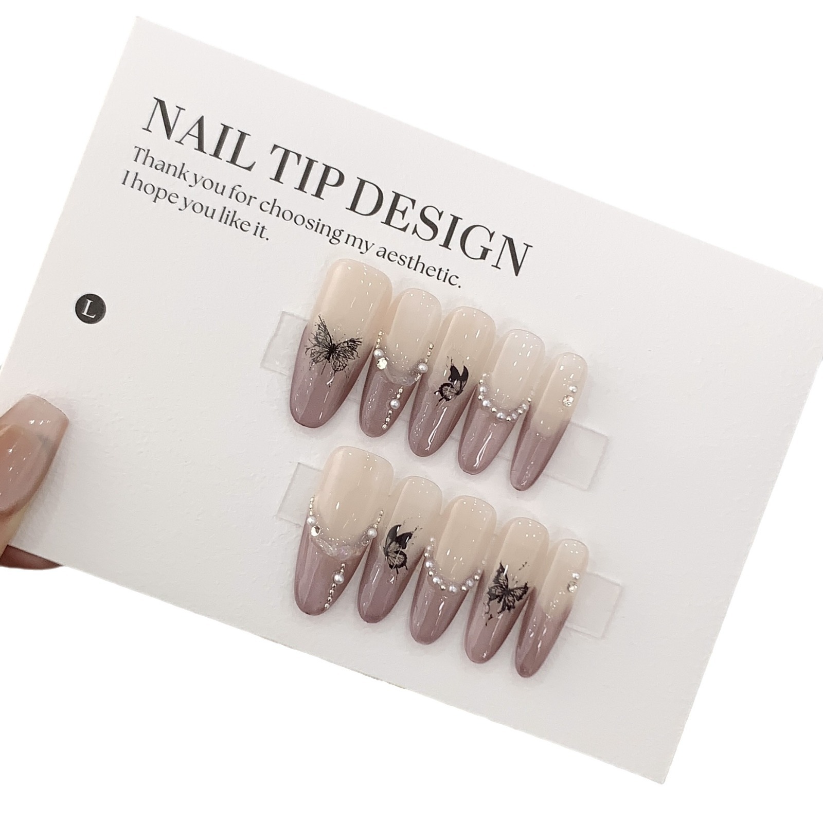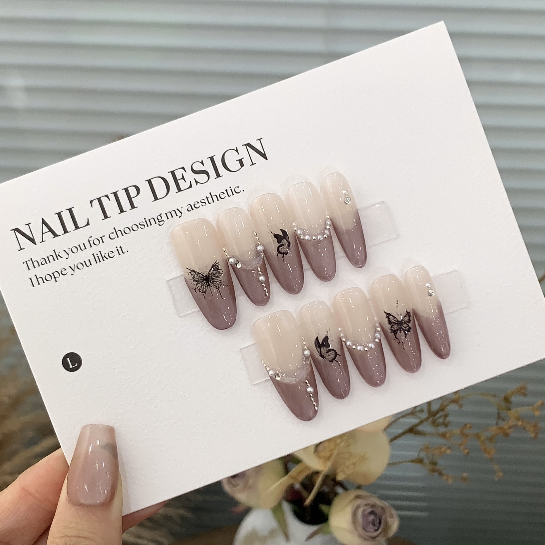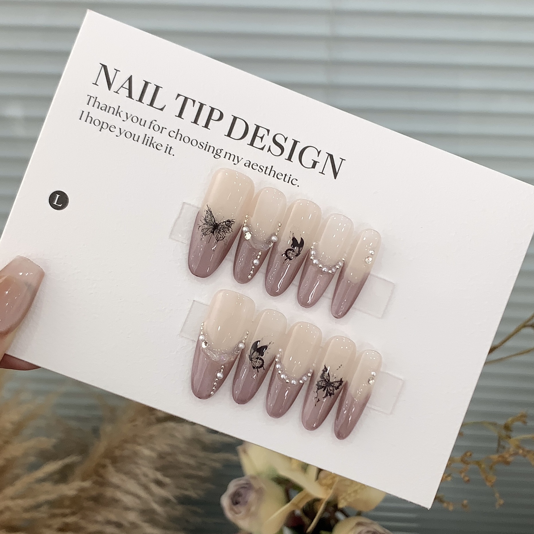 【手工穿戴甲】美甲贴片假指甲贴片成品冰透色蝴蝶甲片可拆卸穿戴