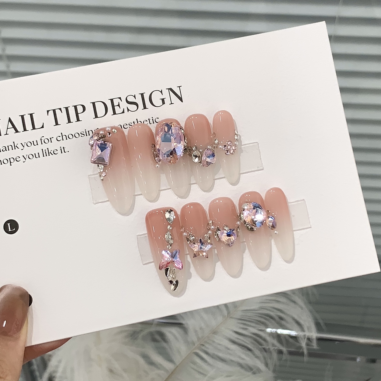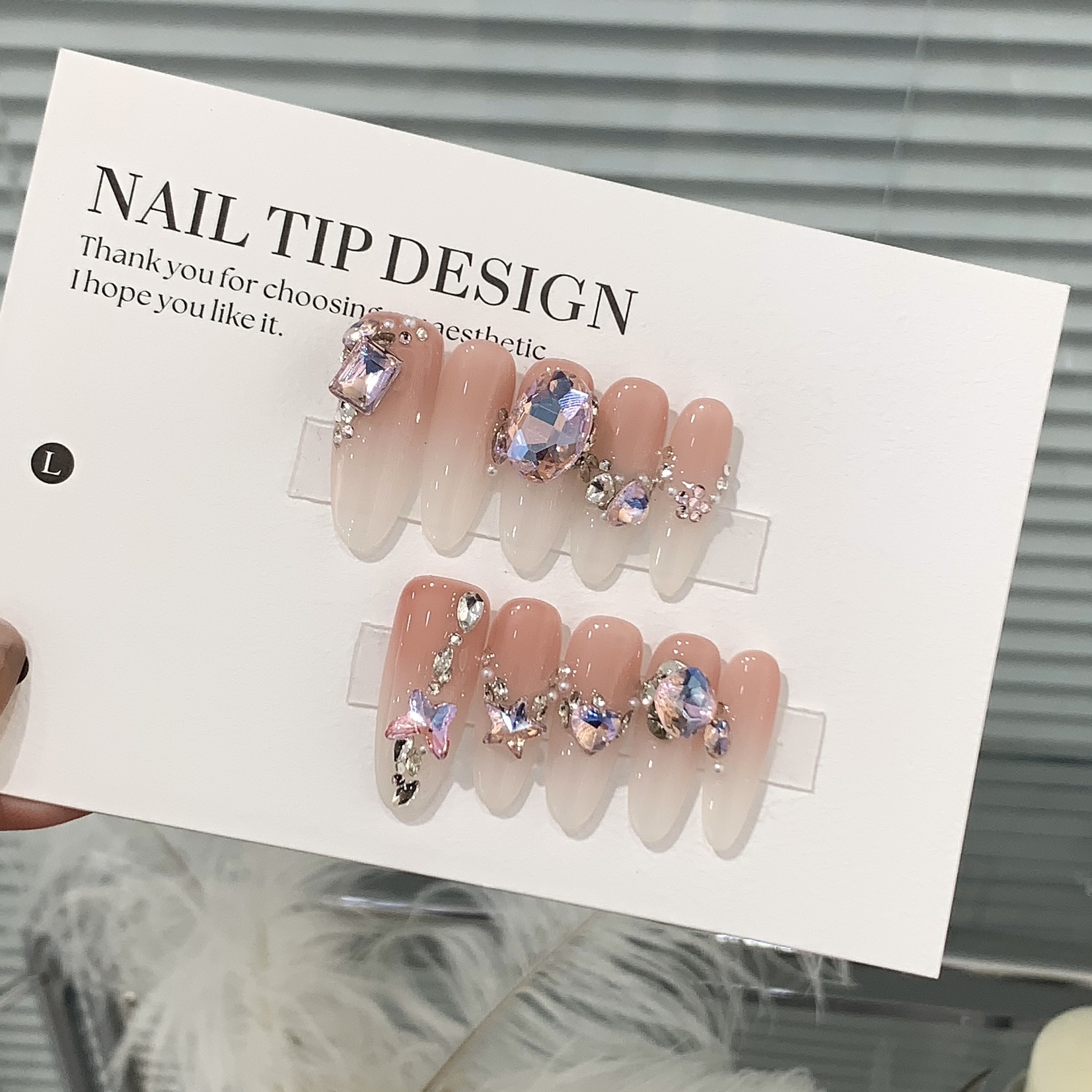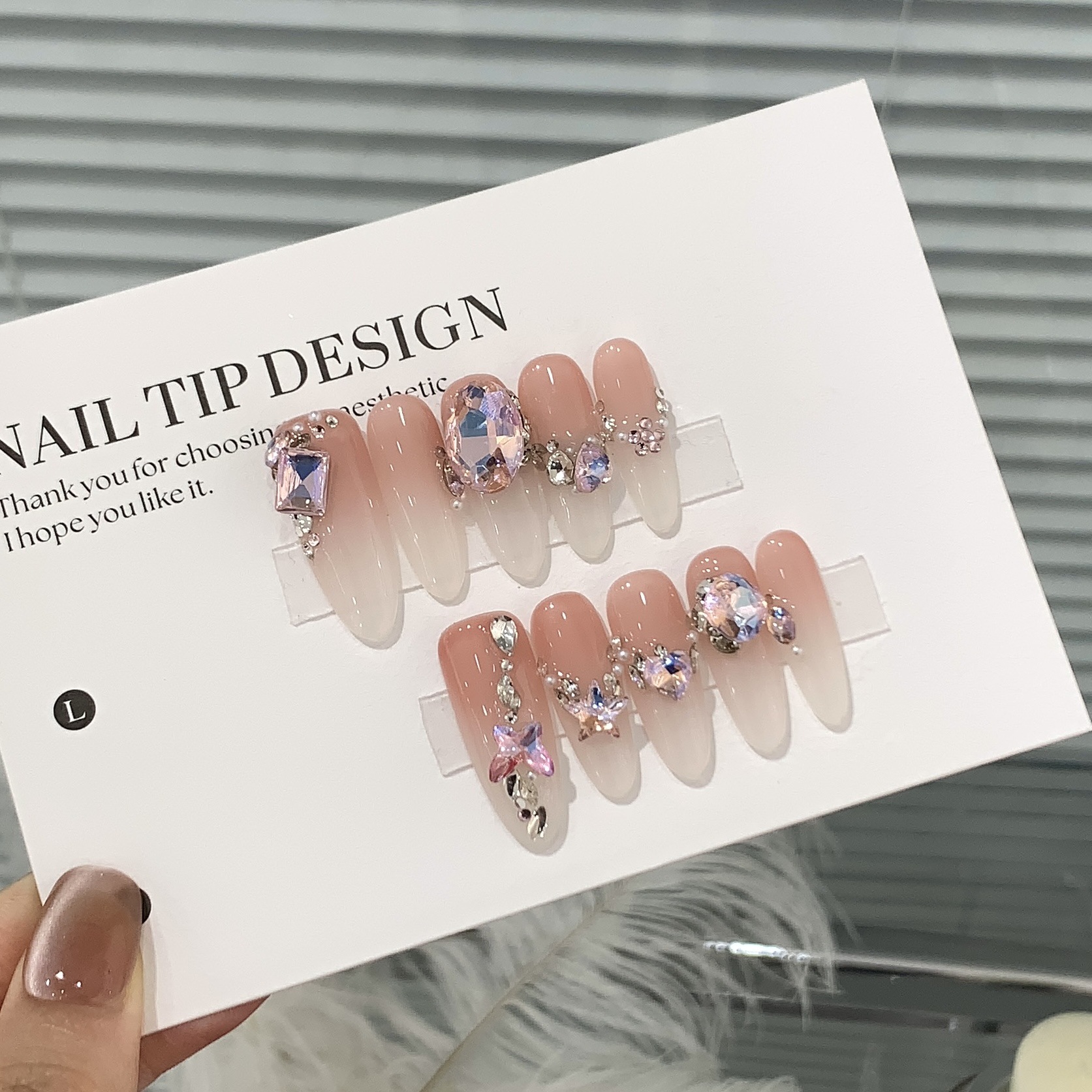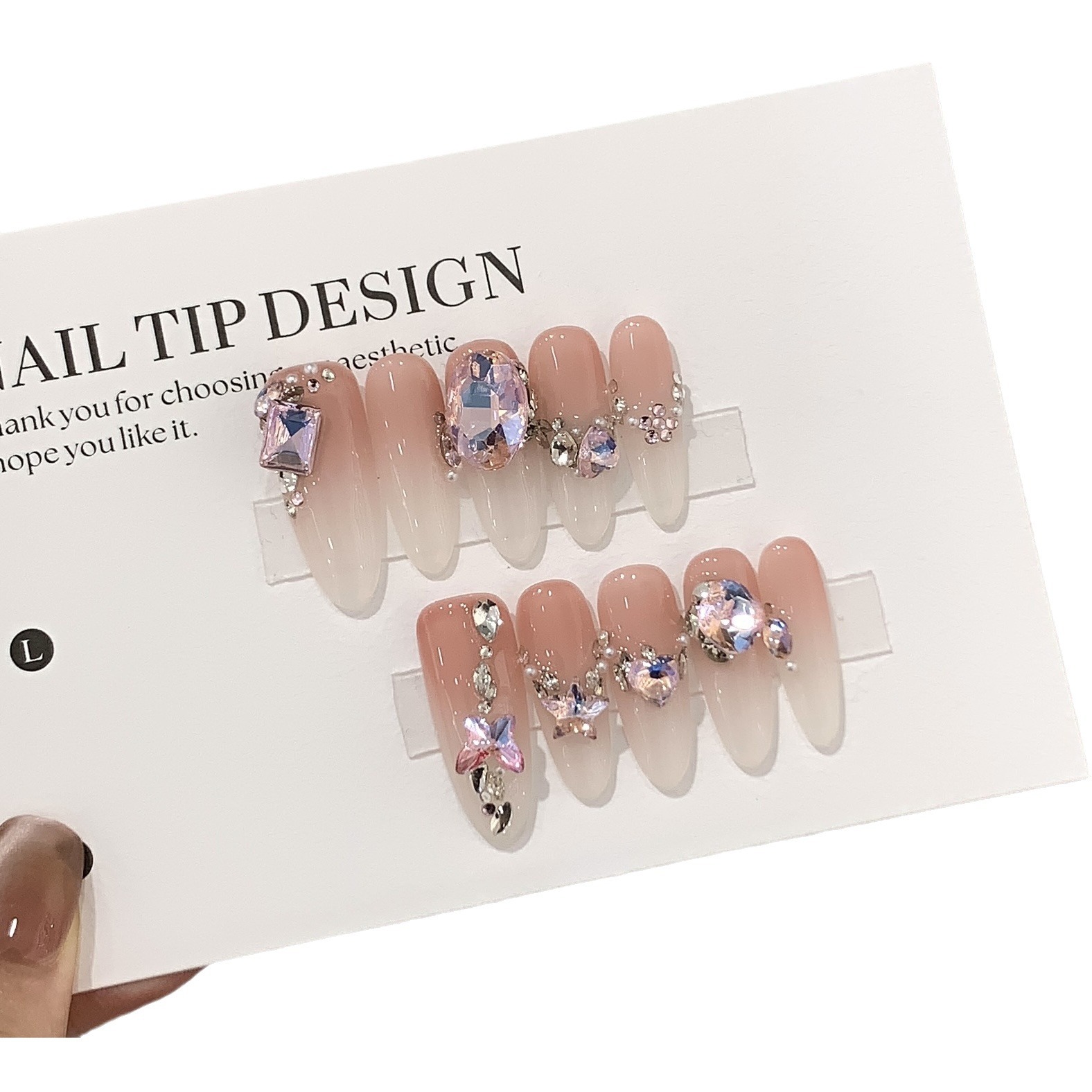 一只顾美甲 【Y】 蜜桃渐变小满钻彩缤椭圆堆堆钻芭比星光贴片穿