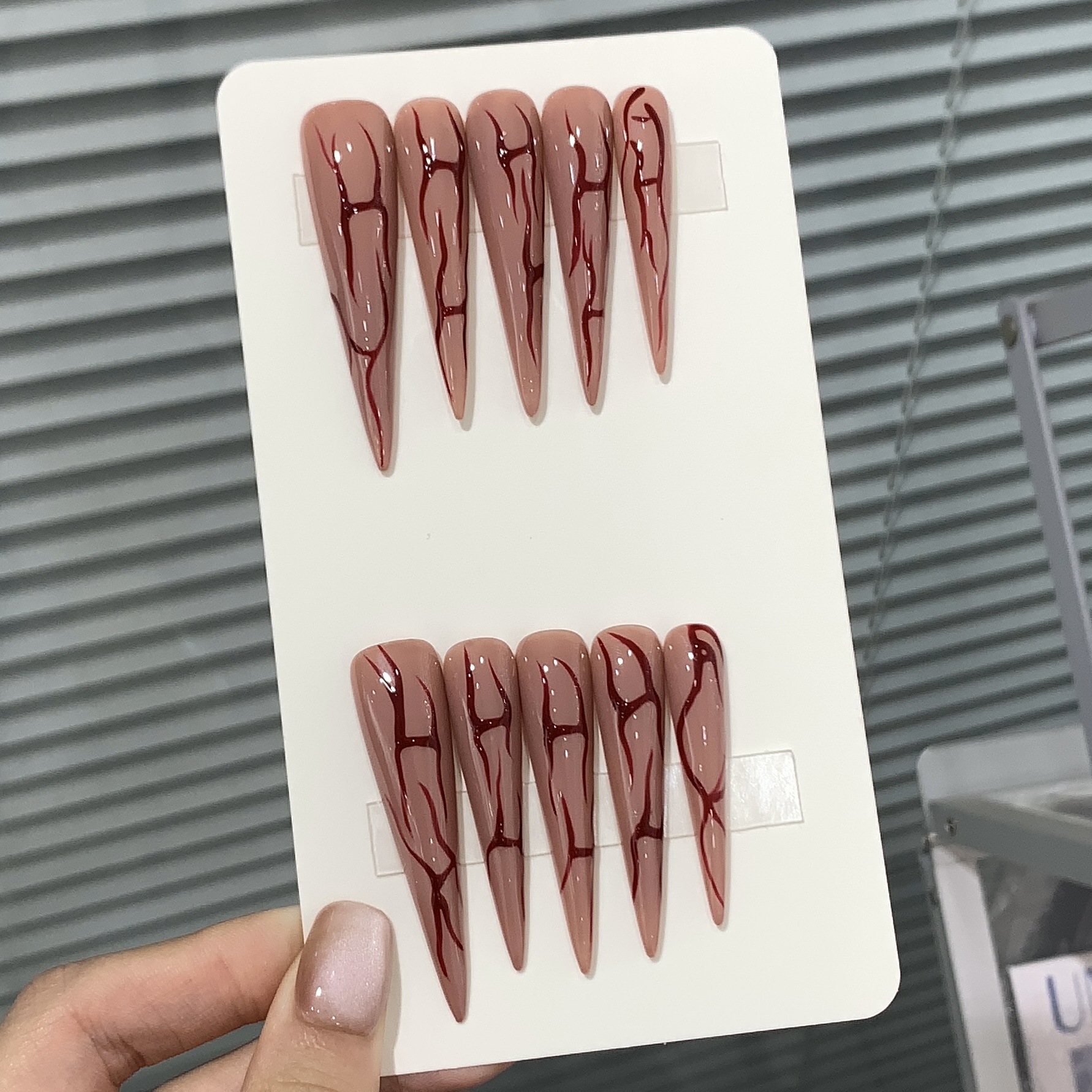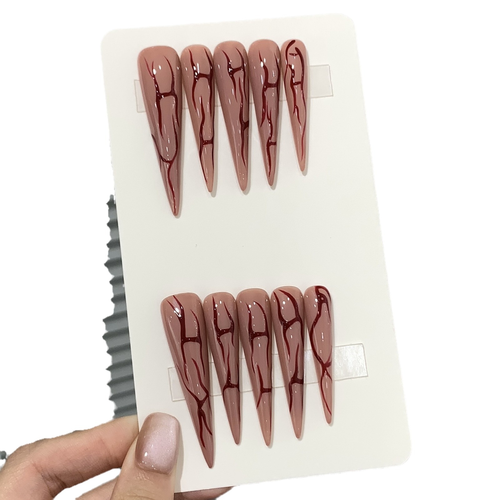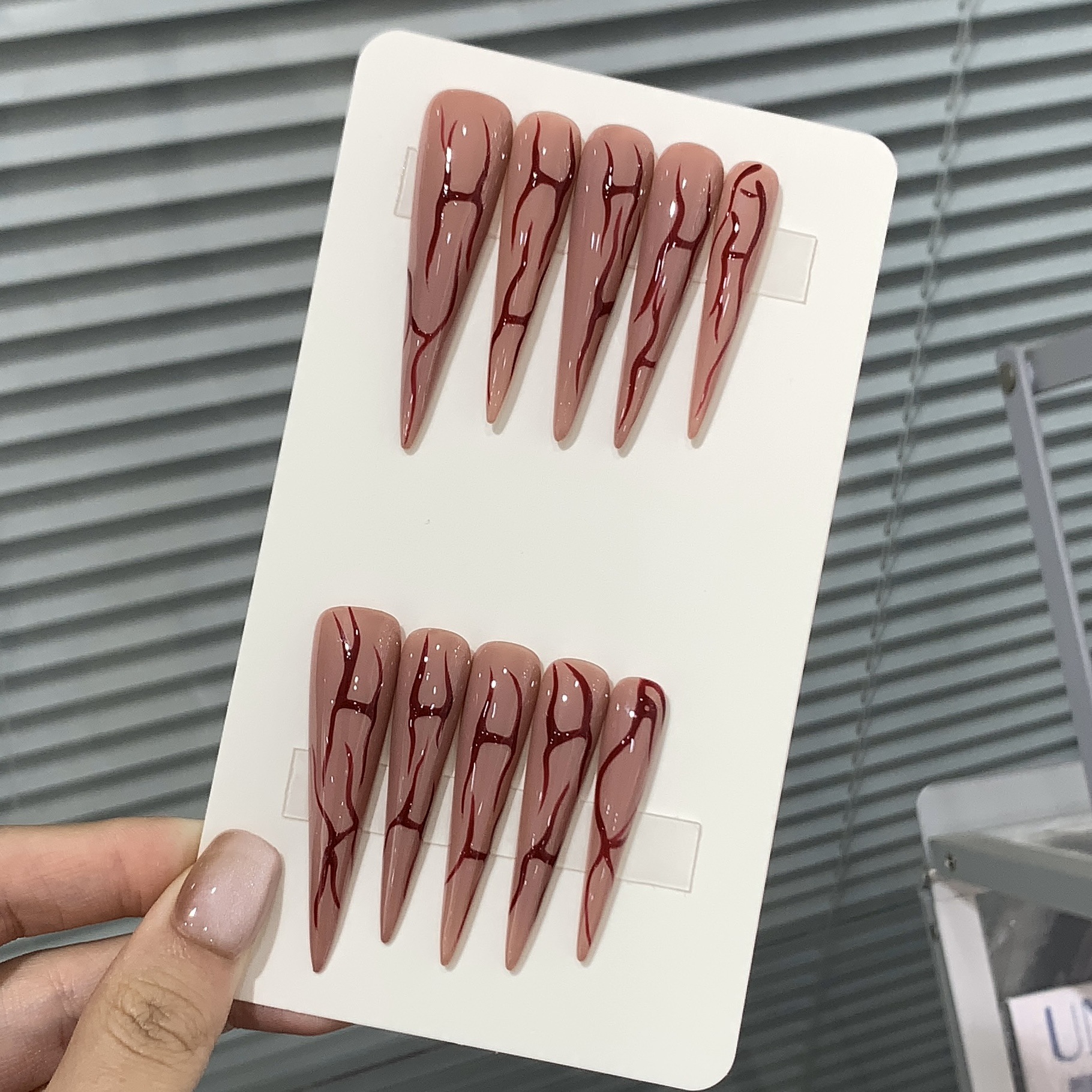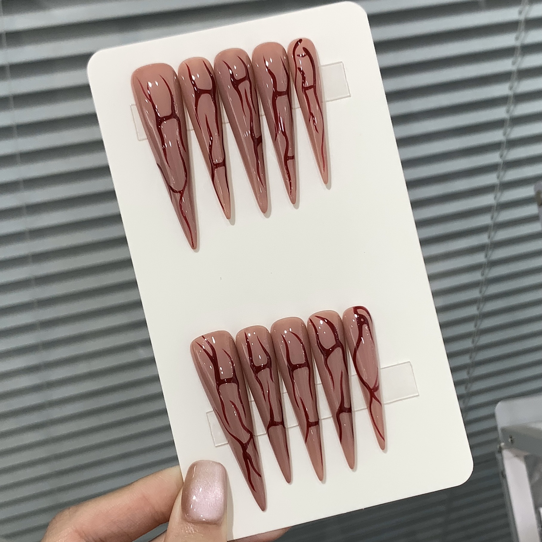 欧美穿戴甲【Y】上镜甜酷暗黑辣妹风超长尖欧美焰火可拆卸贴片穿