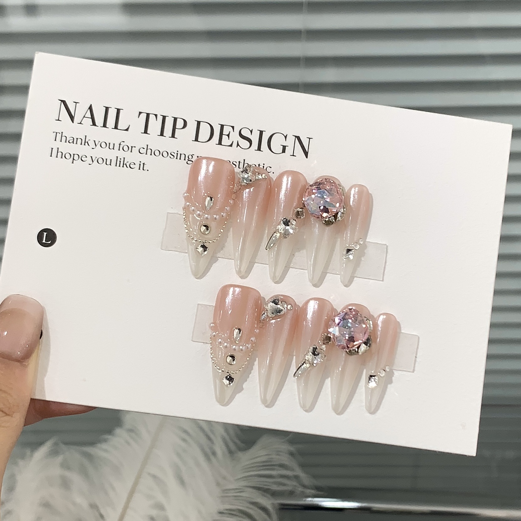 一只顾美甲 【Y】冰透渐变珍珠钢珠链条斜边蝴蝶堆堆钻落日之境