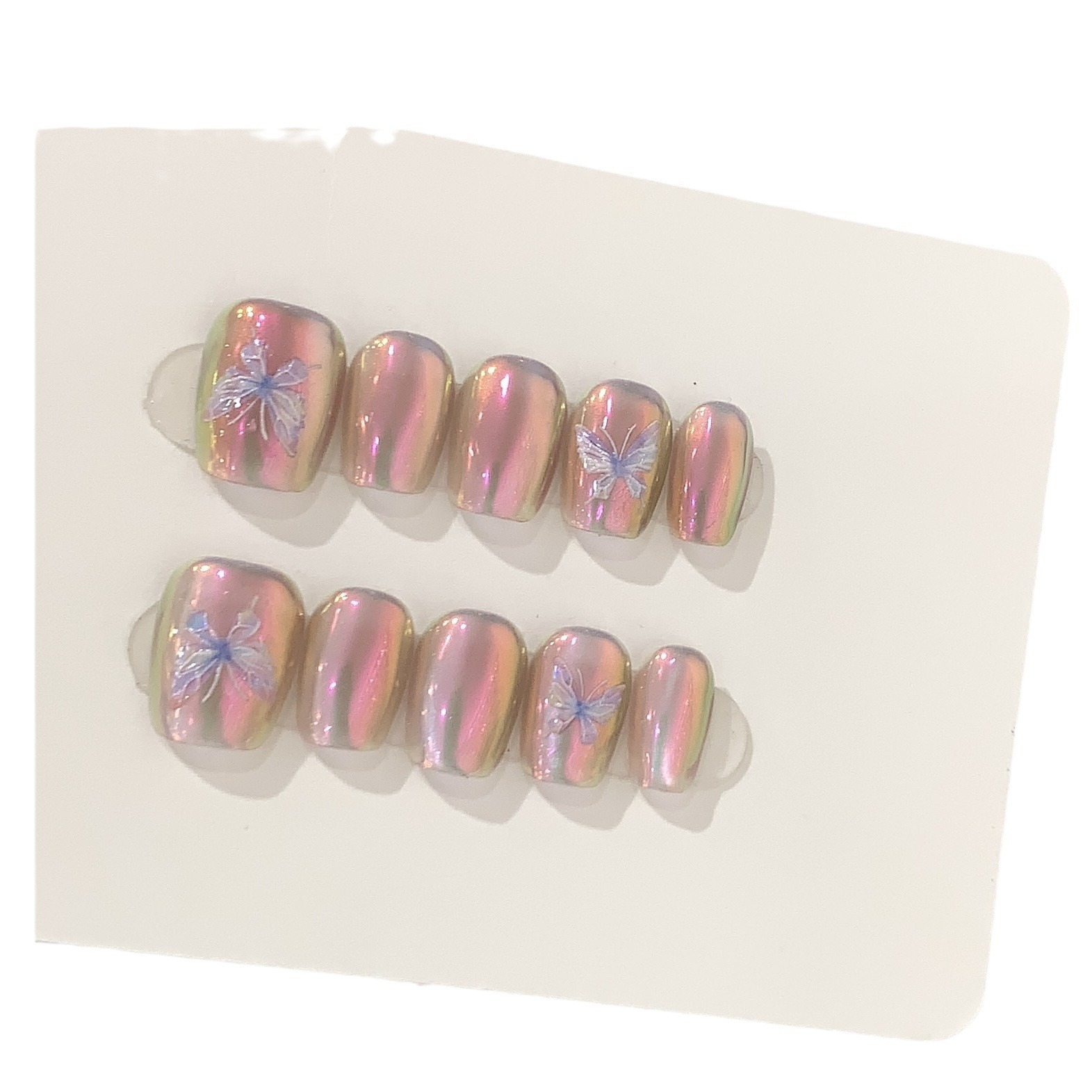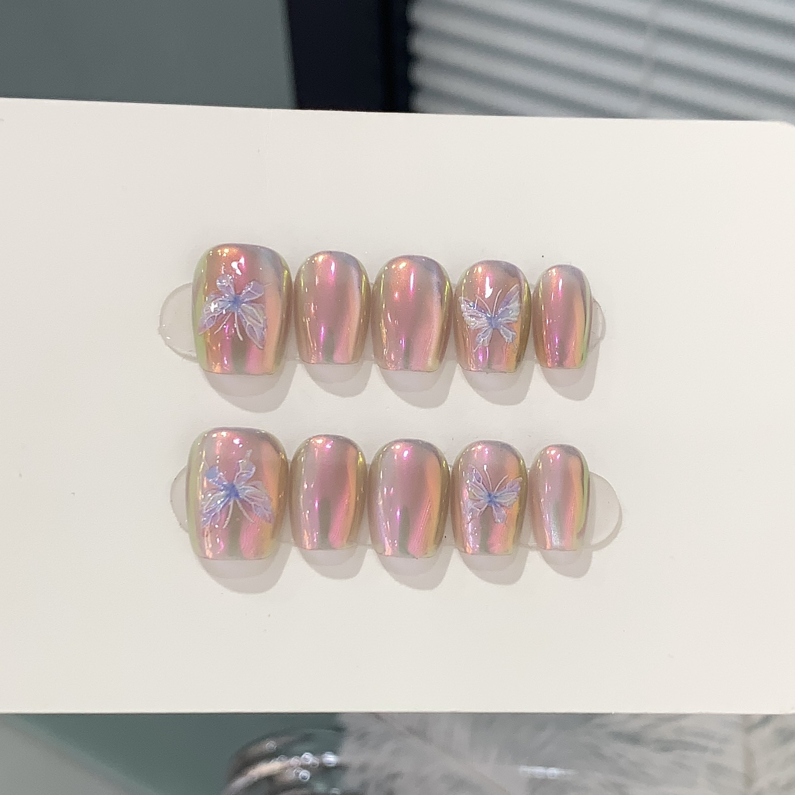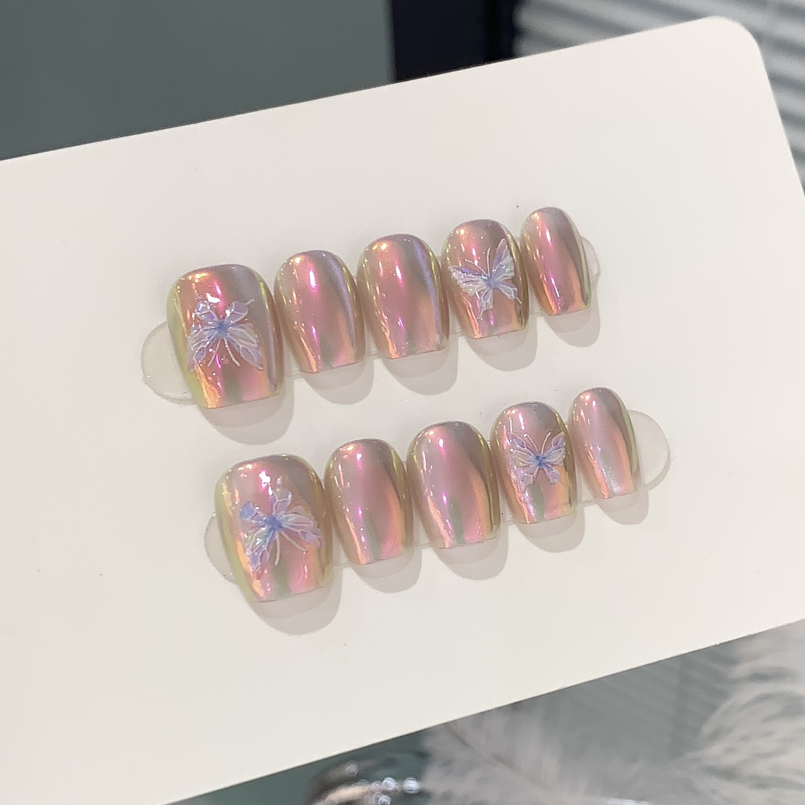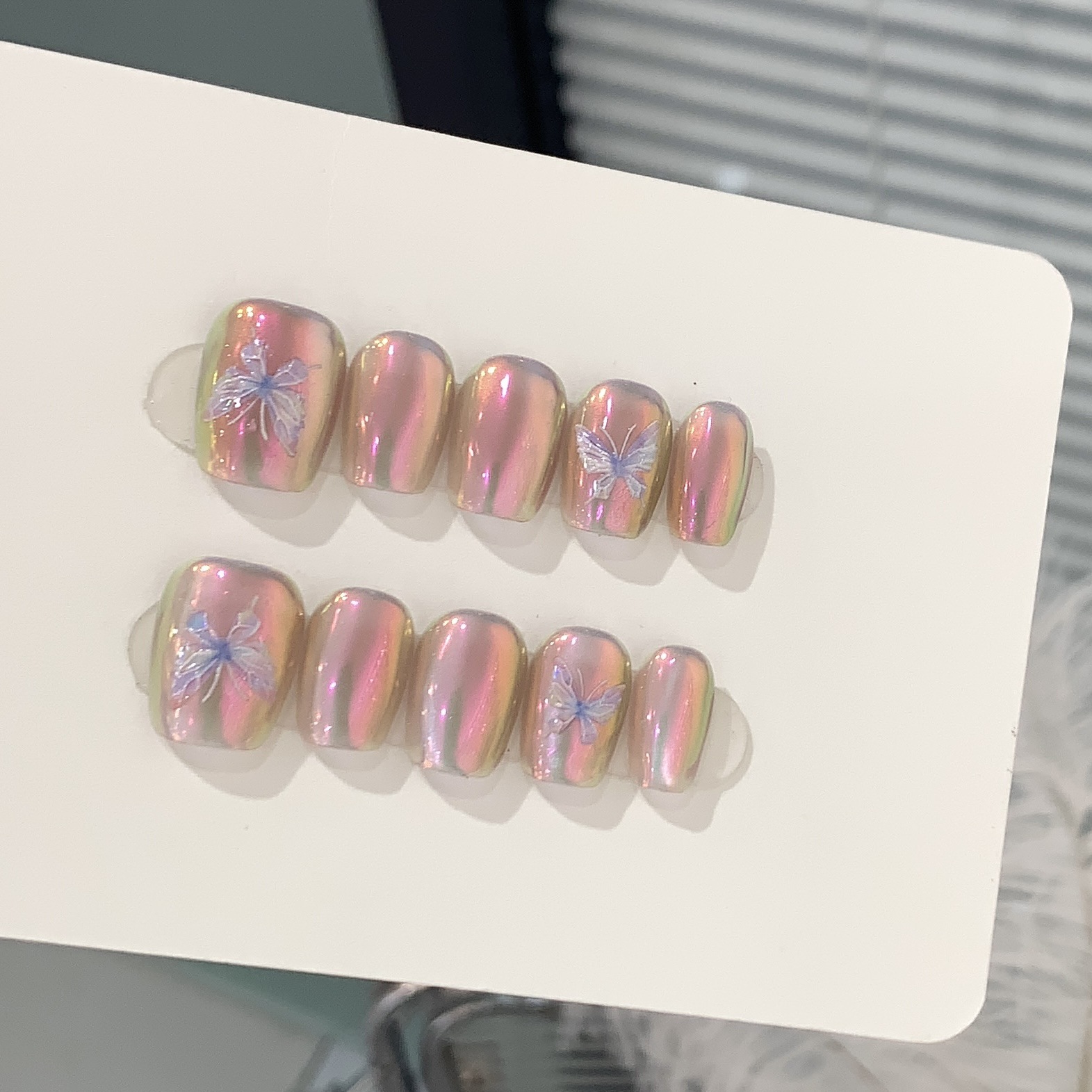 一只顾美甲厂 【Y】光疗极光魔镜日常多巴胺小短甲蝴蝶幻光贴片