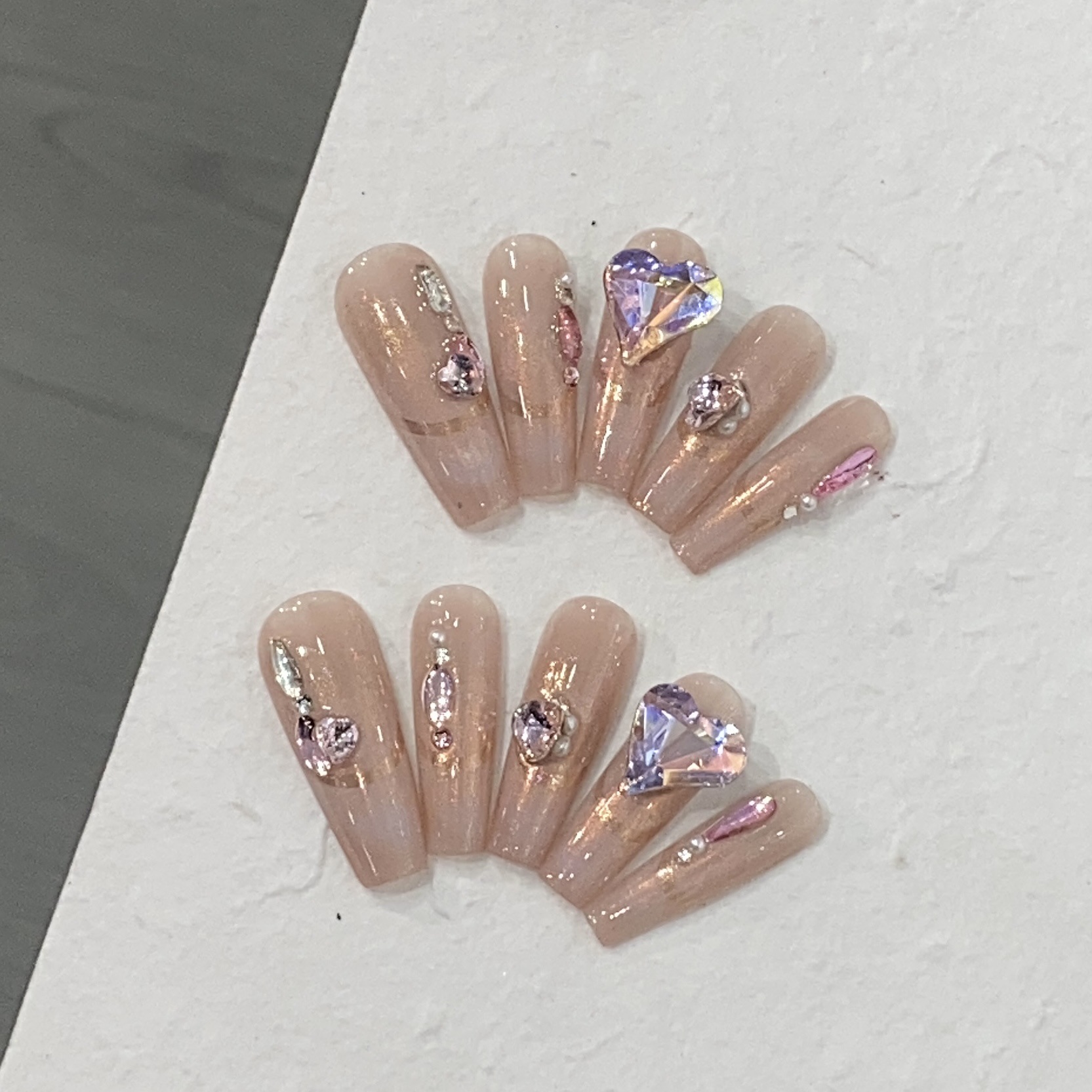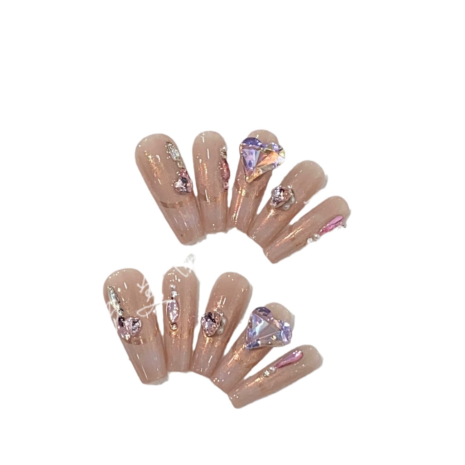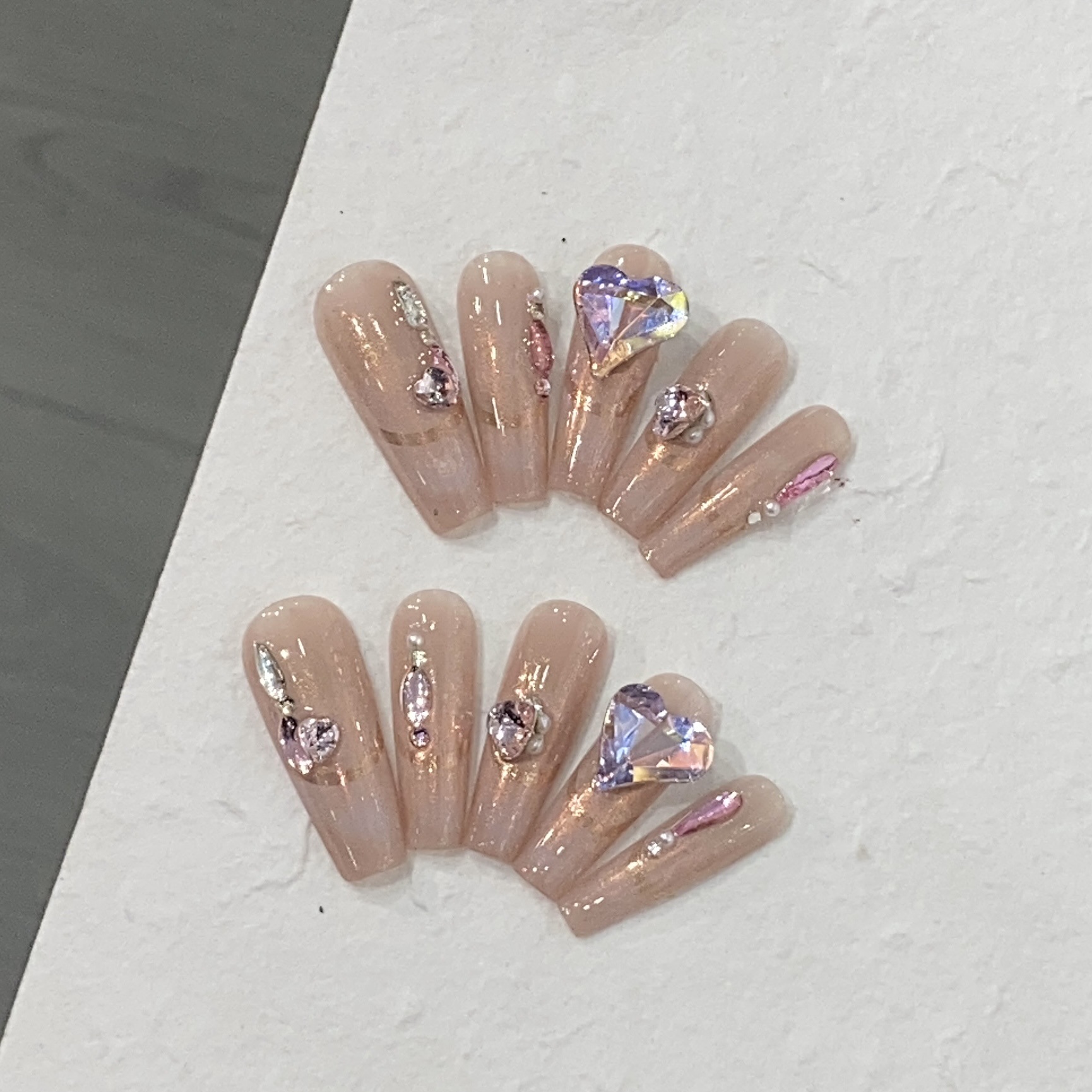 手工美甲穿戴甲指甲贴腮红爆闪钻钢珠美甲小红书爆款冰透纯欲辣妹