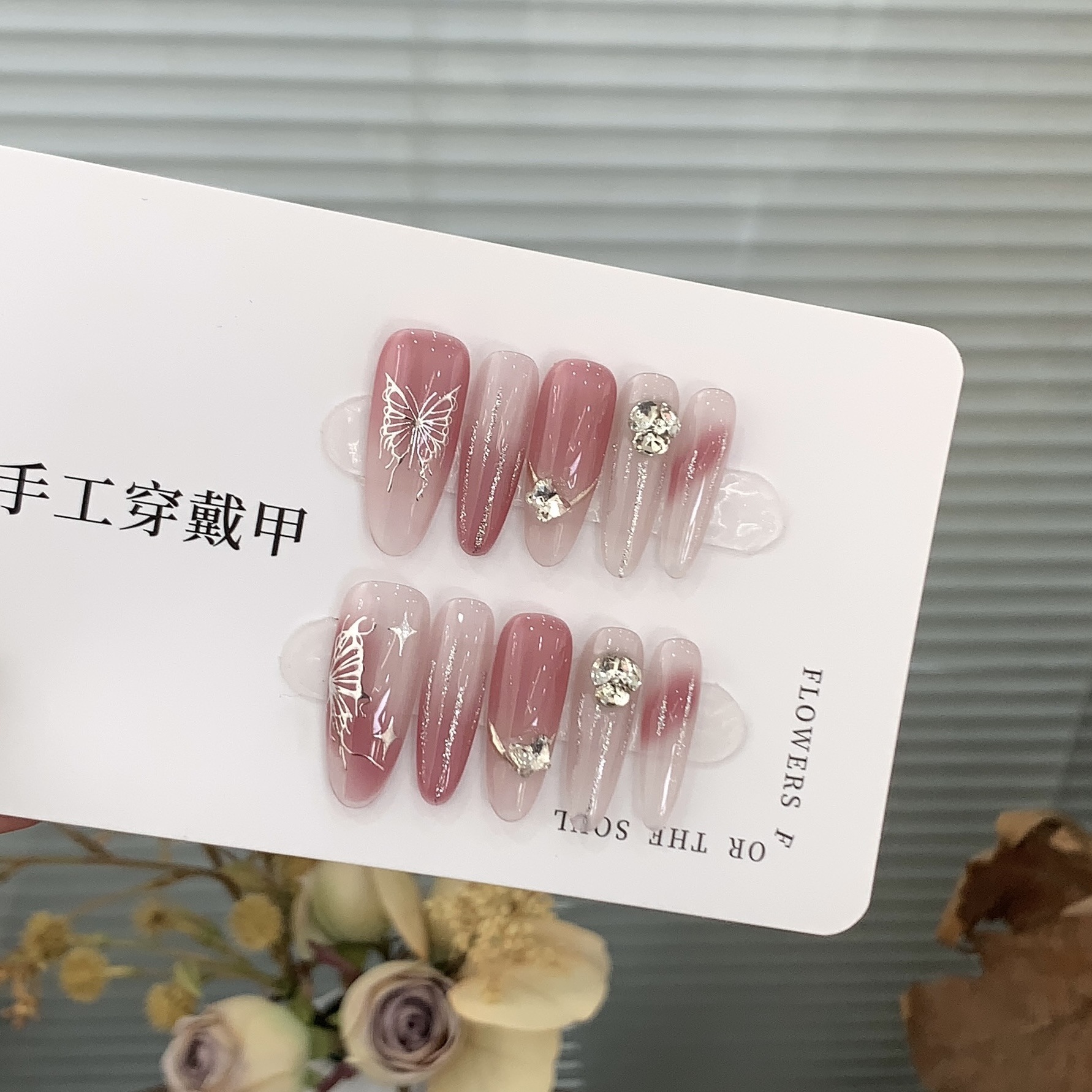 一只顾美甲厂 【Y】 纯手工冰透渐变高级感液态蝴蝶酒渍梅子贴