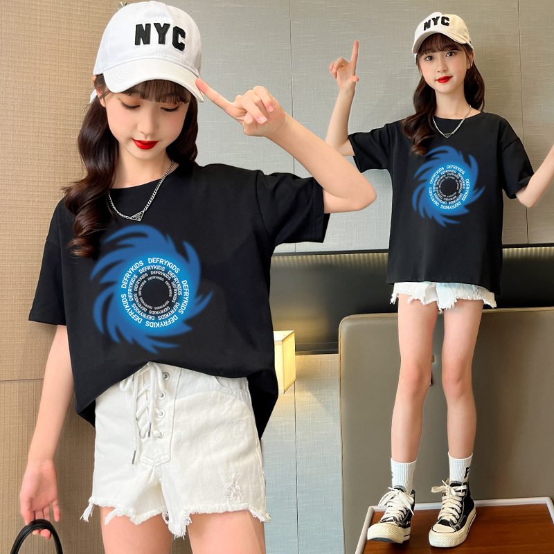 夏装女童纯棉t恤短袖洋气卡通印花半袖t上衣夏季运动女孩中大童装