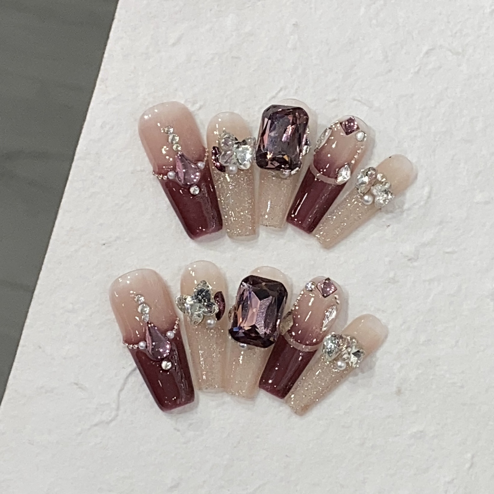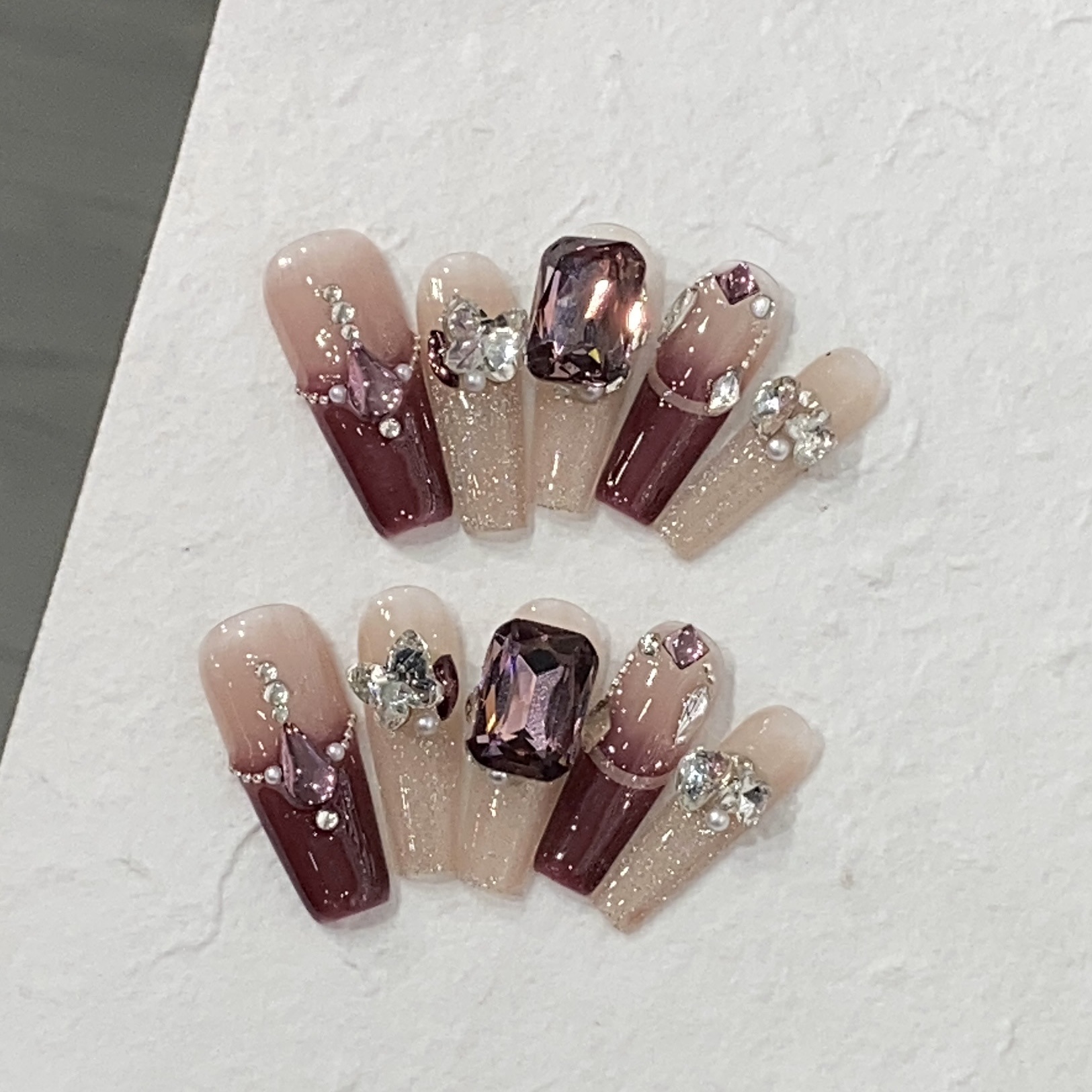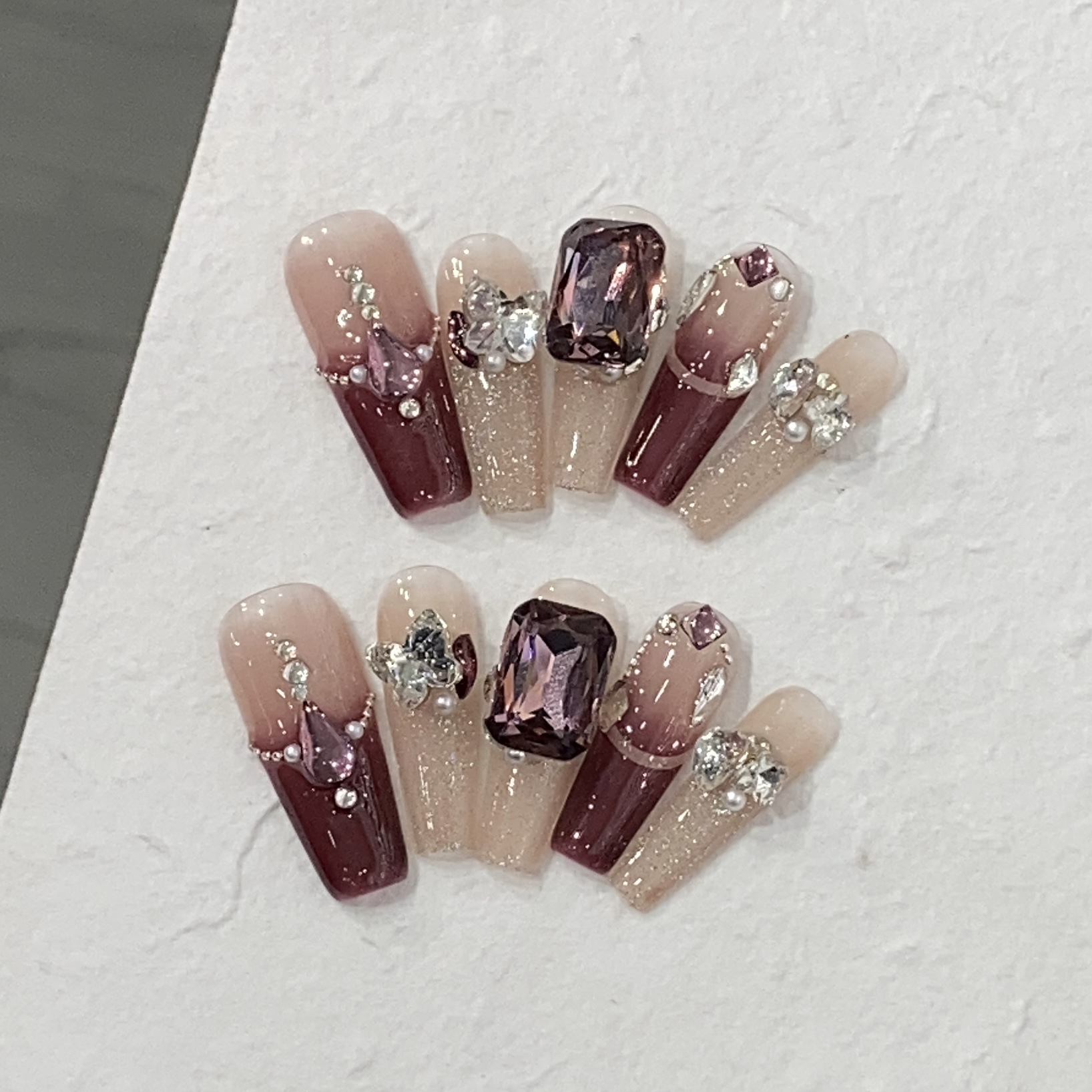 一只顾美甲厂【Y】【原创实拍】氛围渐变晕染法式精品K9钻沉睡玫