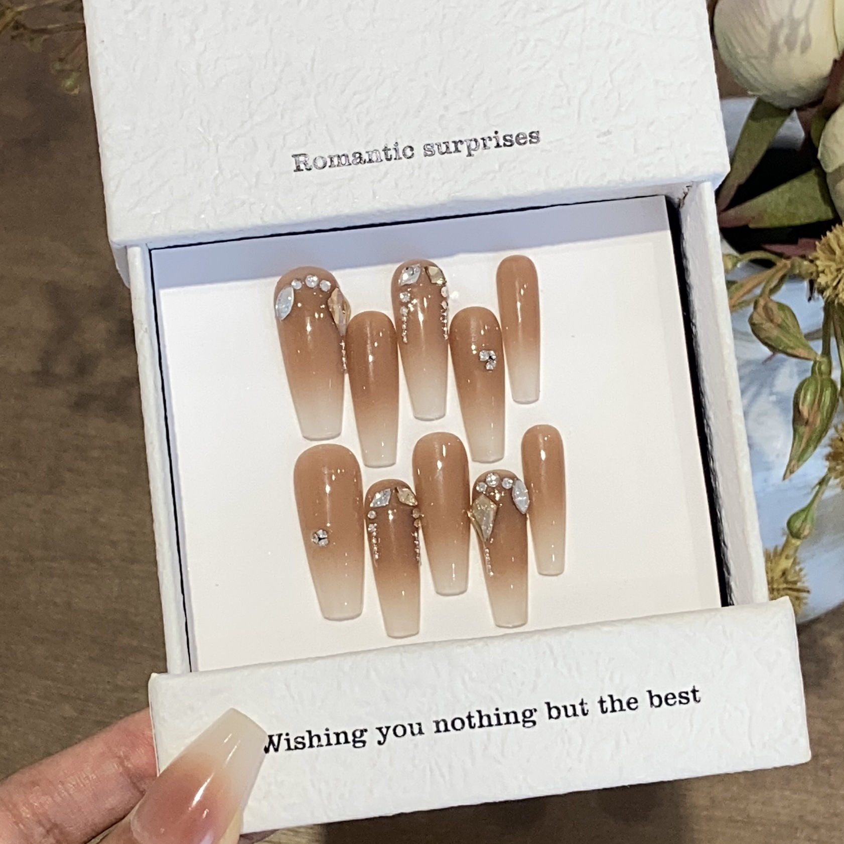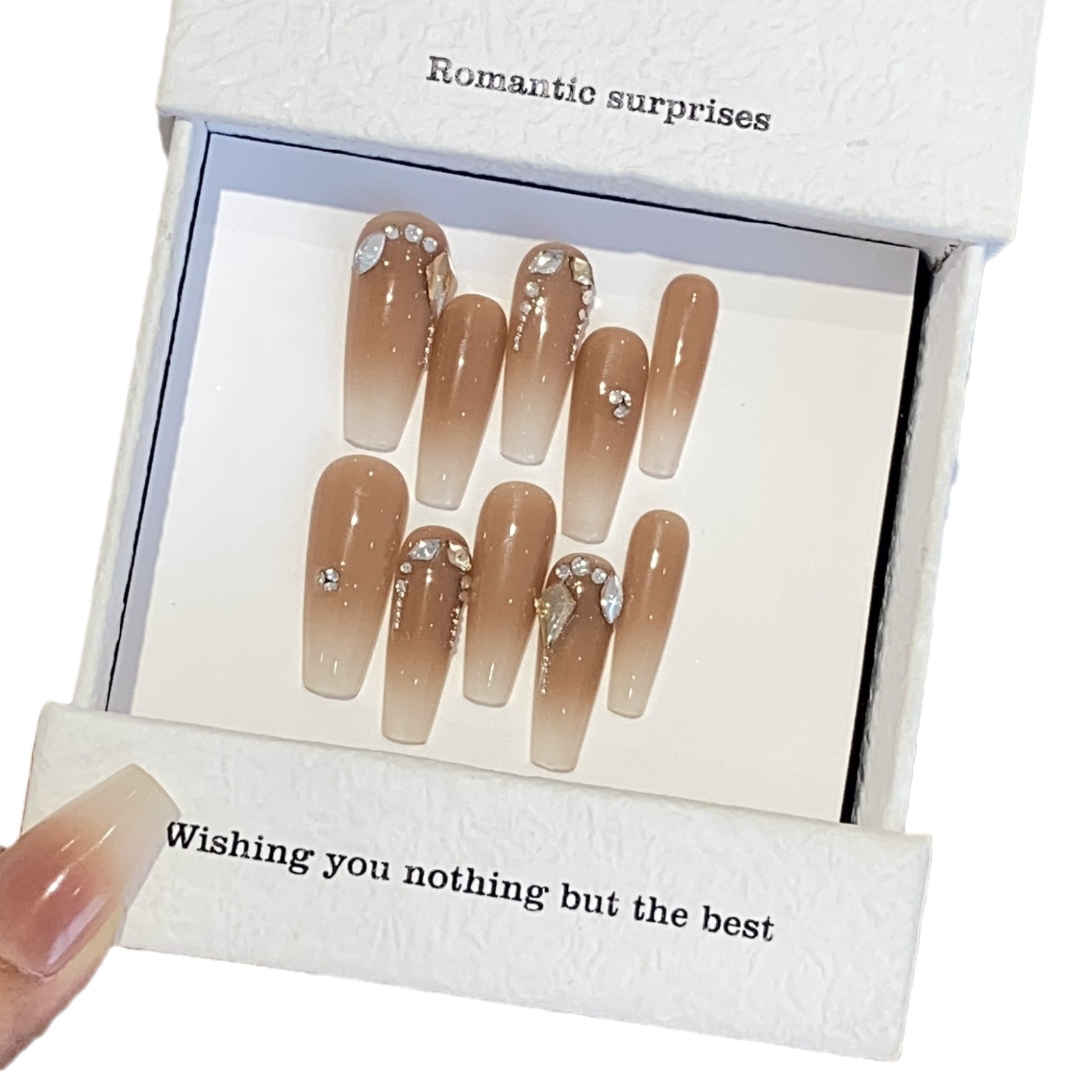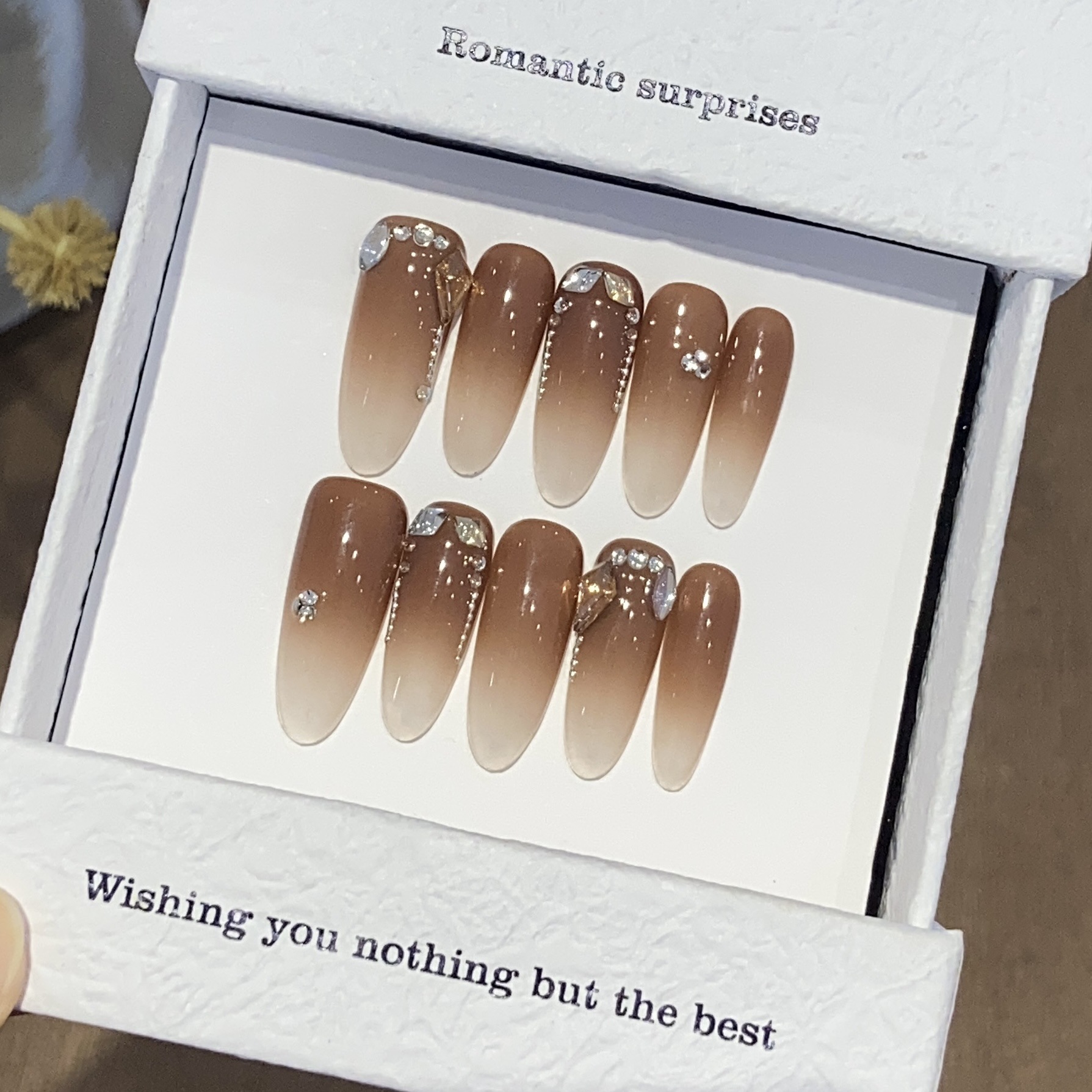 一只顾美甲 【Y】简约美拉德香槟底色银碎小碎钻燕麦奶咖可拆卸