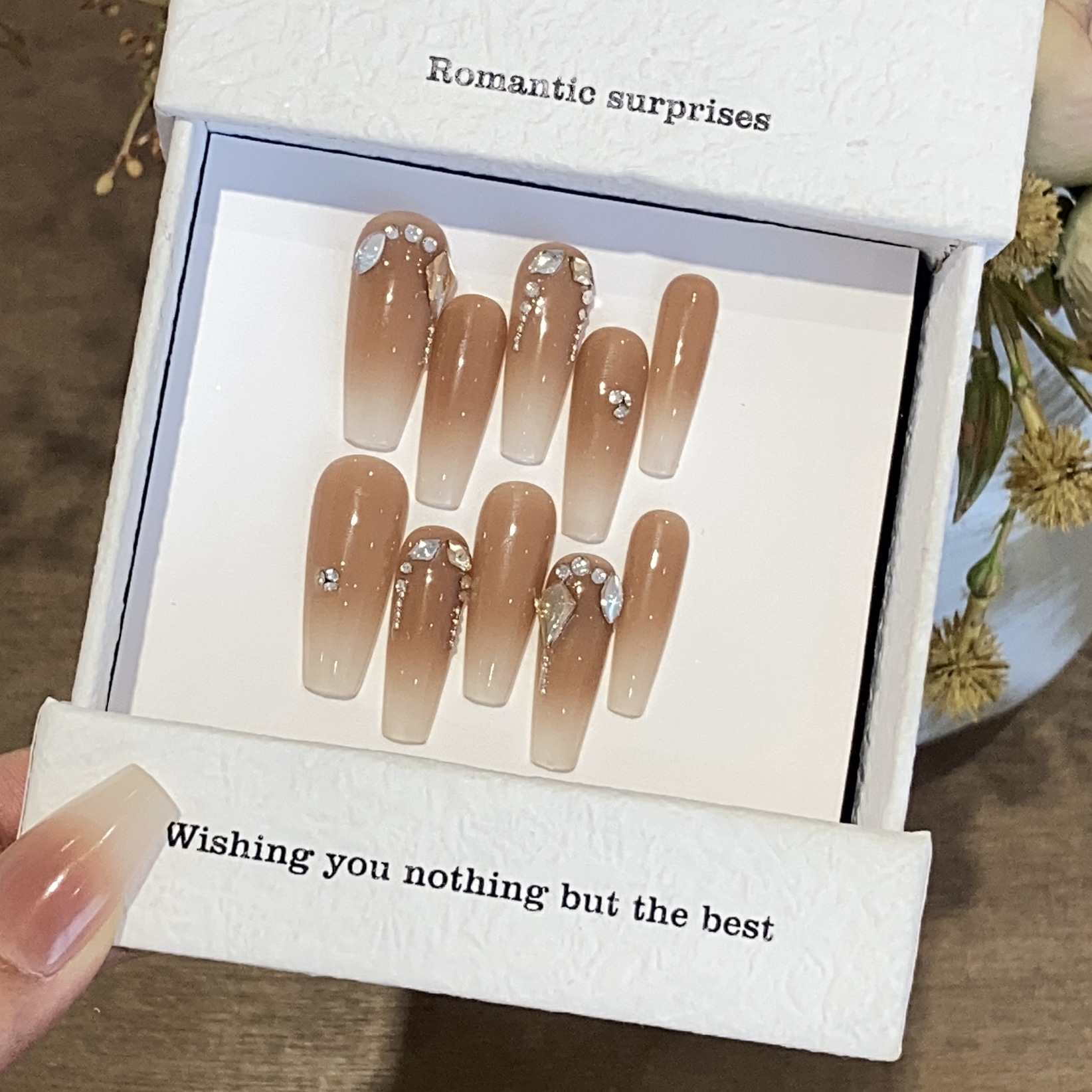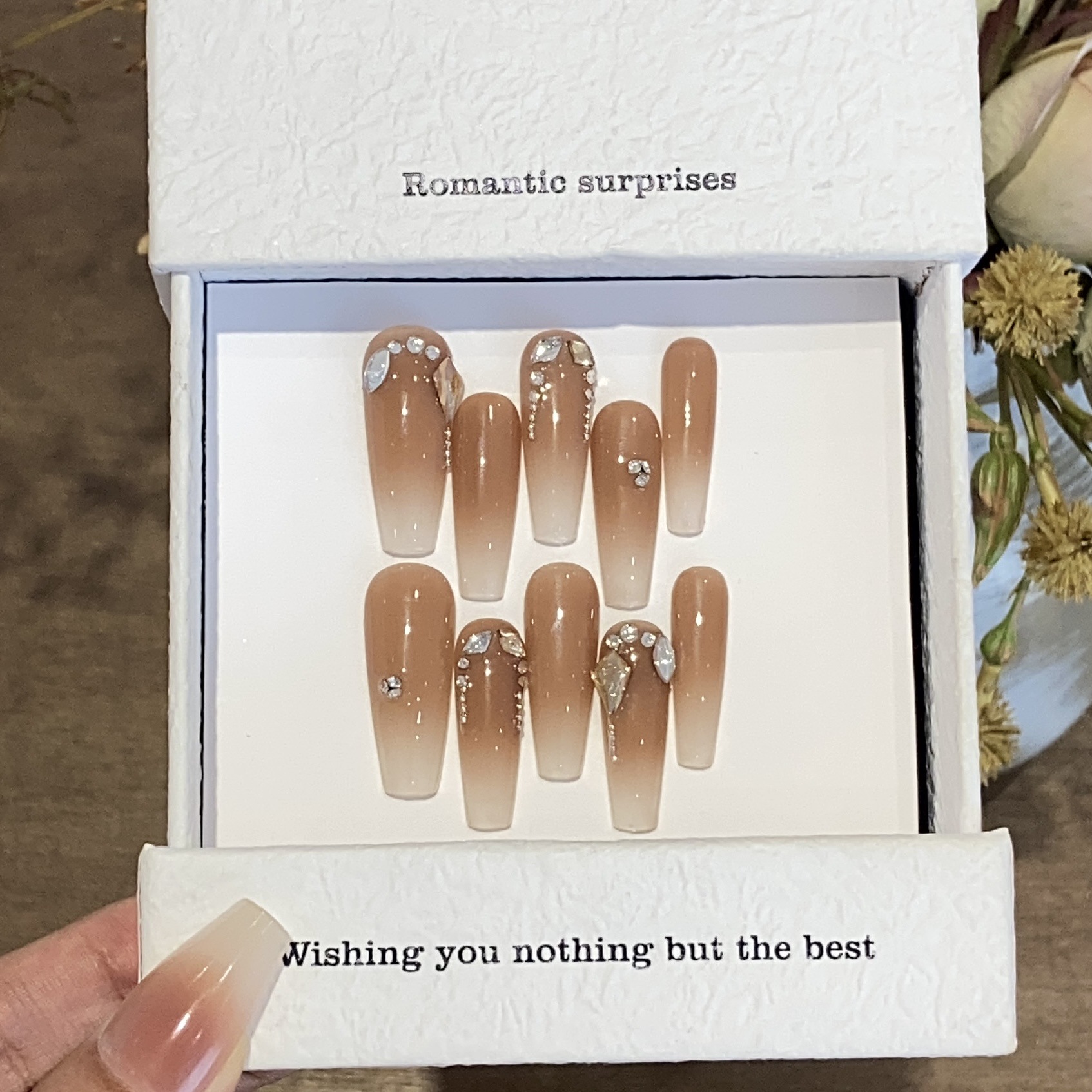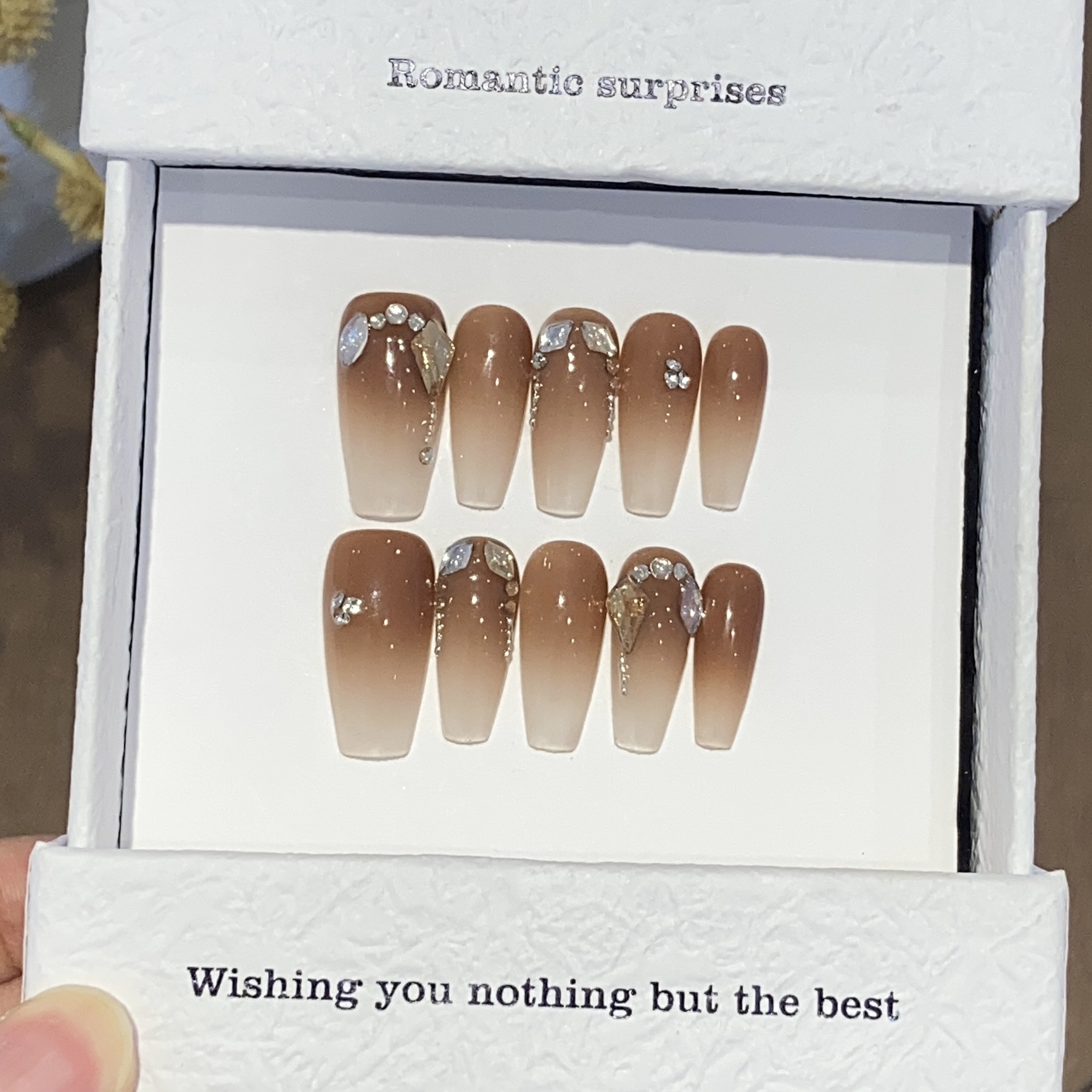 一只顾美甲 【Y】简约美拉德香槟底色银碎小碎钻燕麦奶咖可拆卸