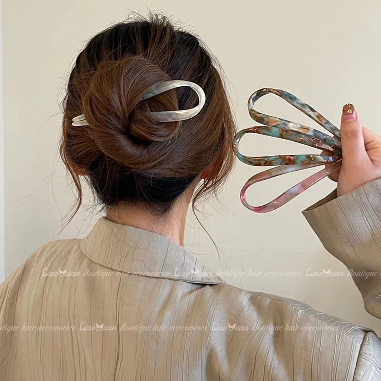 新款简约醋酸u型发簪女高级感可爱丸子头神器发钗簪子