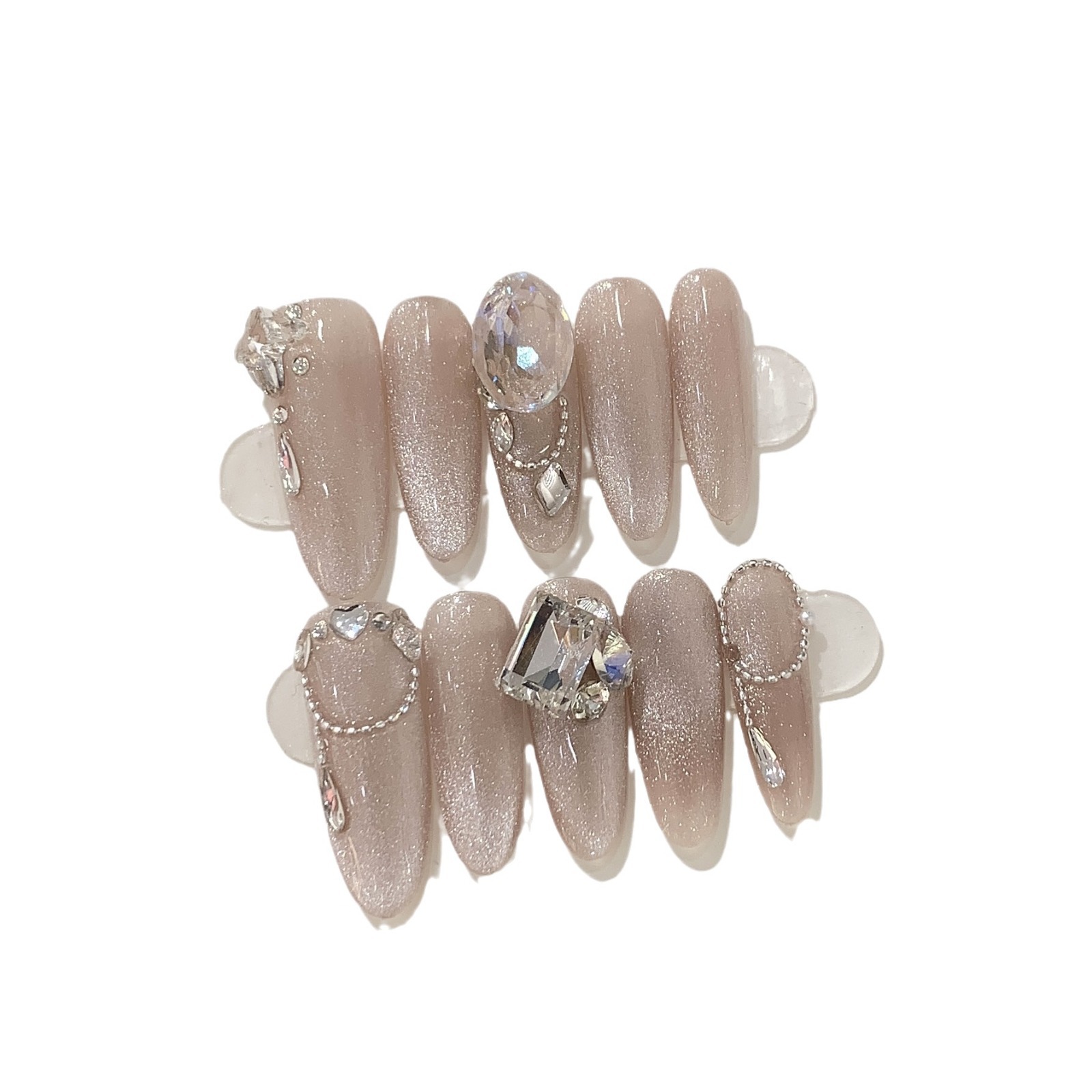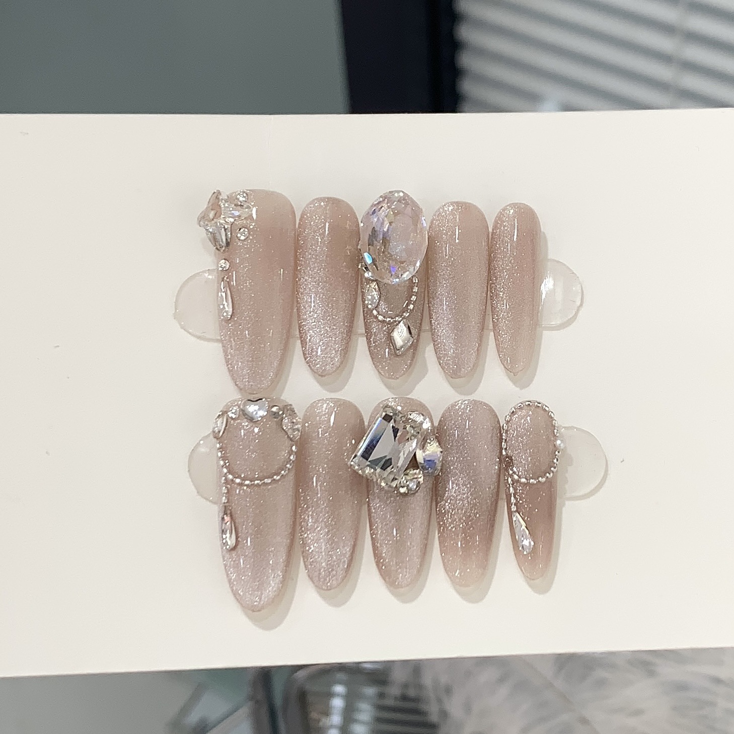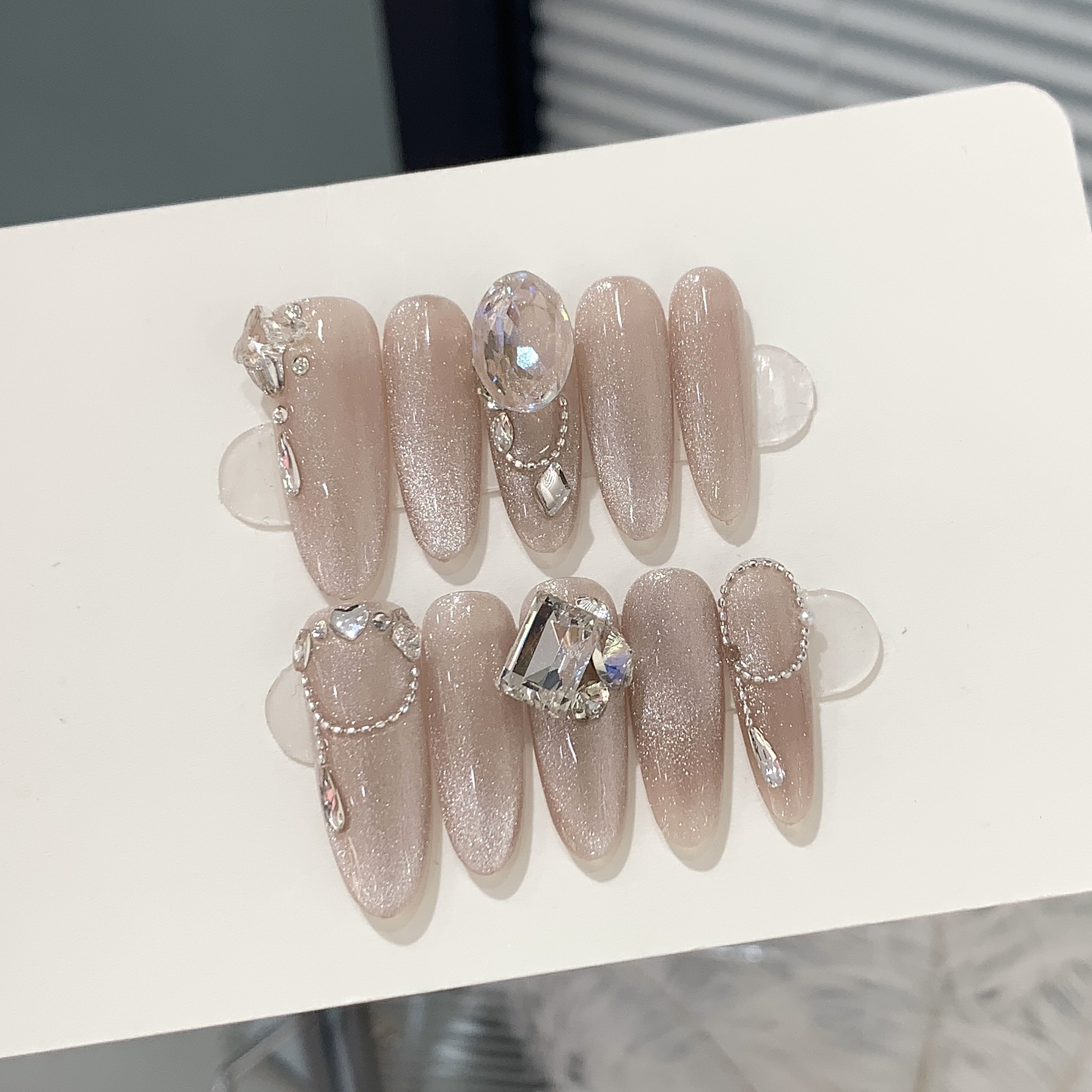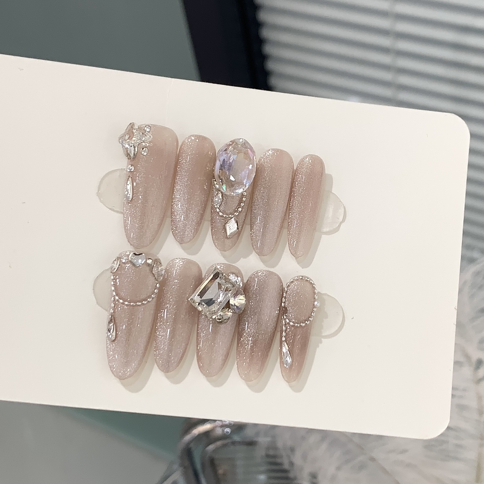 一只顾美甲厂 【Y】手作穿戴甲高级感猫眼渐变珍珠奶贝贴片指甲贴