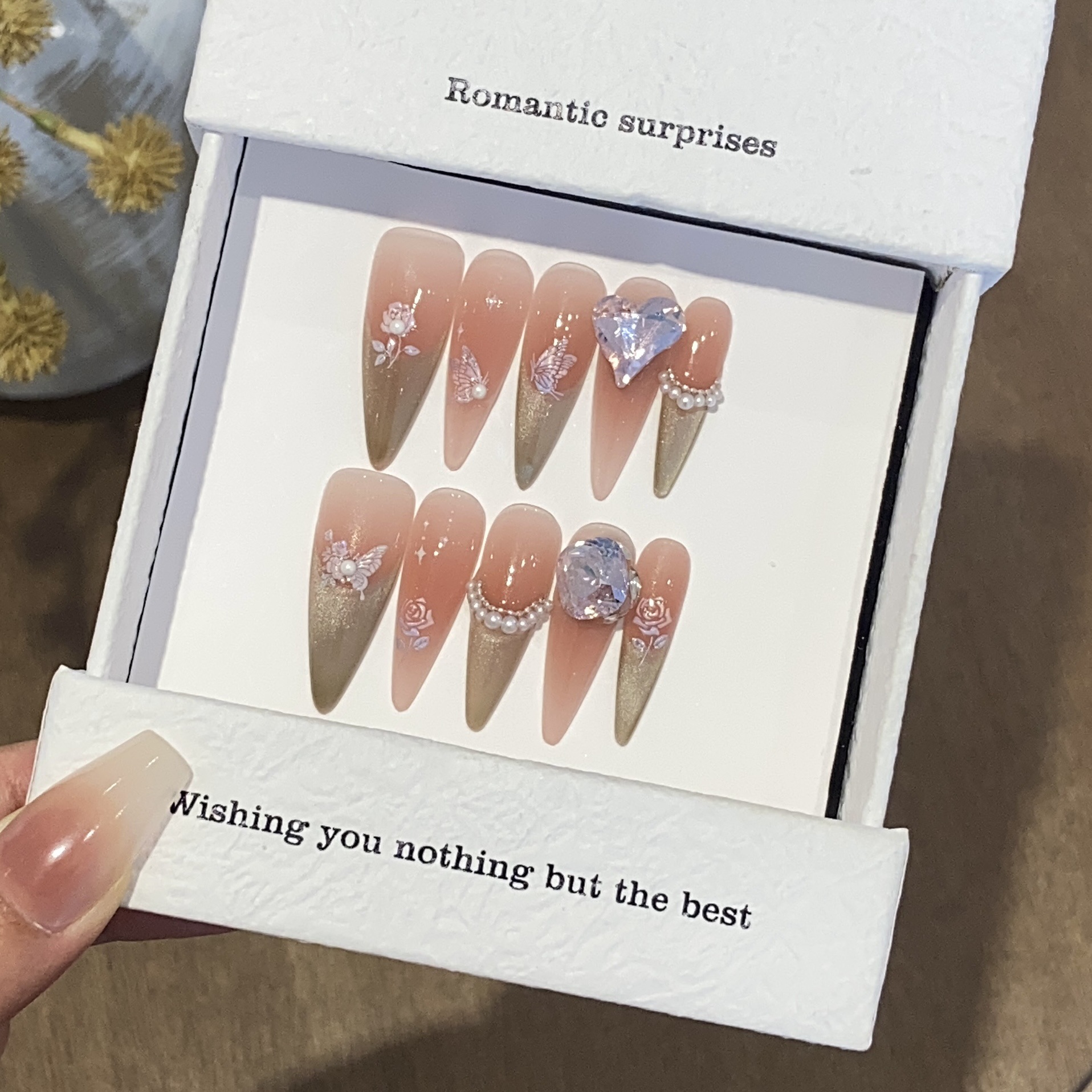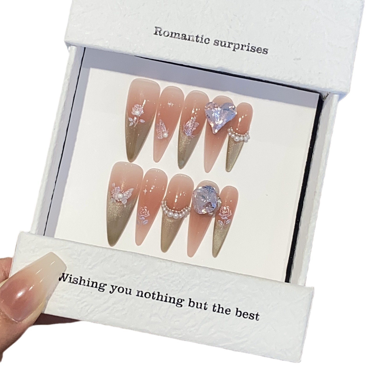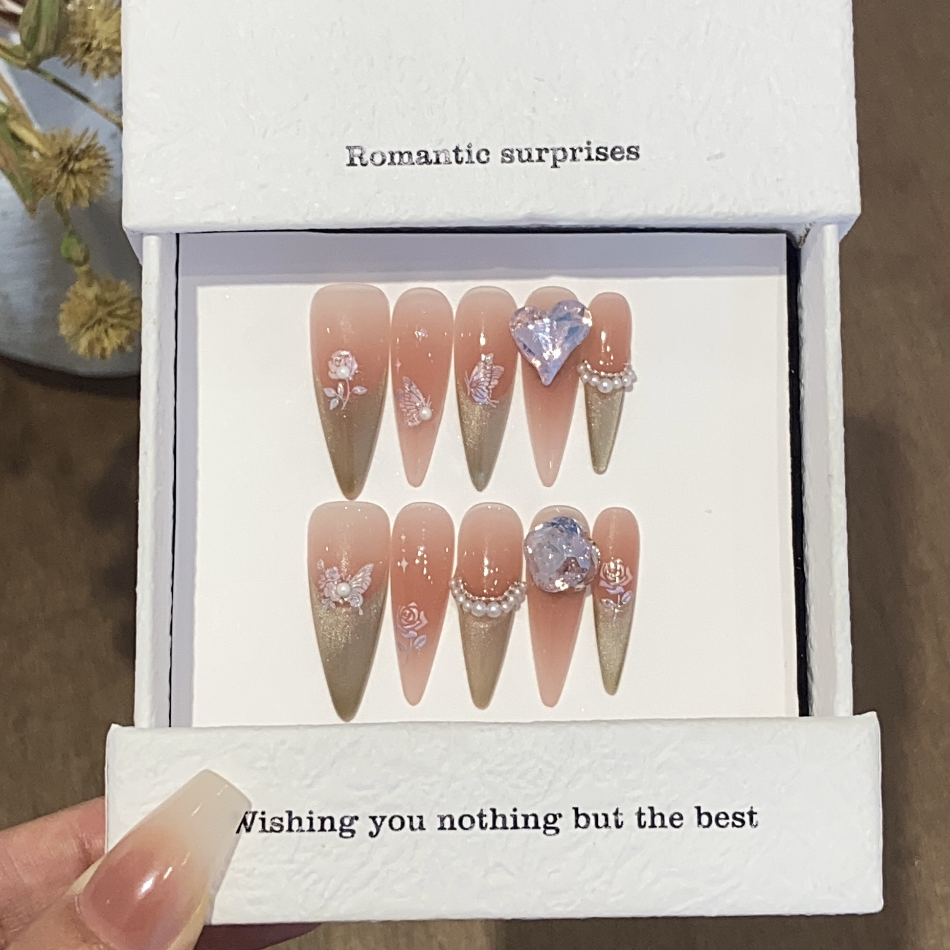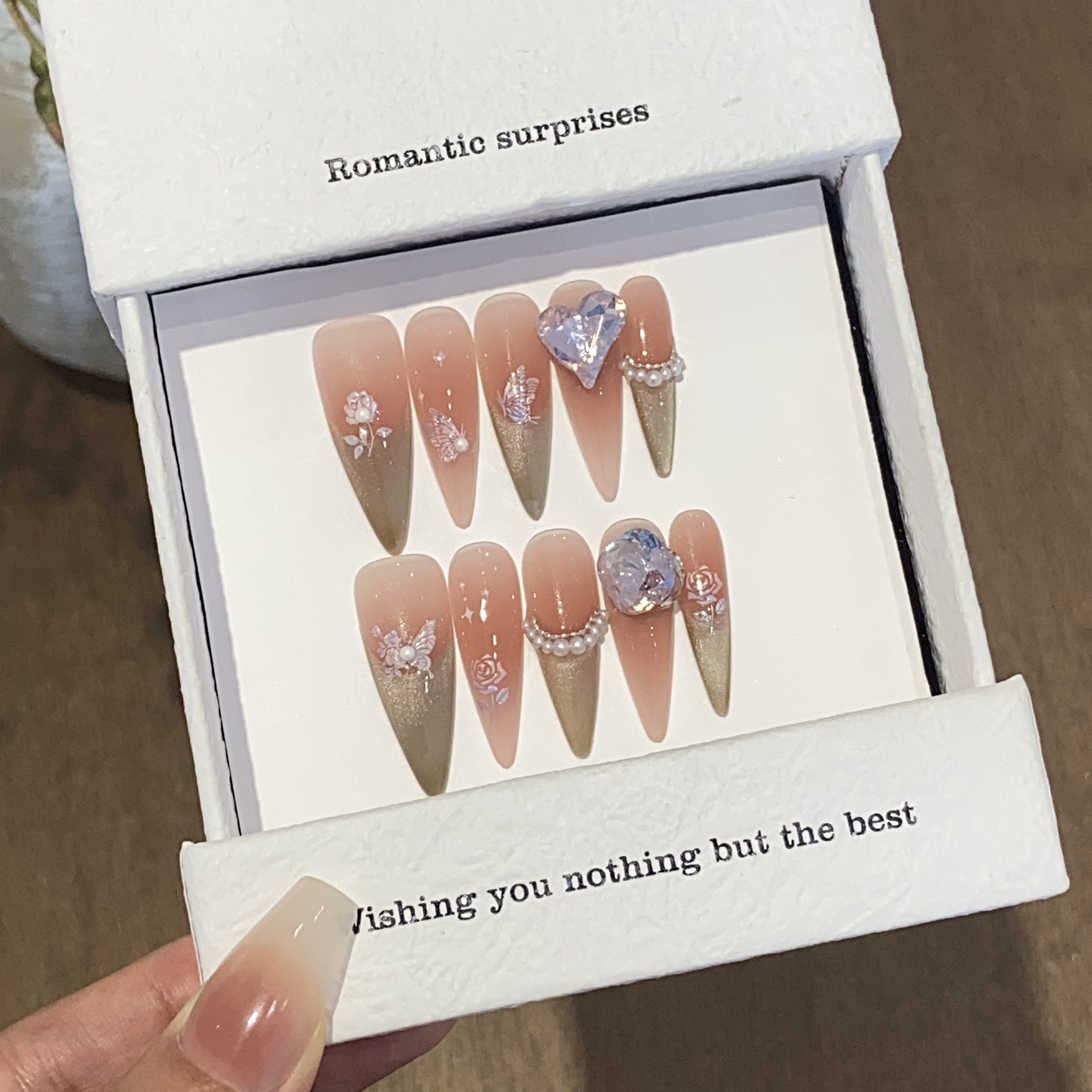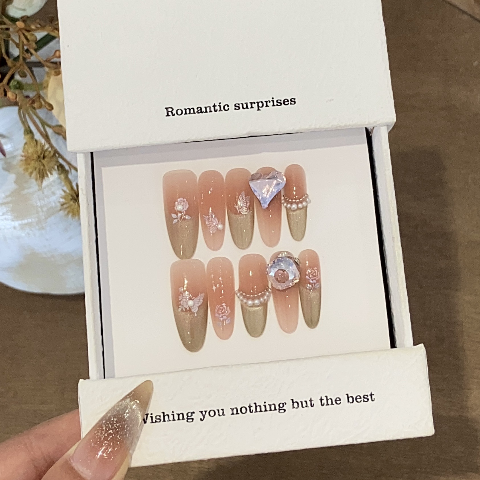 一只顾美甲 【Y】 渐变法式猫眼立体浮雕珍珠玫瑰蝴蝶白莲花贴片