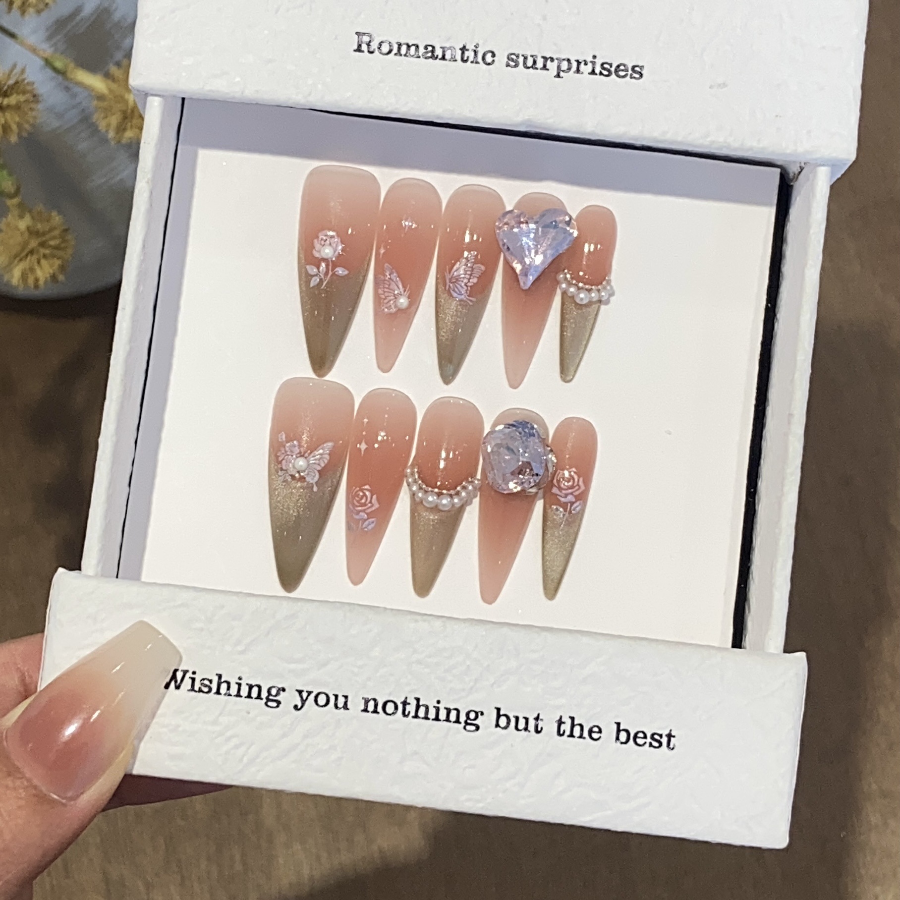 纯手工穿戴甲猫眼AB款韩系高级感ins新款贴片短款可拆卸月光森林