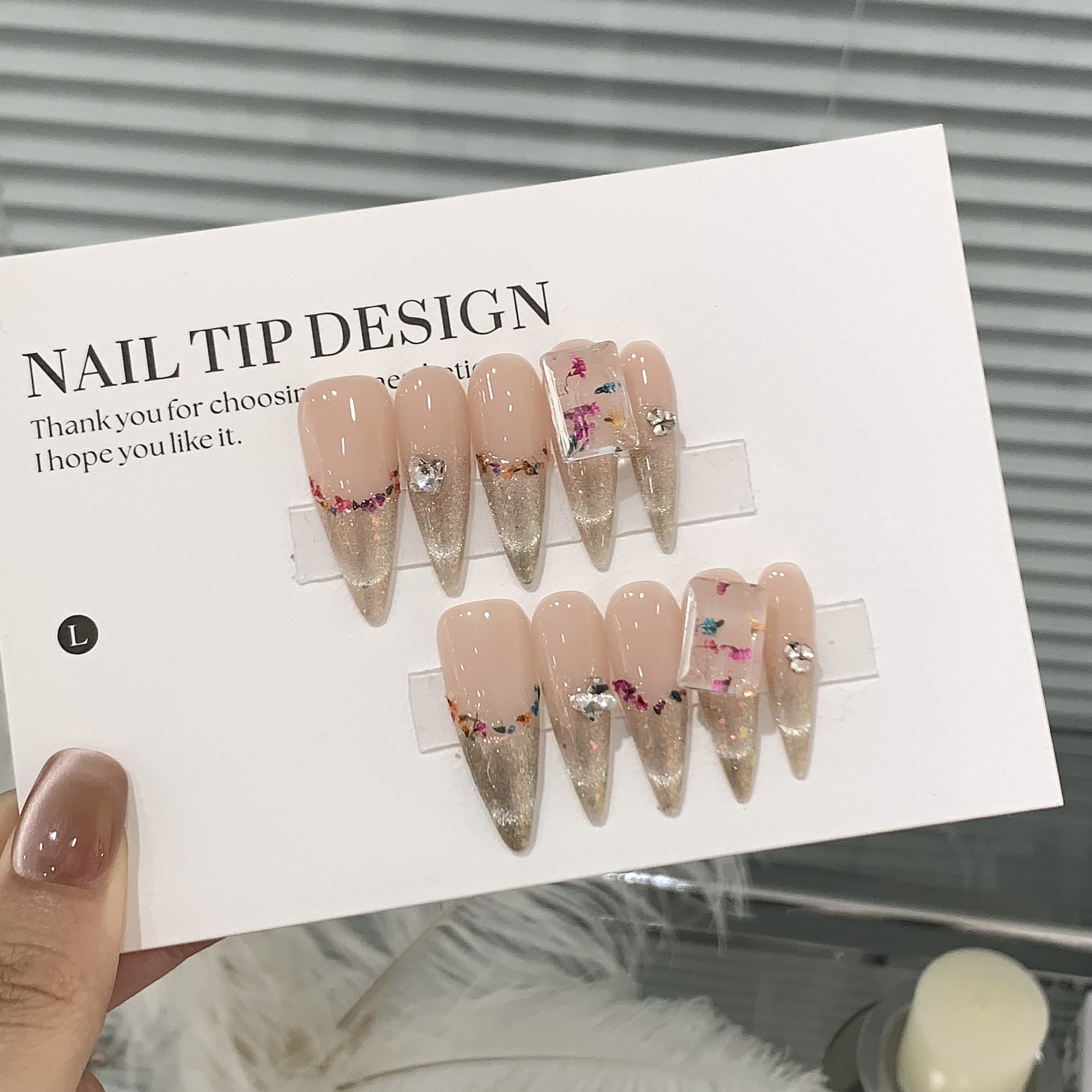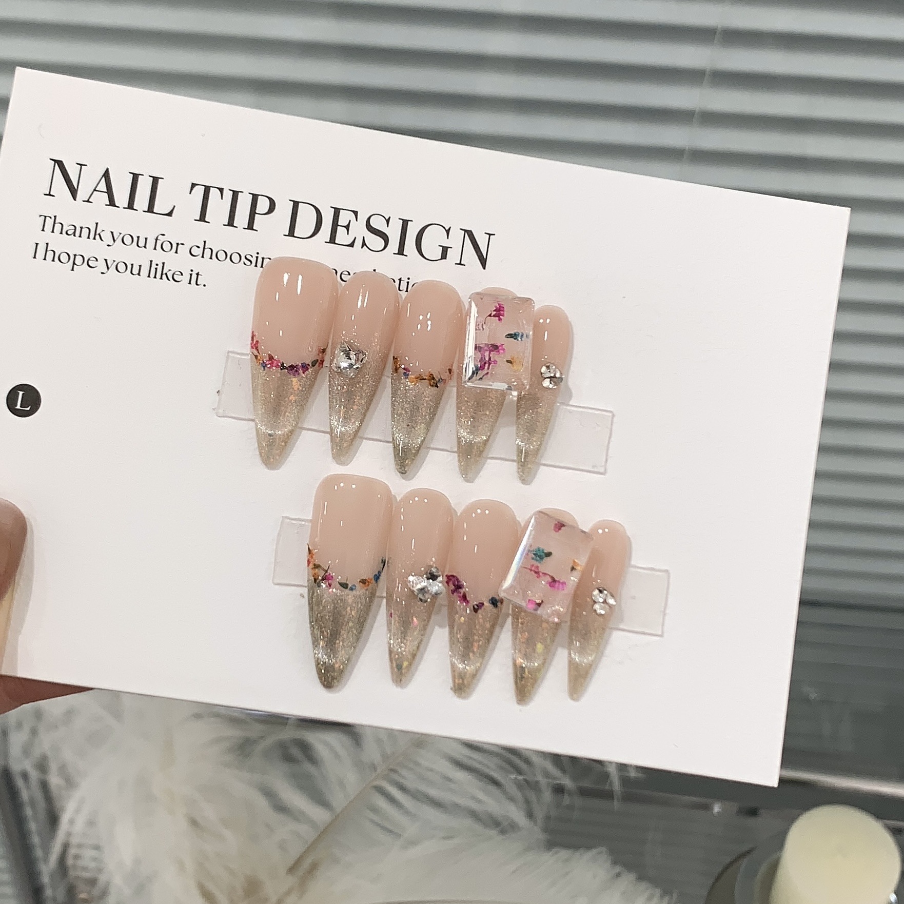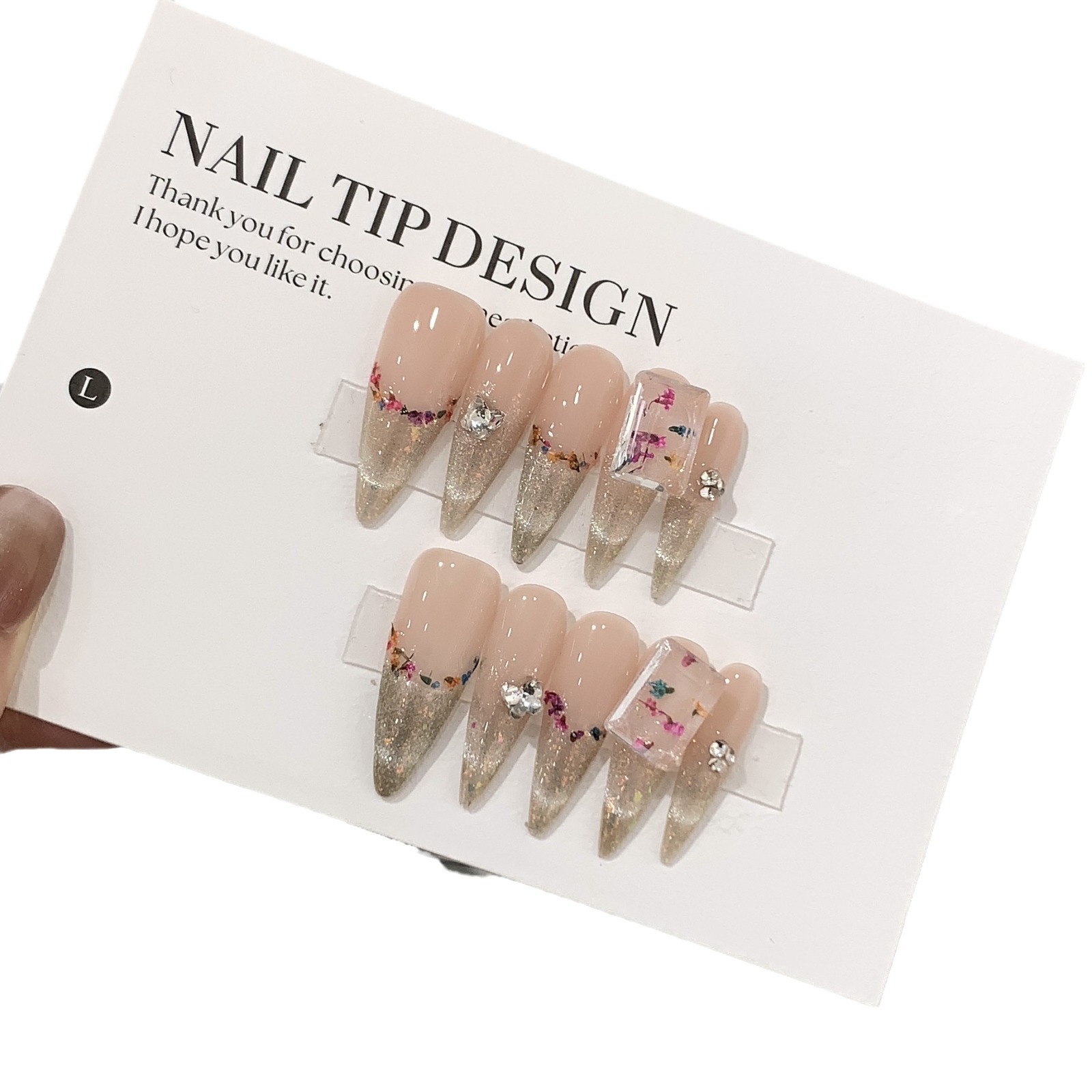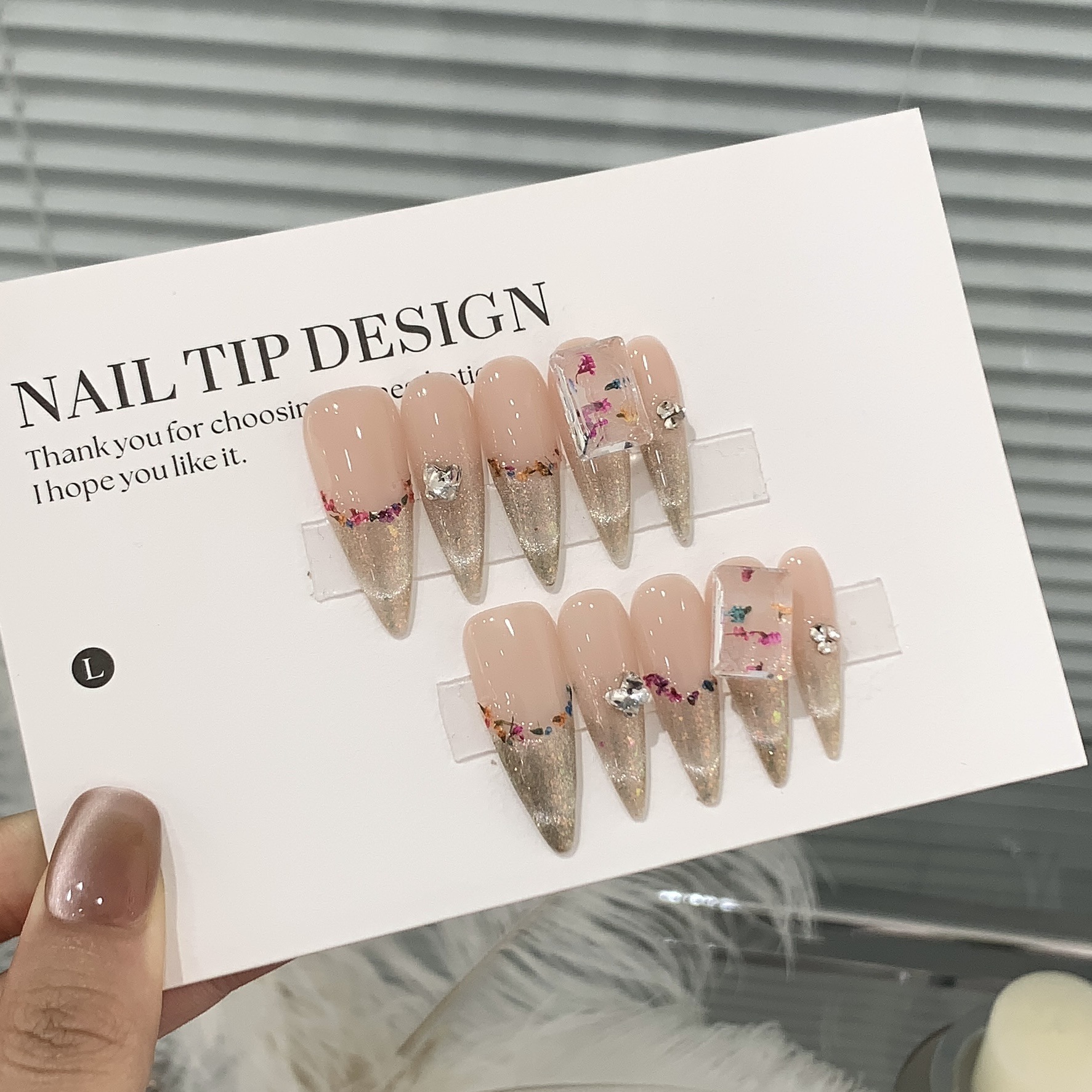 一只顾美甲 【Y】永生干花渐变法式猫眼K9透底方钻银河枯叶贴片
