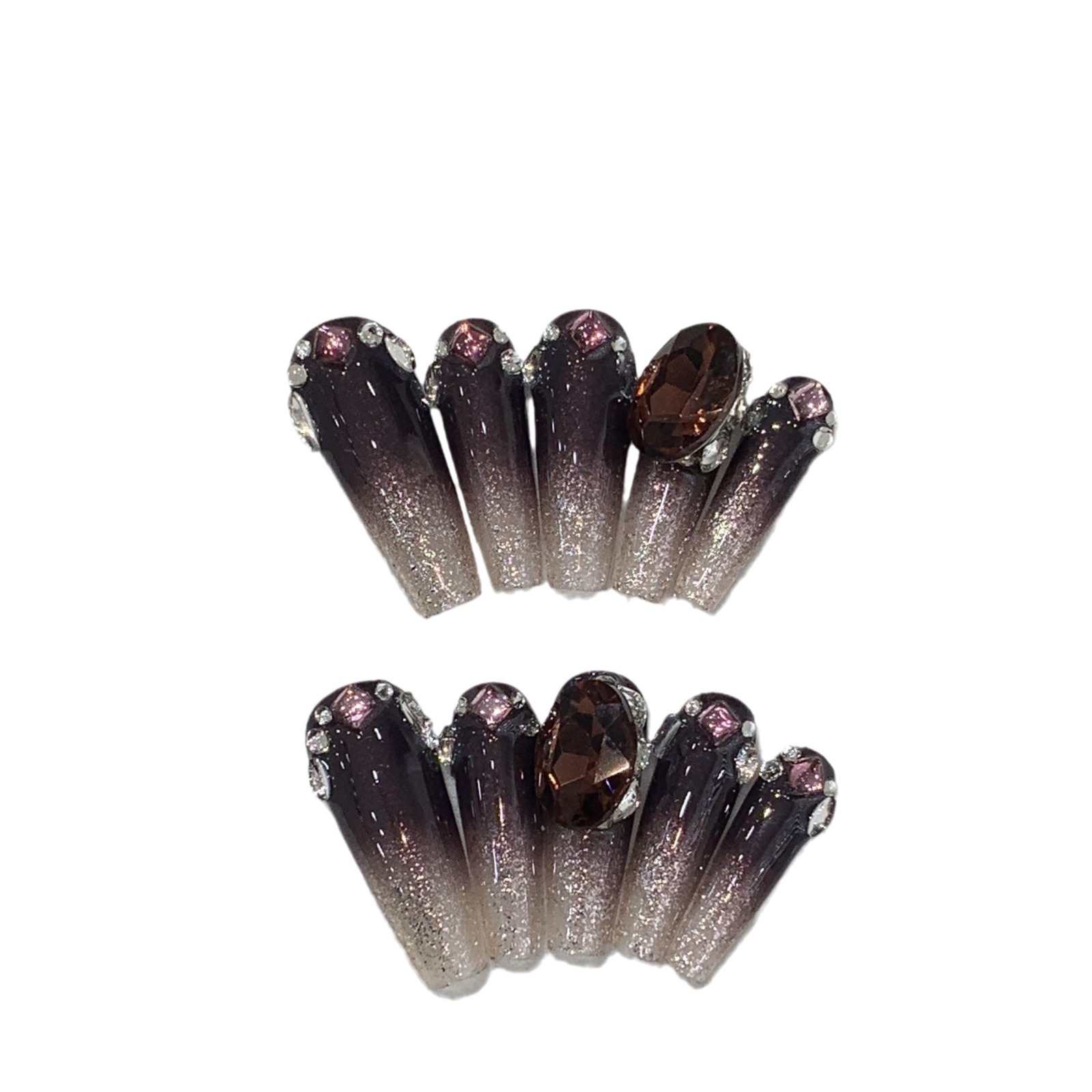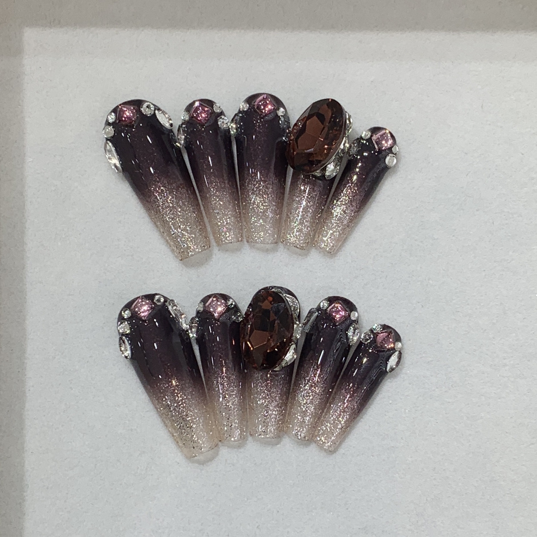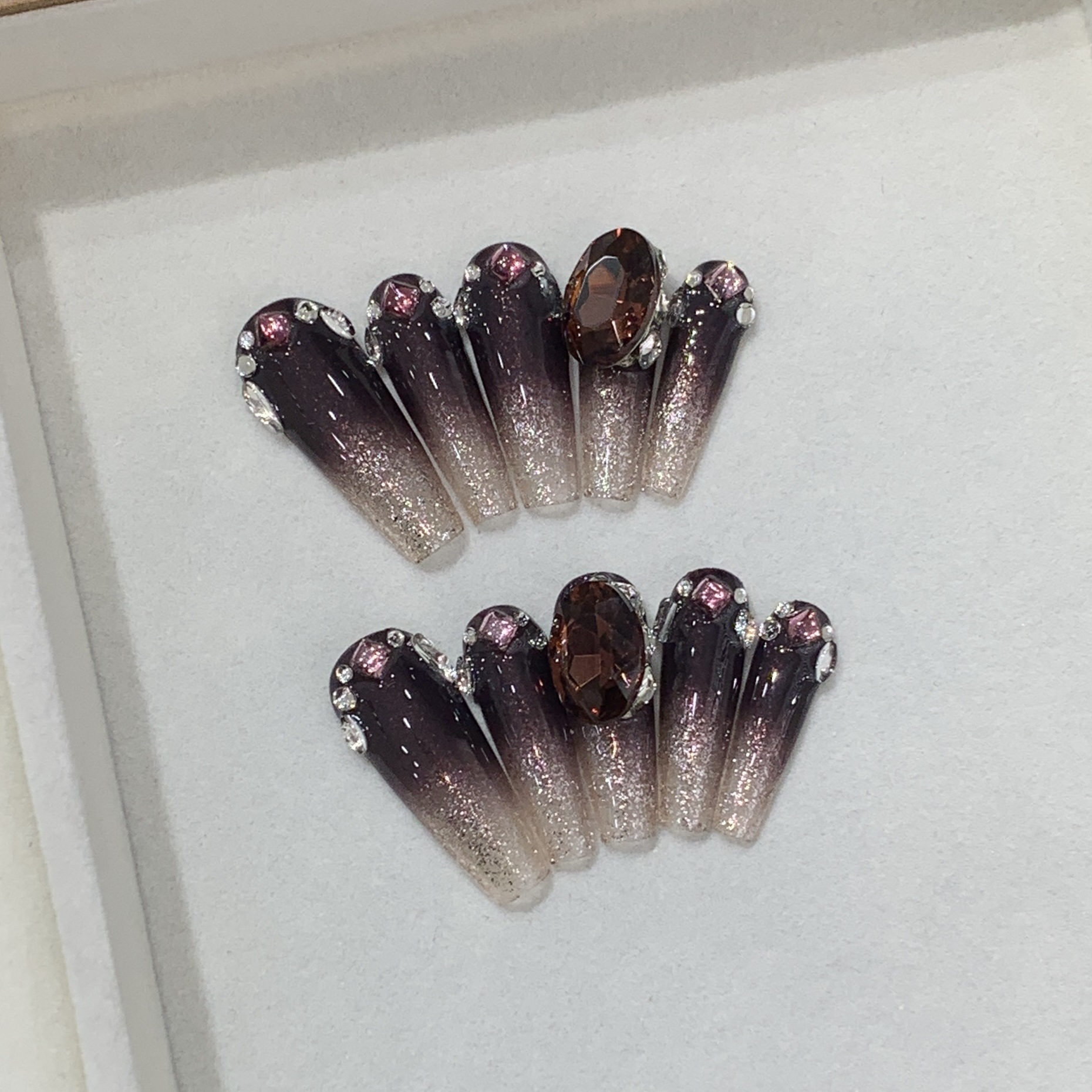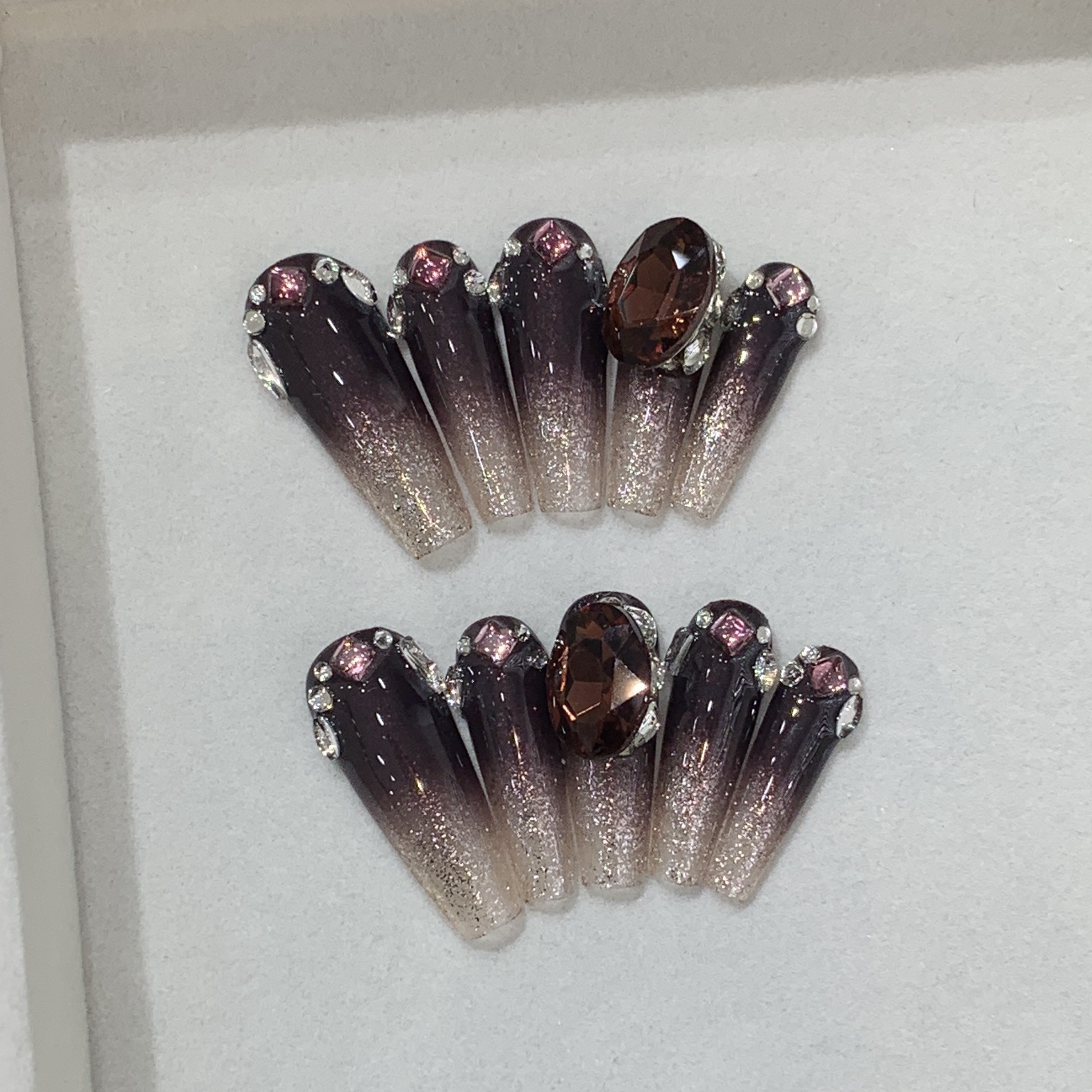 一只顾美甲厂【Y】原创实拍秋冬氛围感 渐变指根钻 雾都恋人指甲