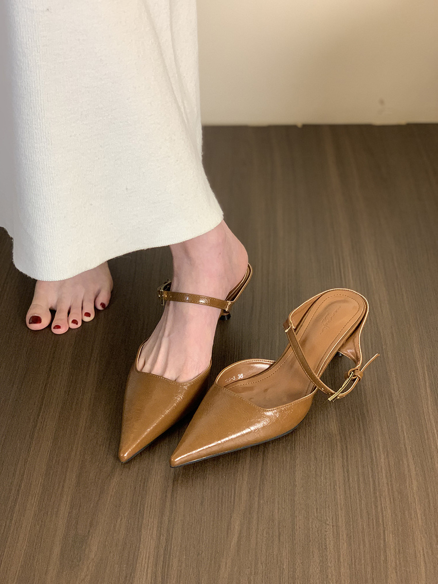法式黑色中高跟鞋包头半拖鞋女鞋子外穿2025新款气质名媛半托单鞋