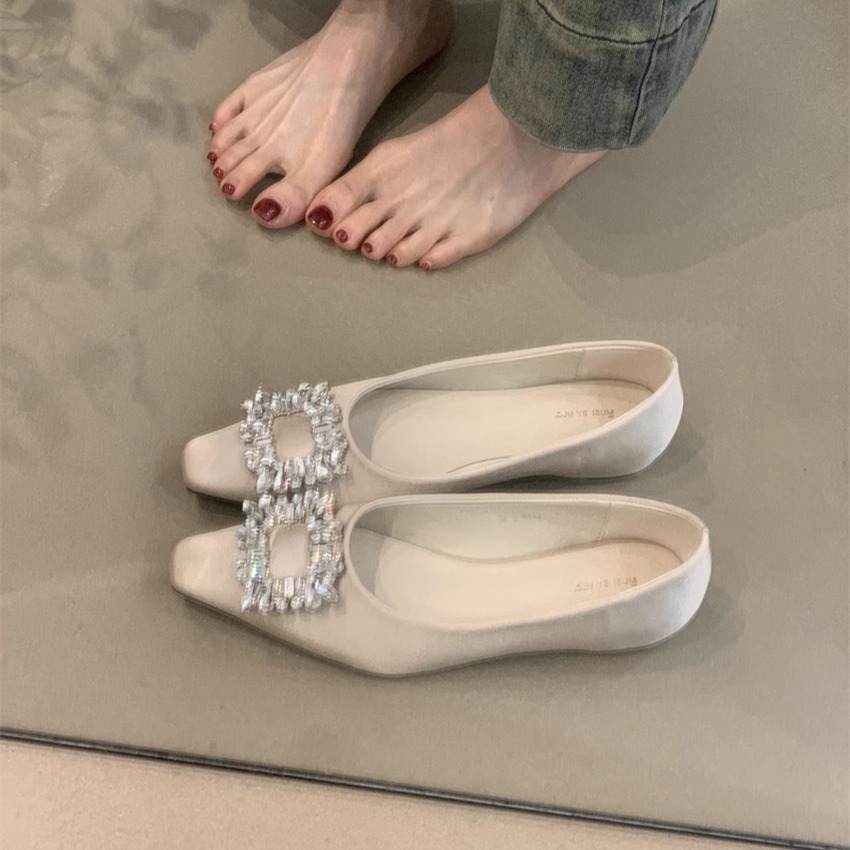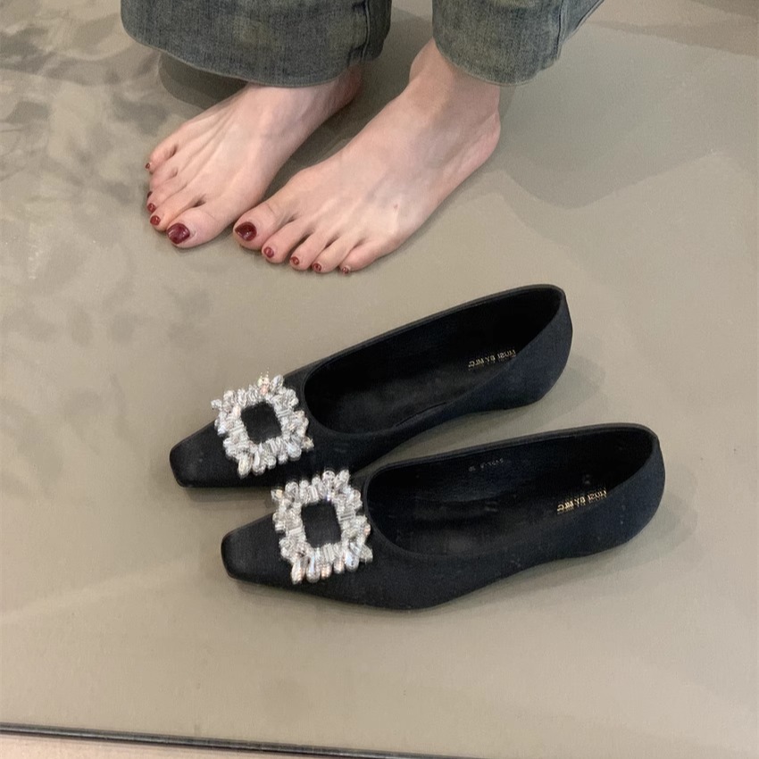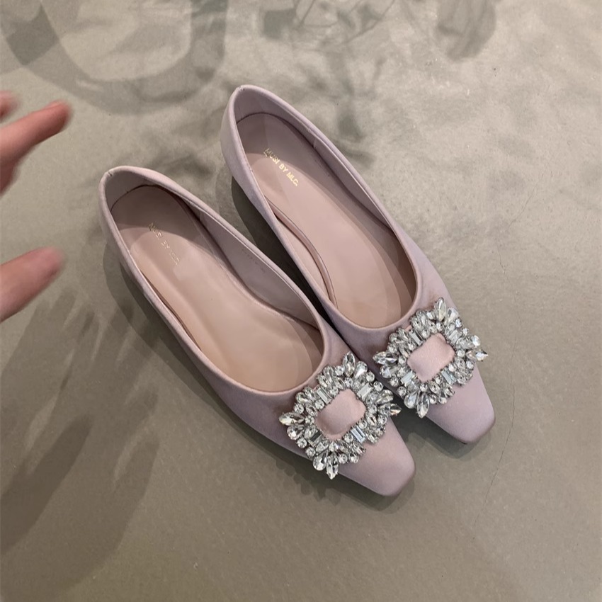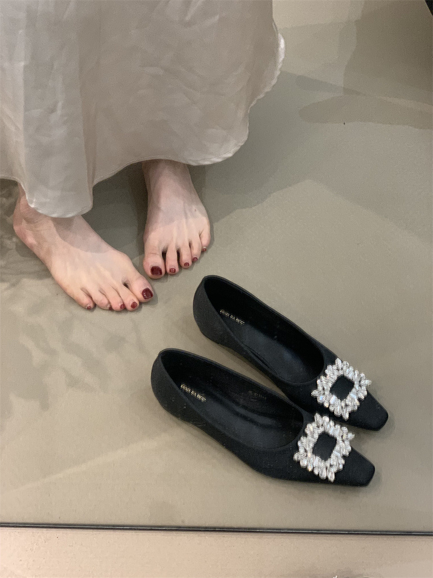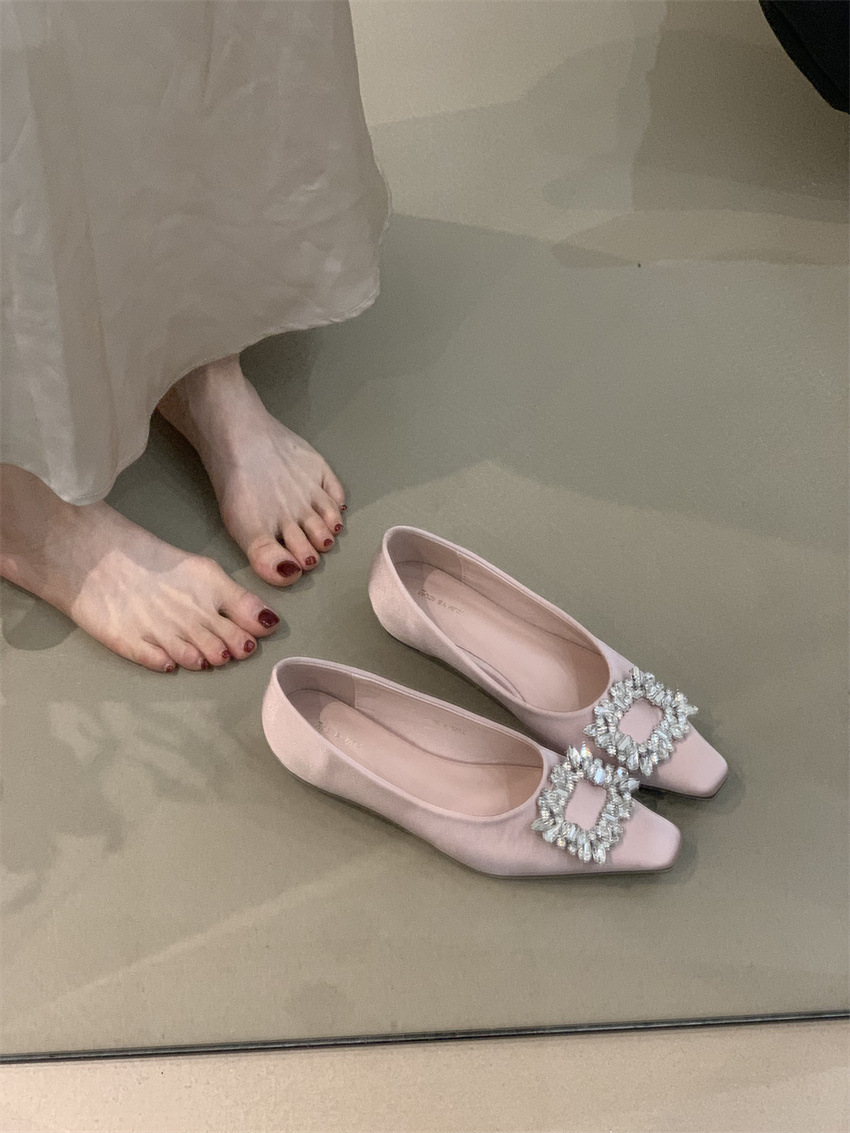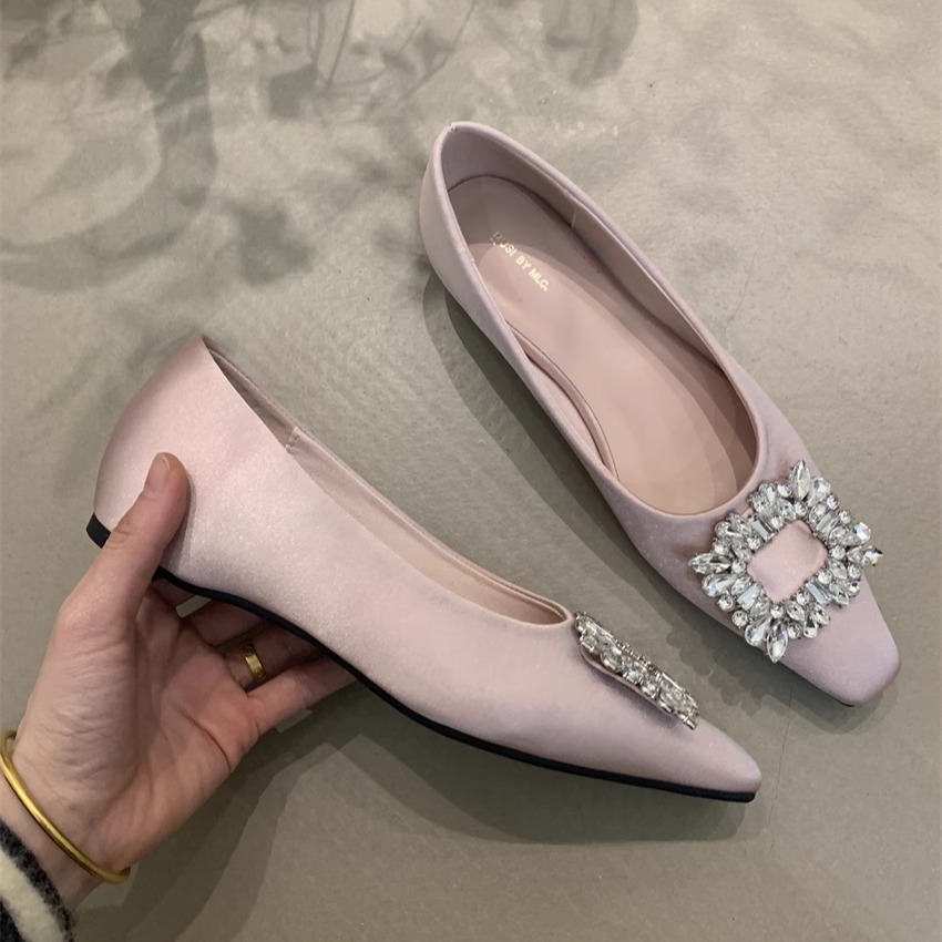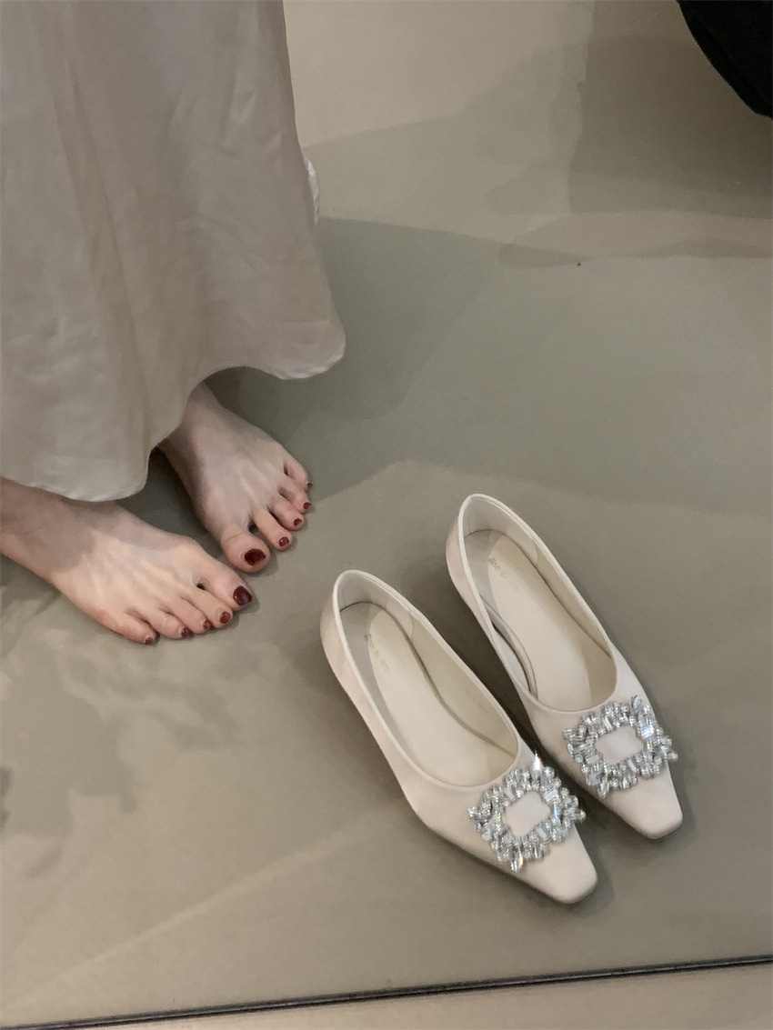 法式气质水钻单鞋女2025年仙女风绸面配裙子方头浅口内增高晚晚鞋