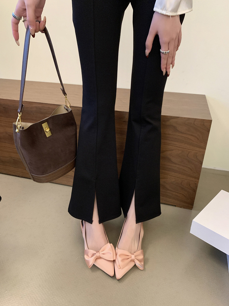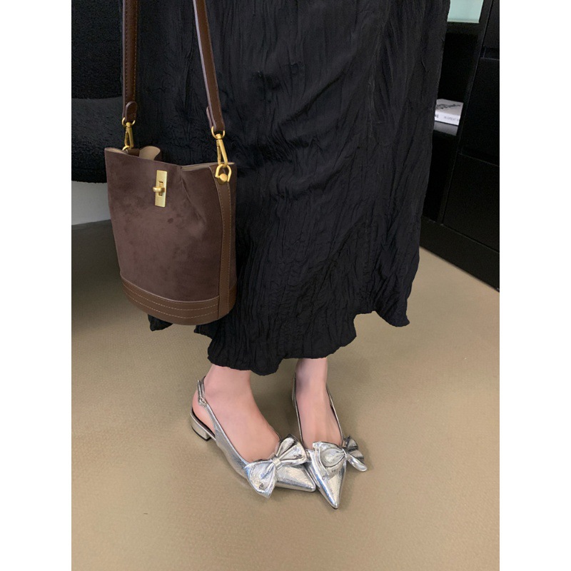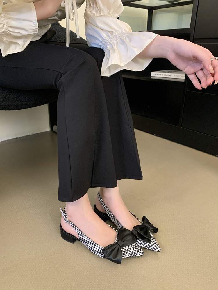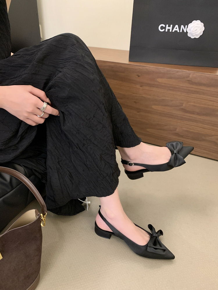 法式粗跟蝴蝶结包头凉鞋女鞋子新款夏季仙女气质尖头后空单鞋