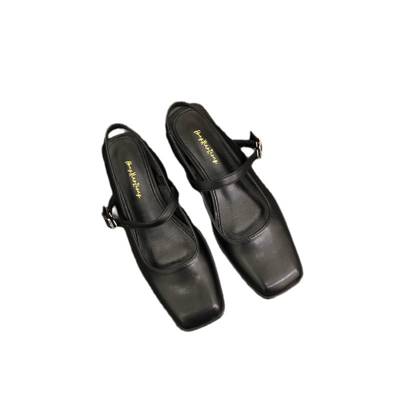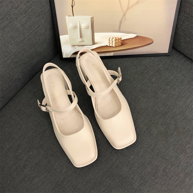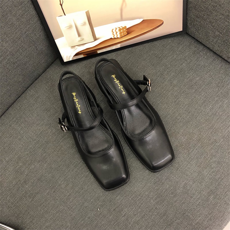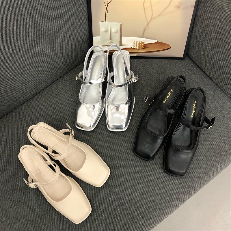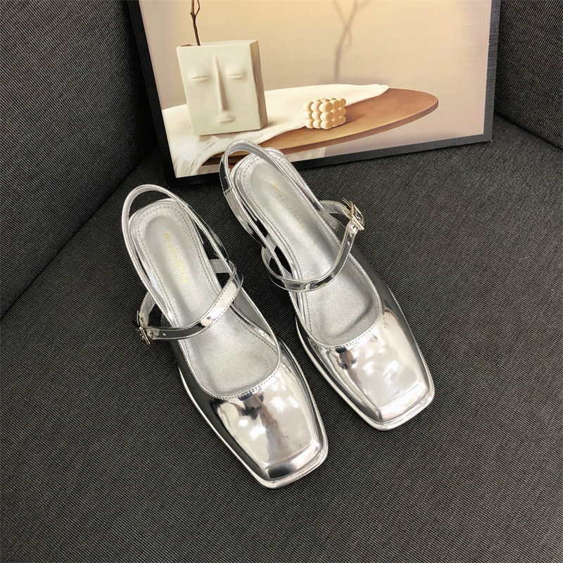 浅口方头银色单鞋女春新款韩版法式复古晚风仙女平底玛丽珍鞋