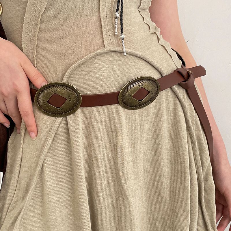 美式复古腰带女棕色新款夏季细皮带百搭配牛仔裤带ins高级感