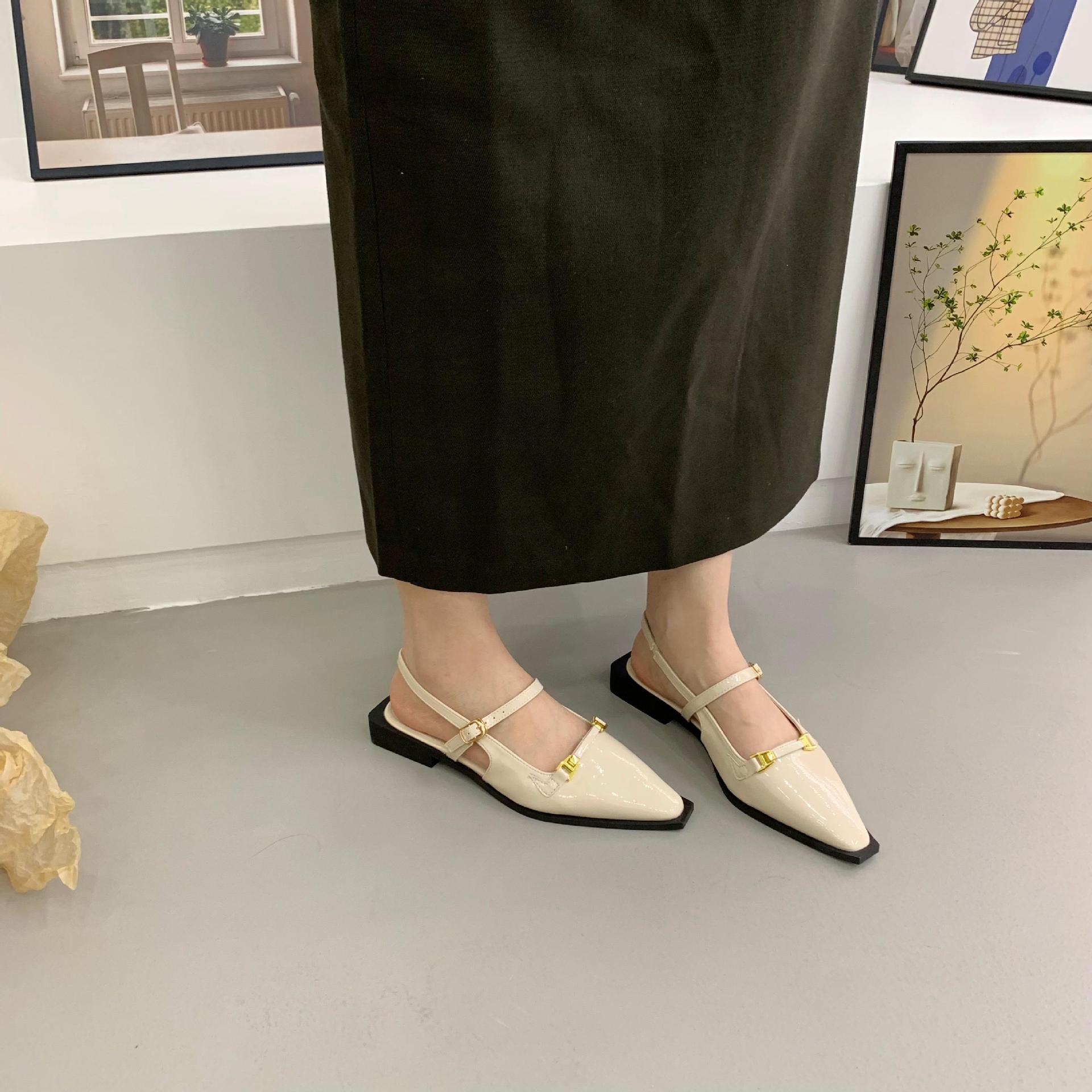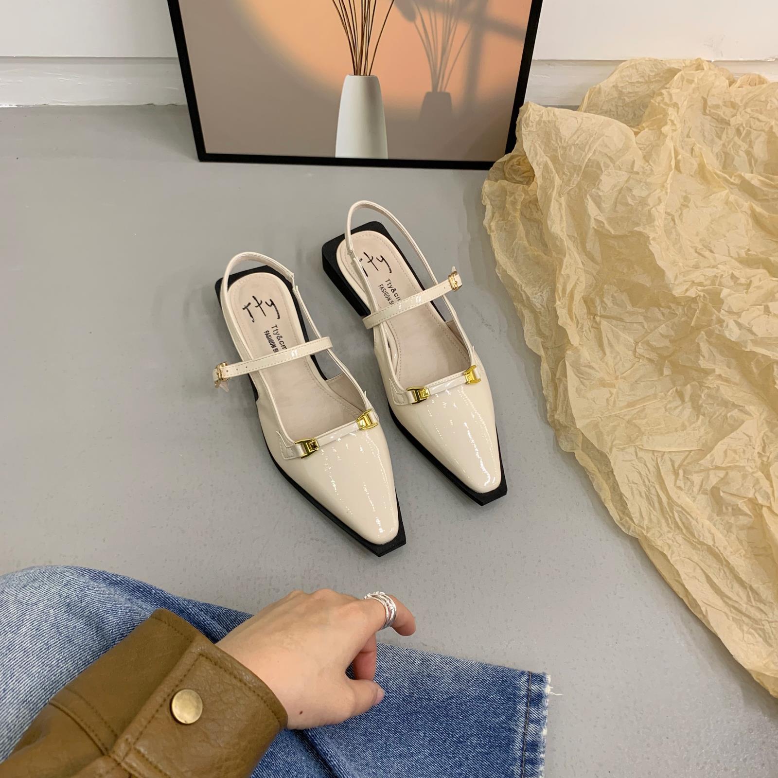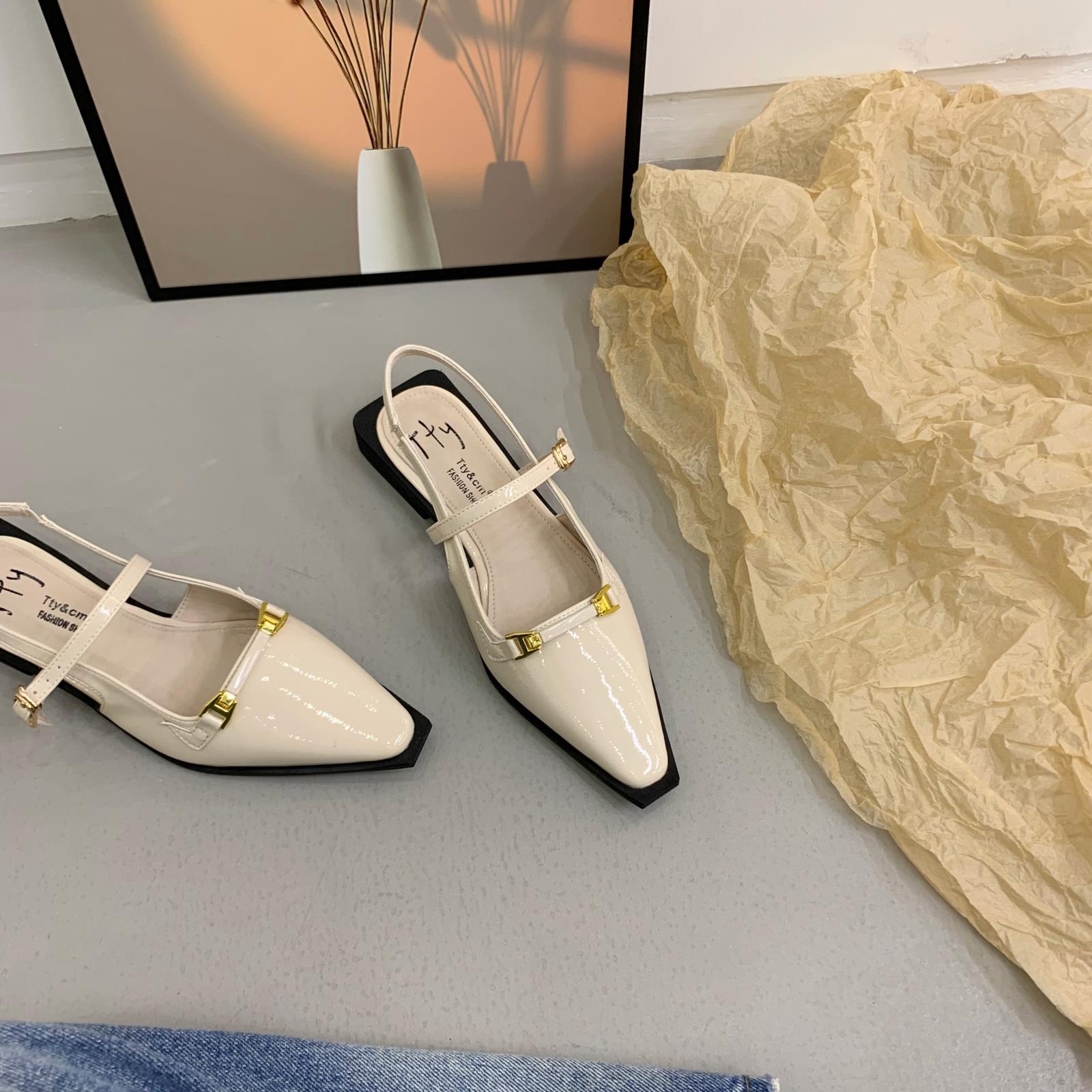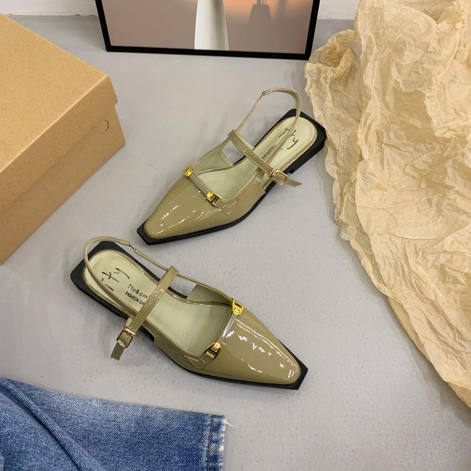 法式复古小众包头凉鞋夏季晚晚风温柔鞋子气质尖头漆皮单鞋女