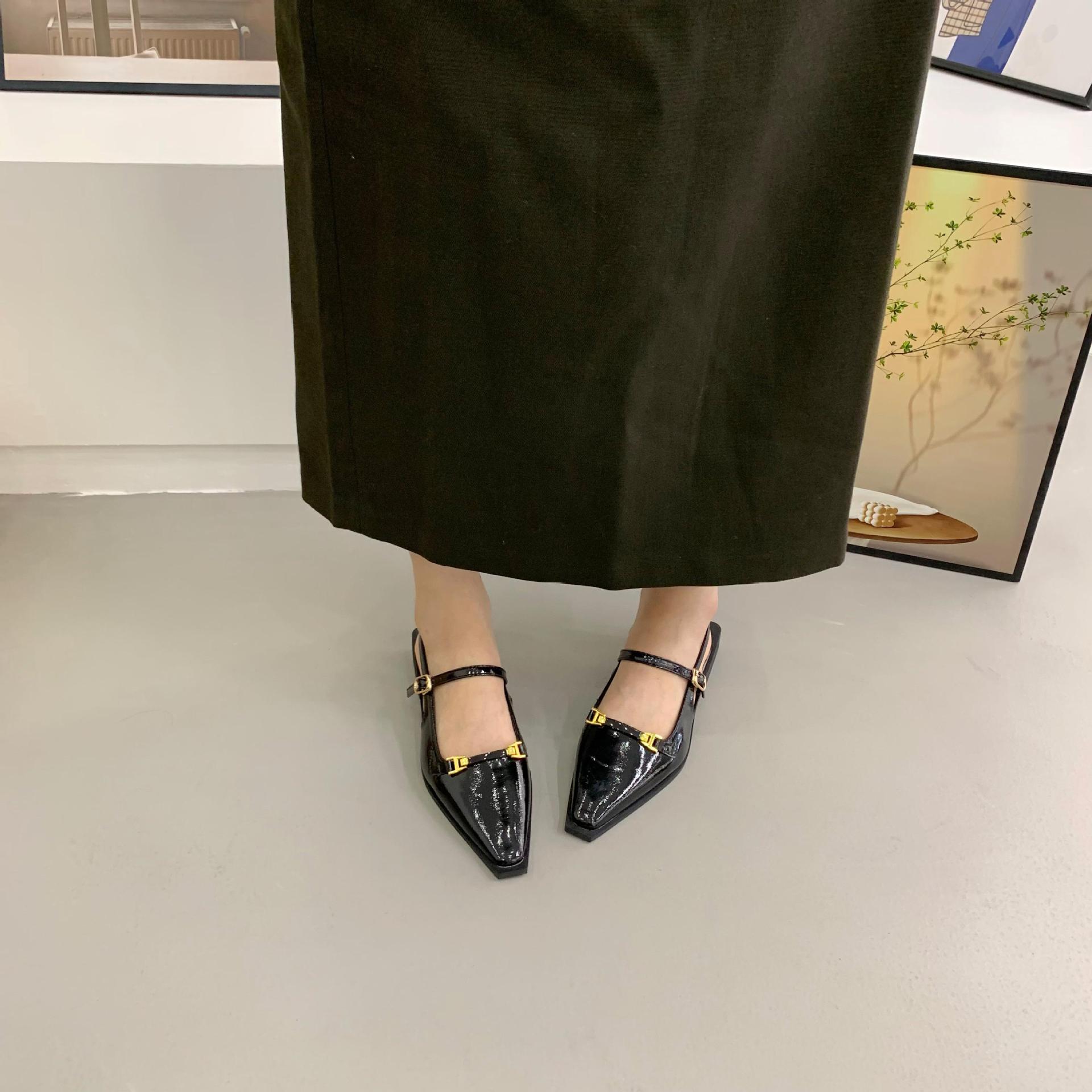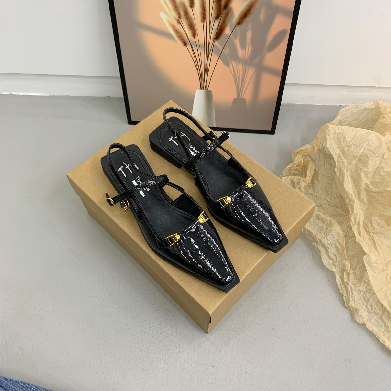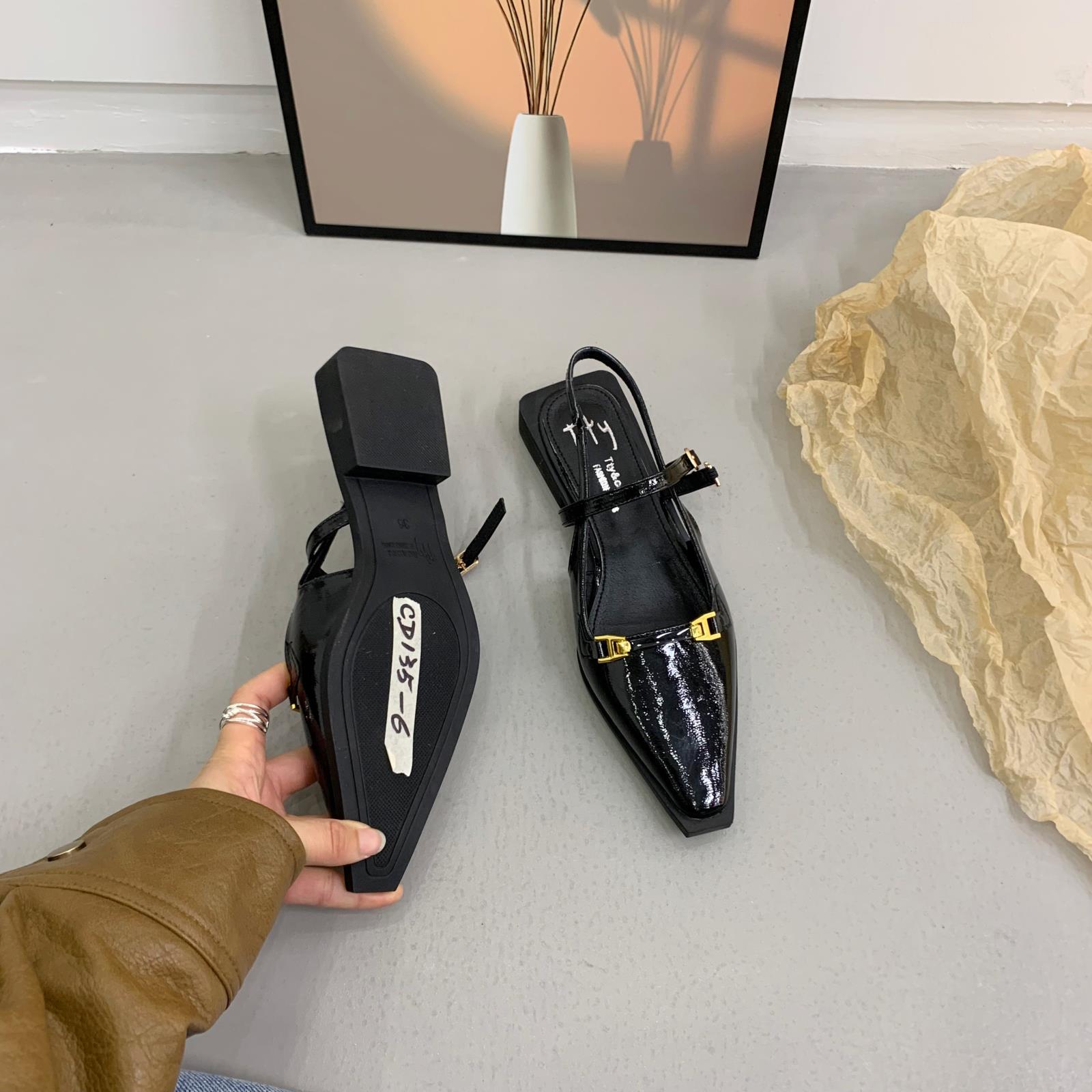 法式复古小众包头凉鞋夏季晚晚风温柔鞋子气质尖头漆皮单鞋女