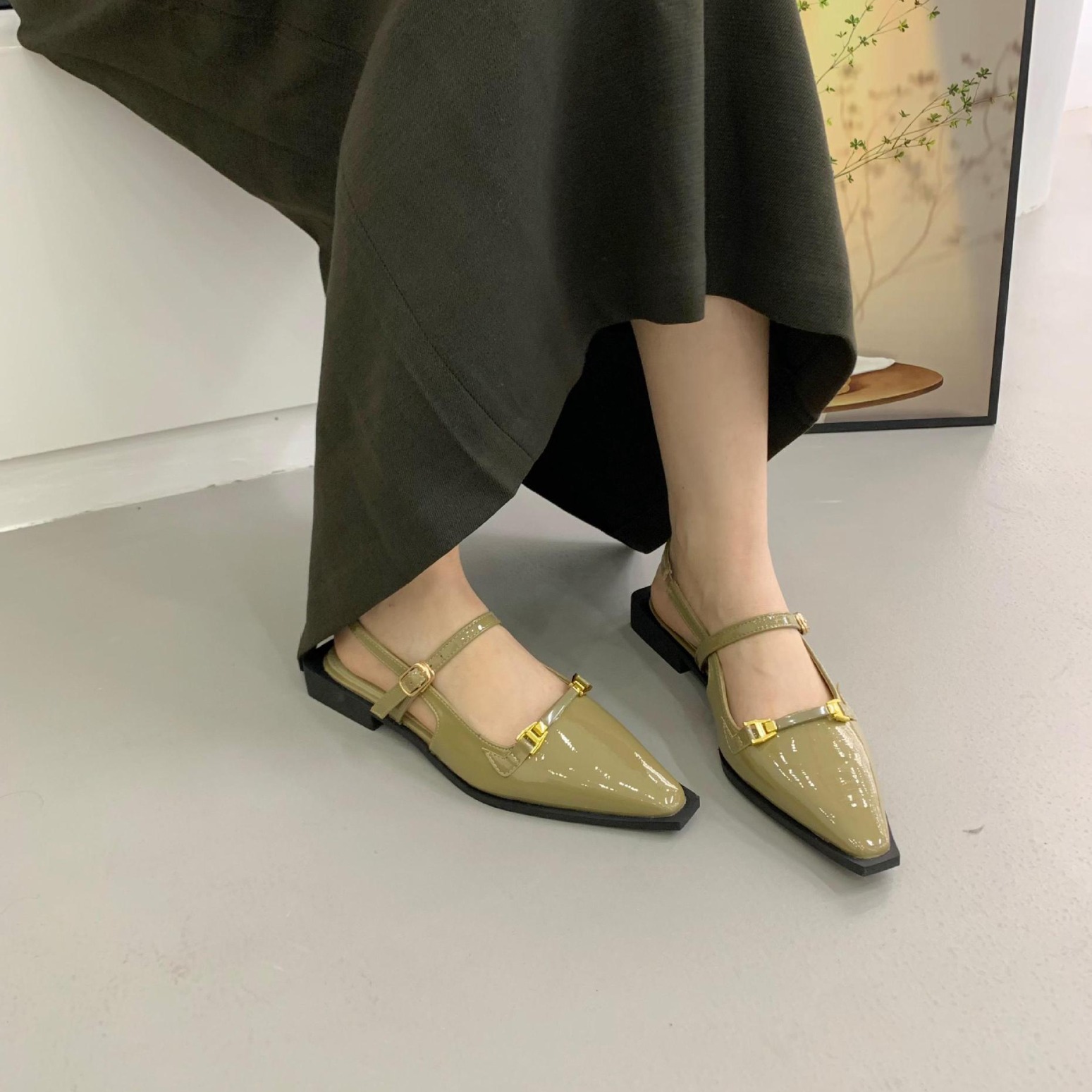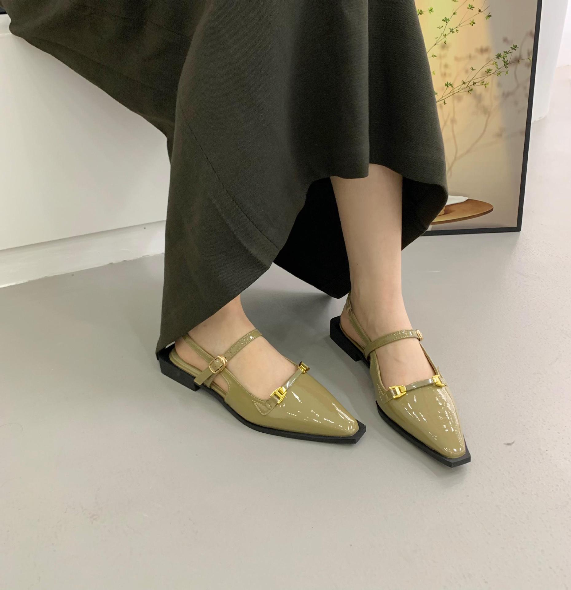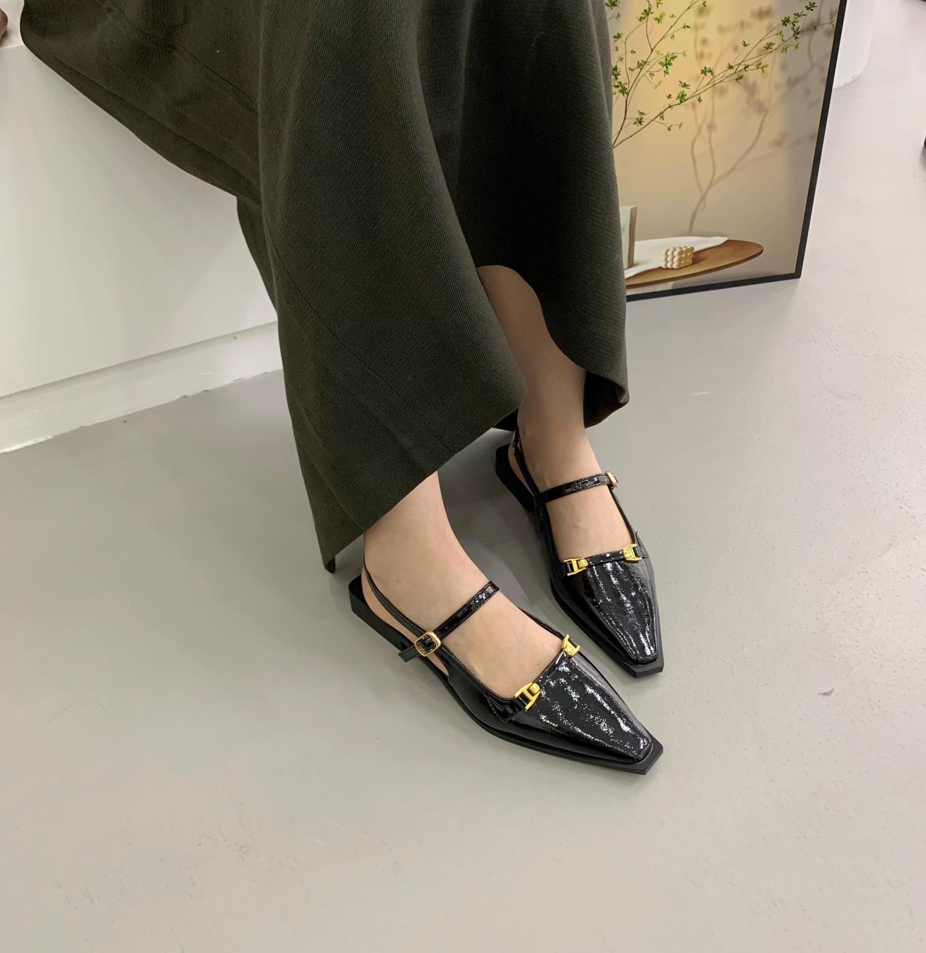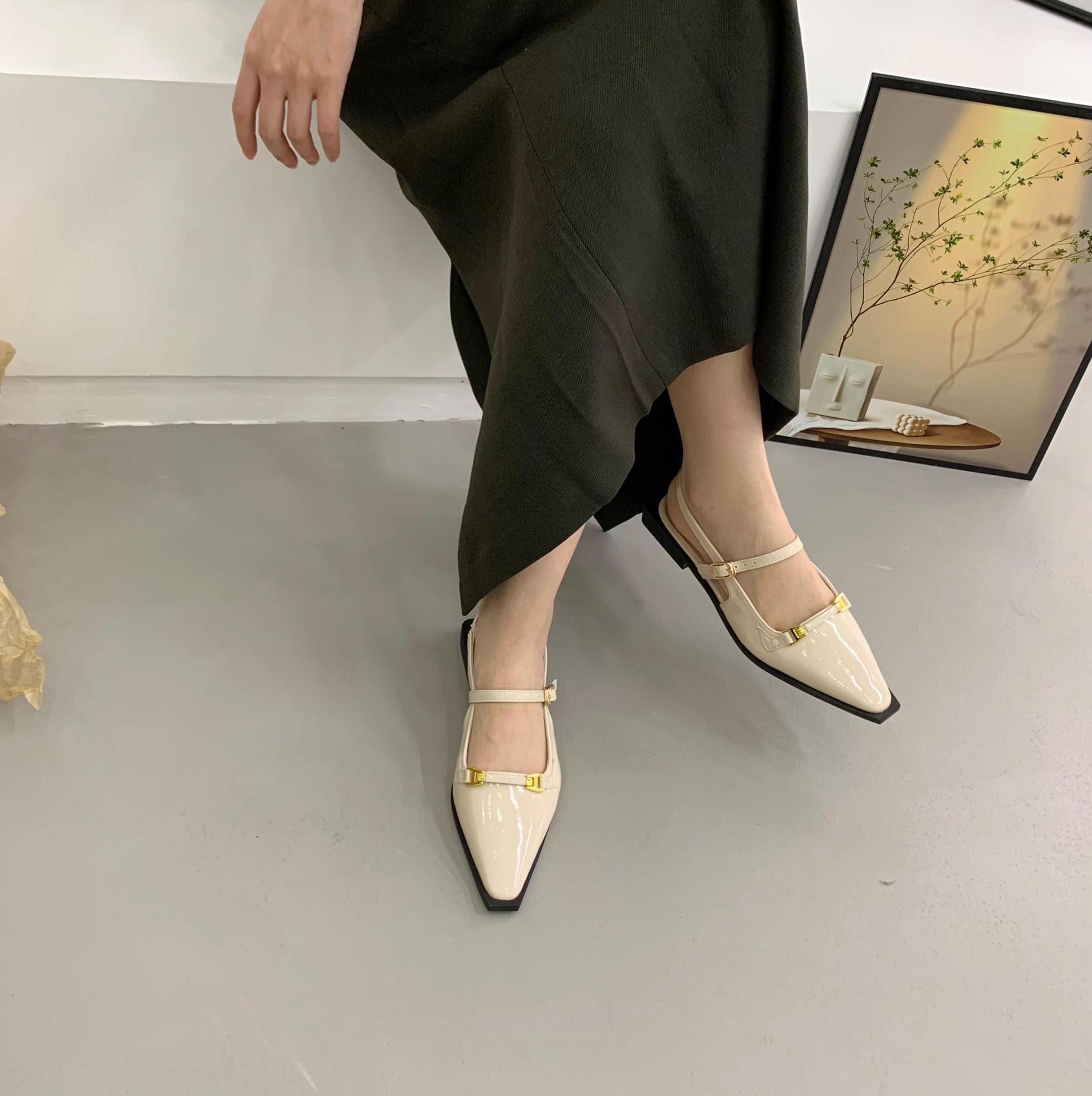 法式复古小众包头凉鞋夏季晚晚风温柔鞋子气质尖头漆皮单鞋女