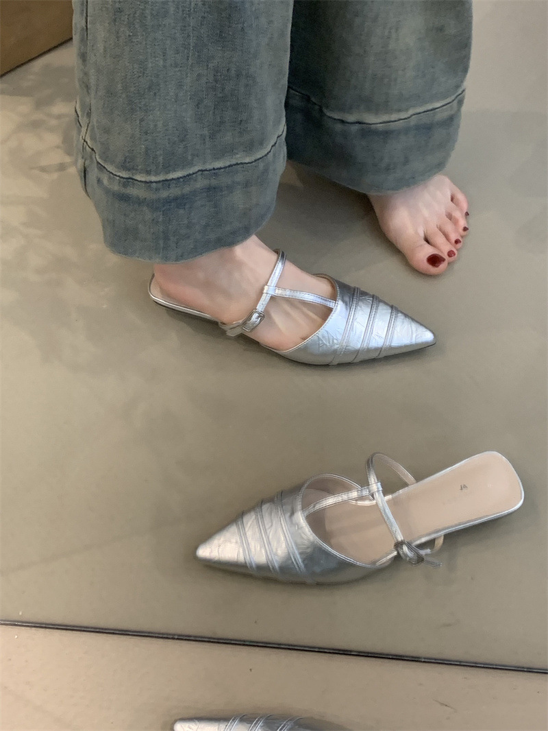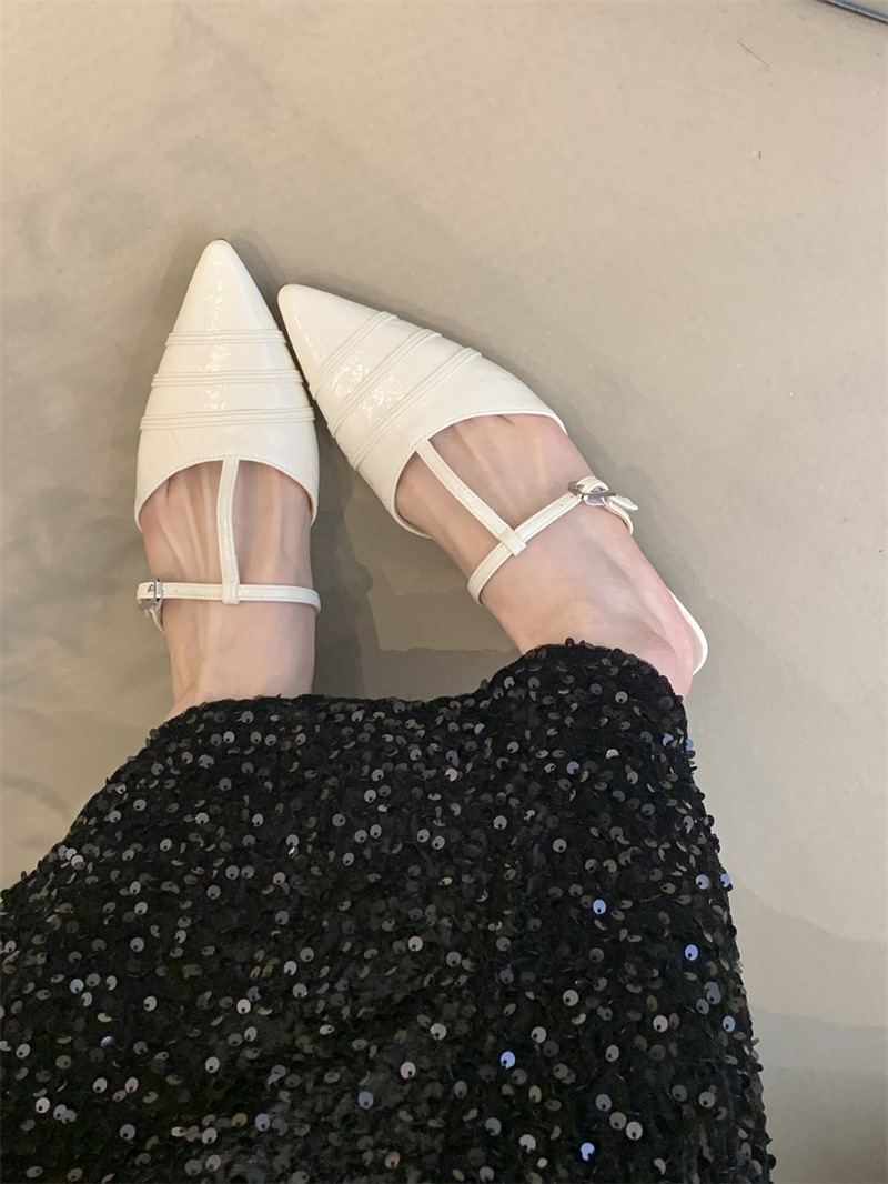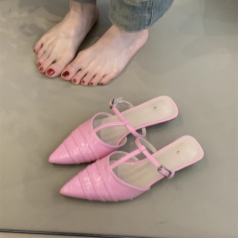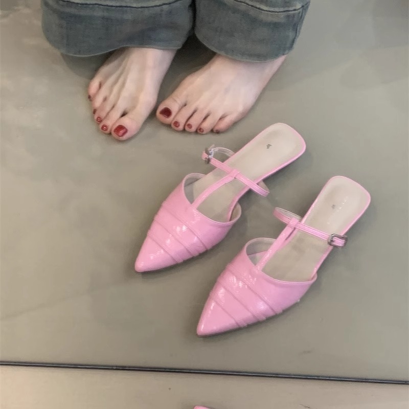 温柔仙女玛丽珍鞋女2025年春季法式气质优雅粉色配裙子包头半拖鞋