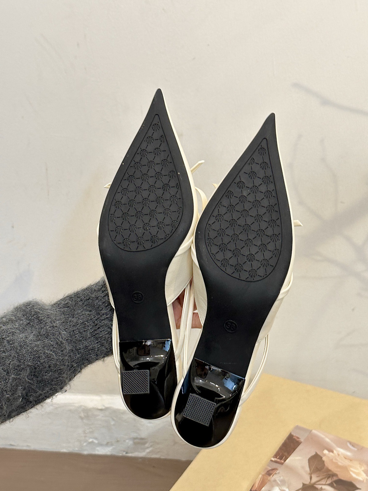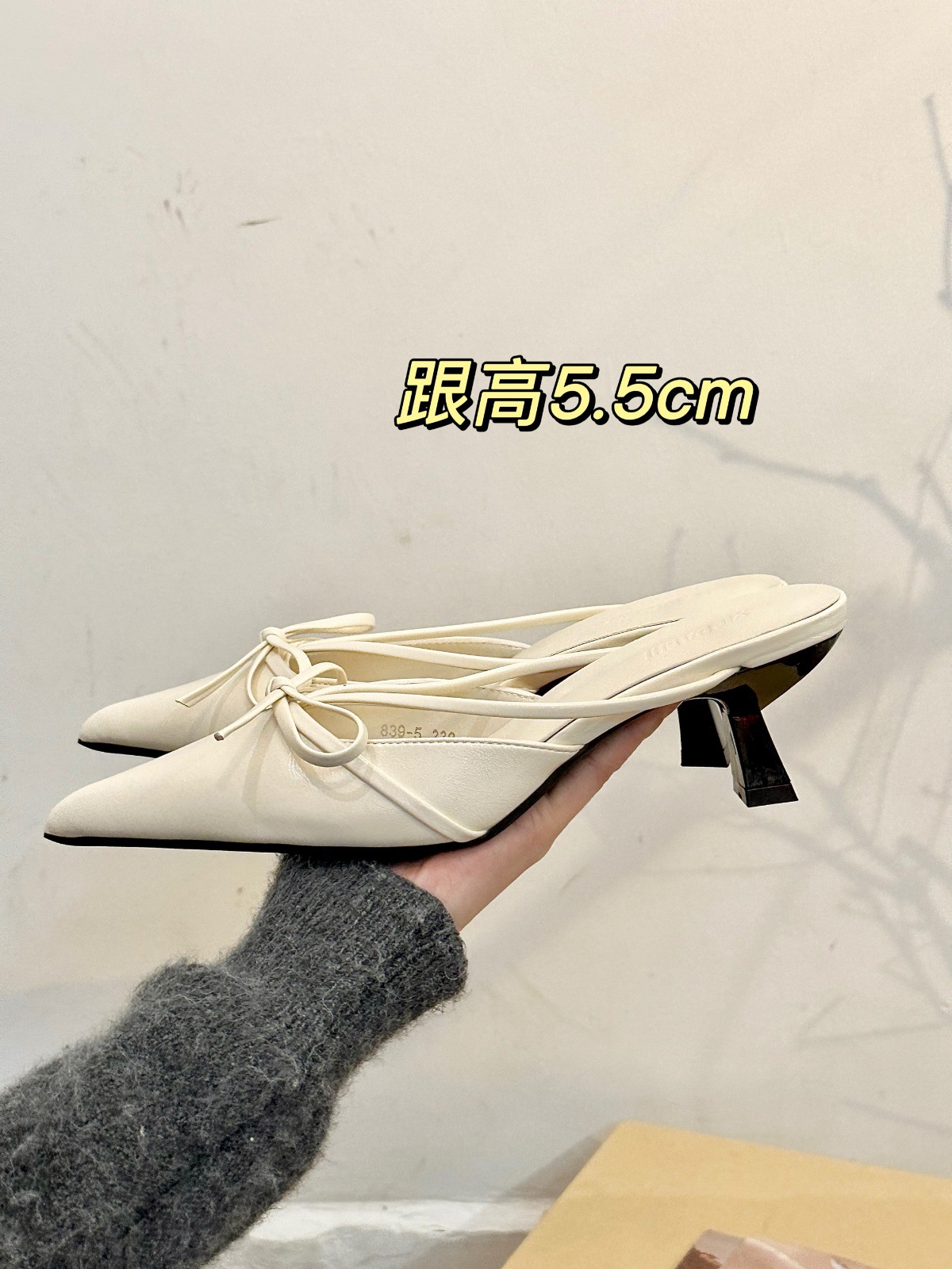titing薄荷蓝雾!气质蝴蝶结包头半拖鞋女春2025外穿细带猫跟凉鞋