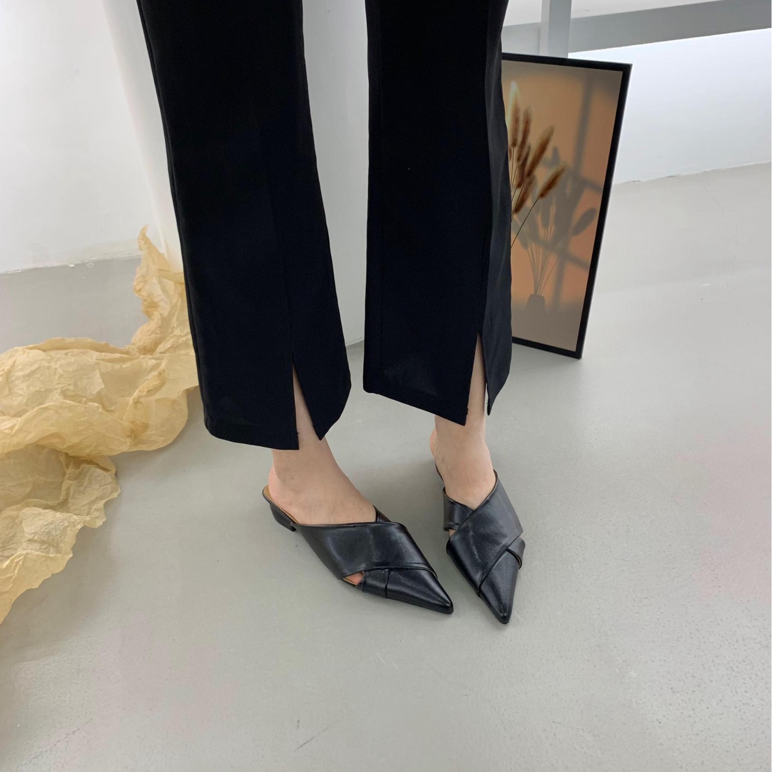新款玛丽珍气质百搭尖头浅口凉拖一字带粗跟低跟时尚包头凉鞋拖鞋