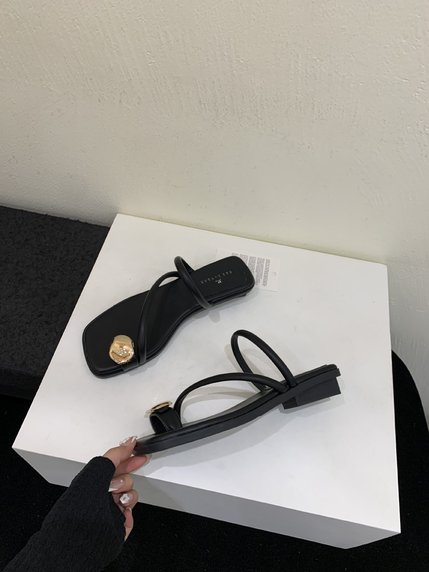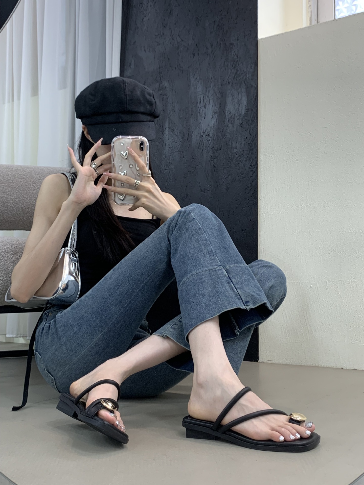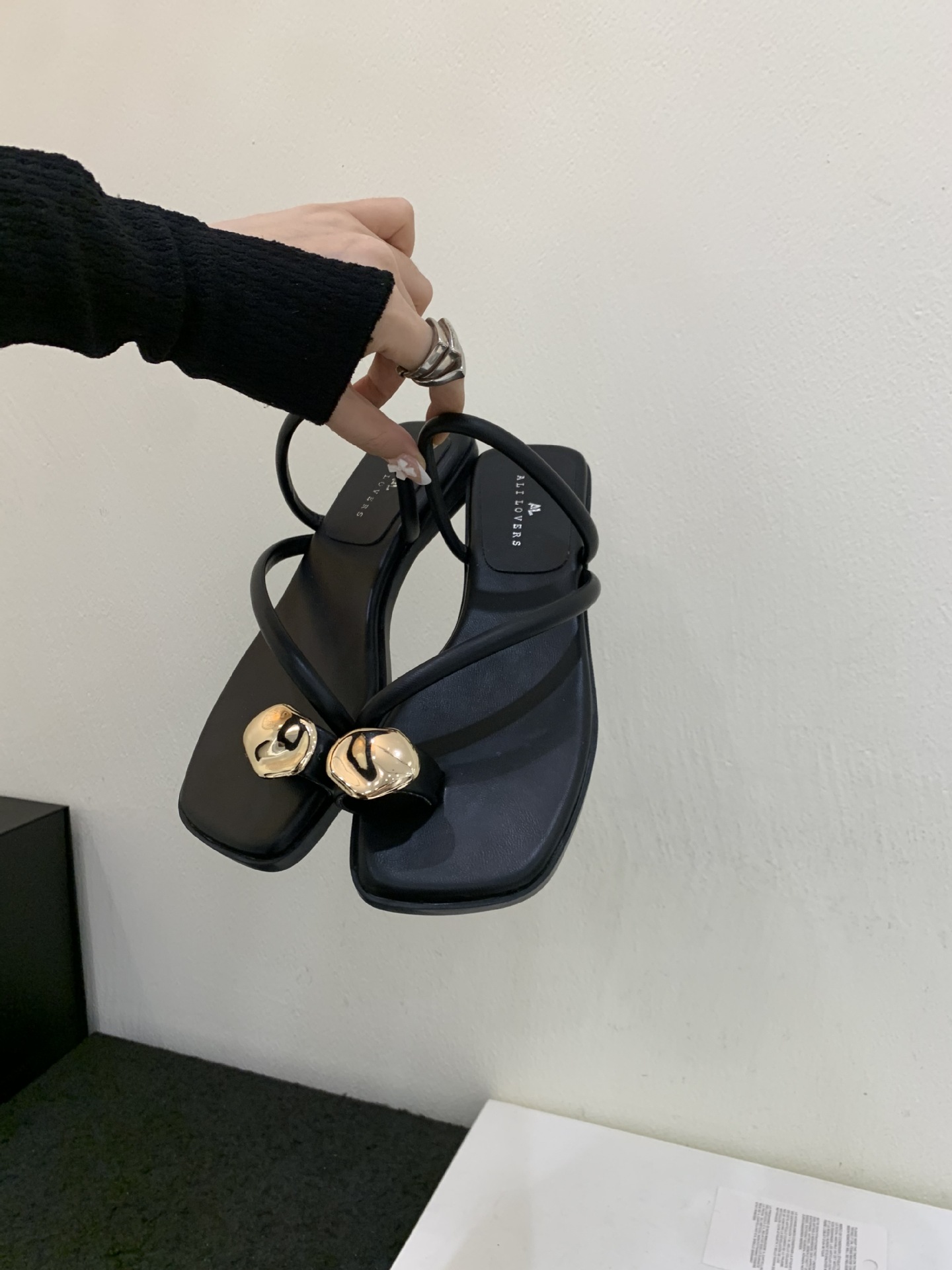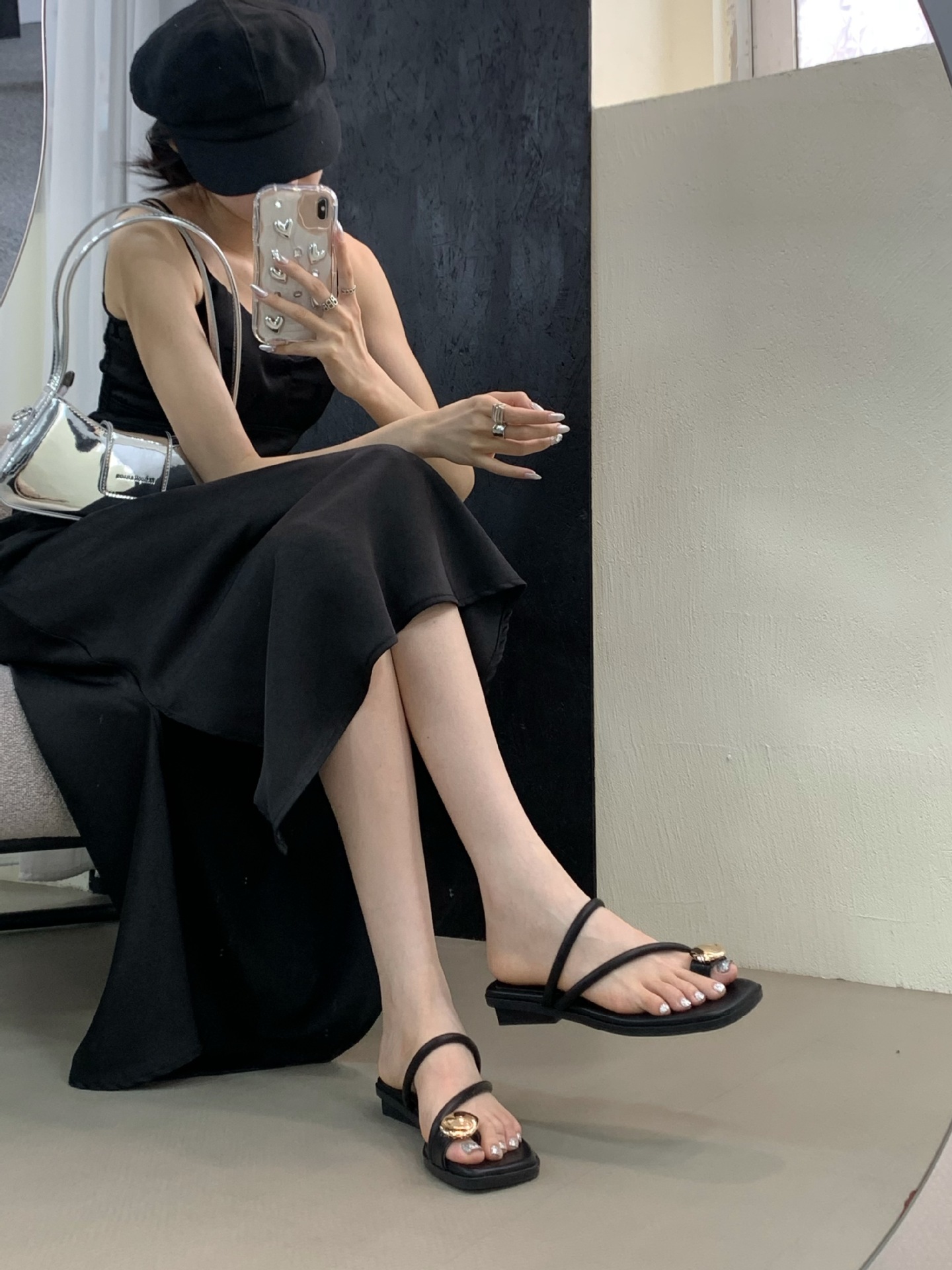 小众时尚一字拖凉拖拖鞋法式黑色平底罗马鞋凉鞋女款外穿夏季女鞋