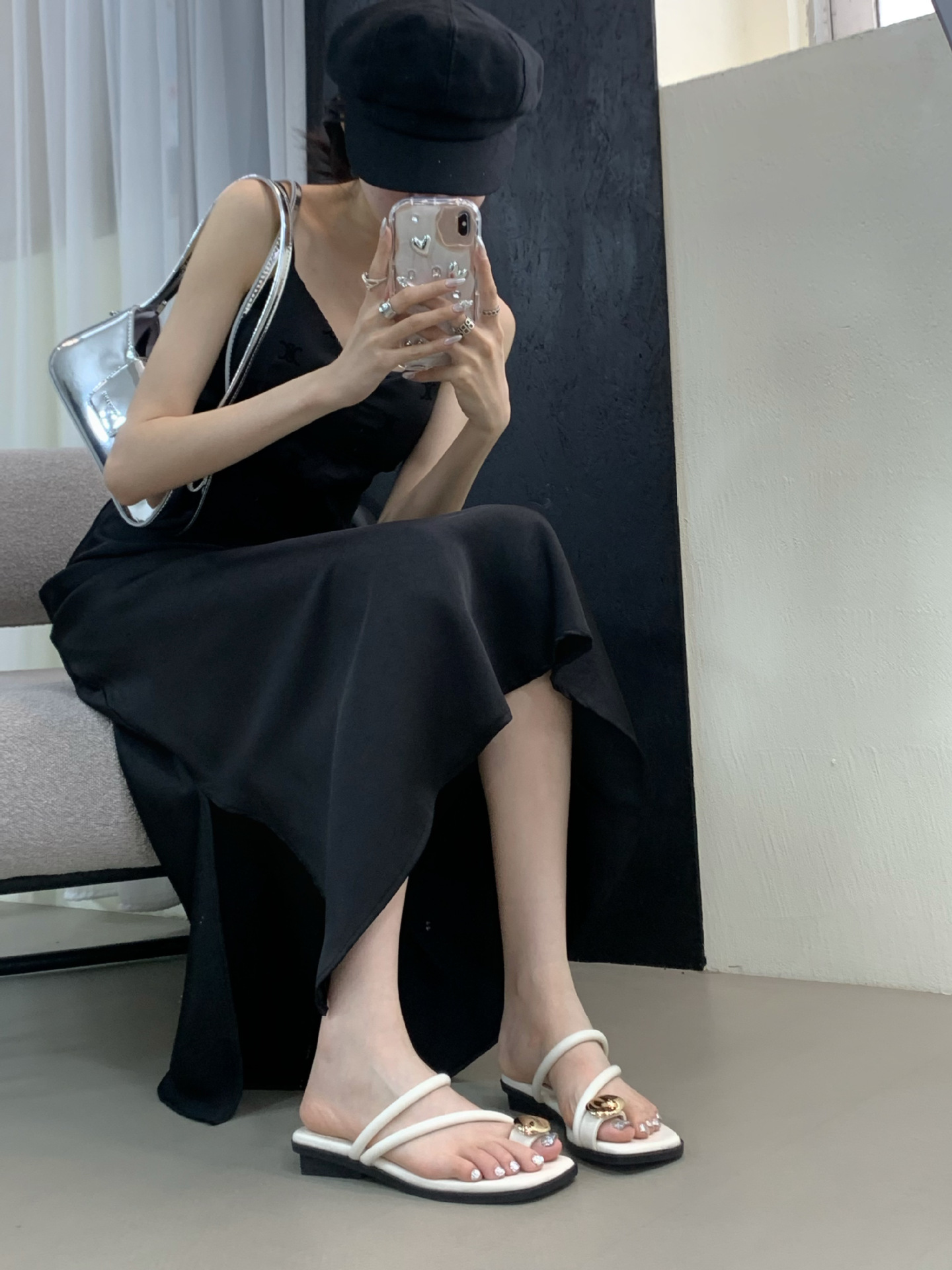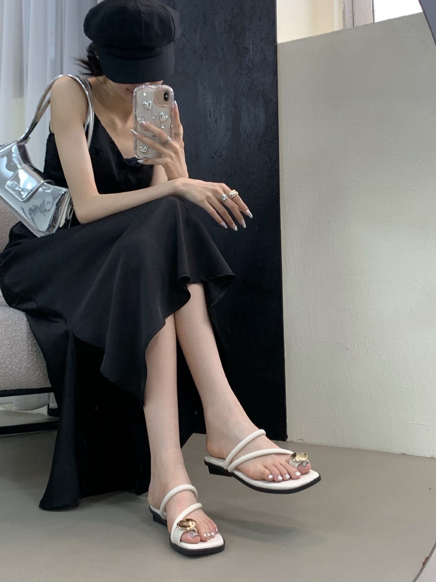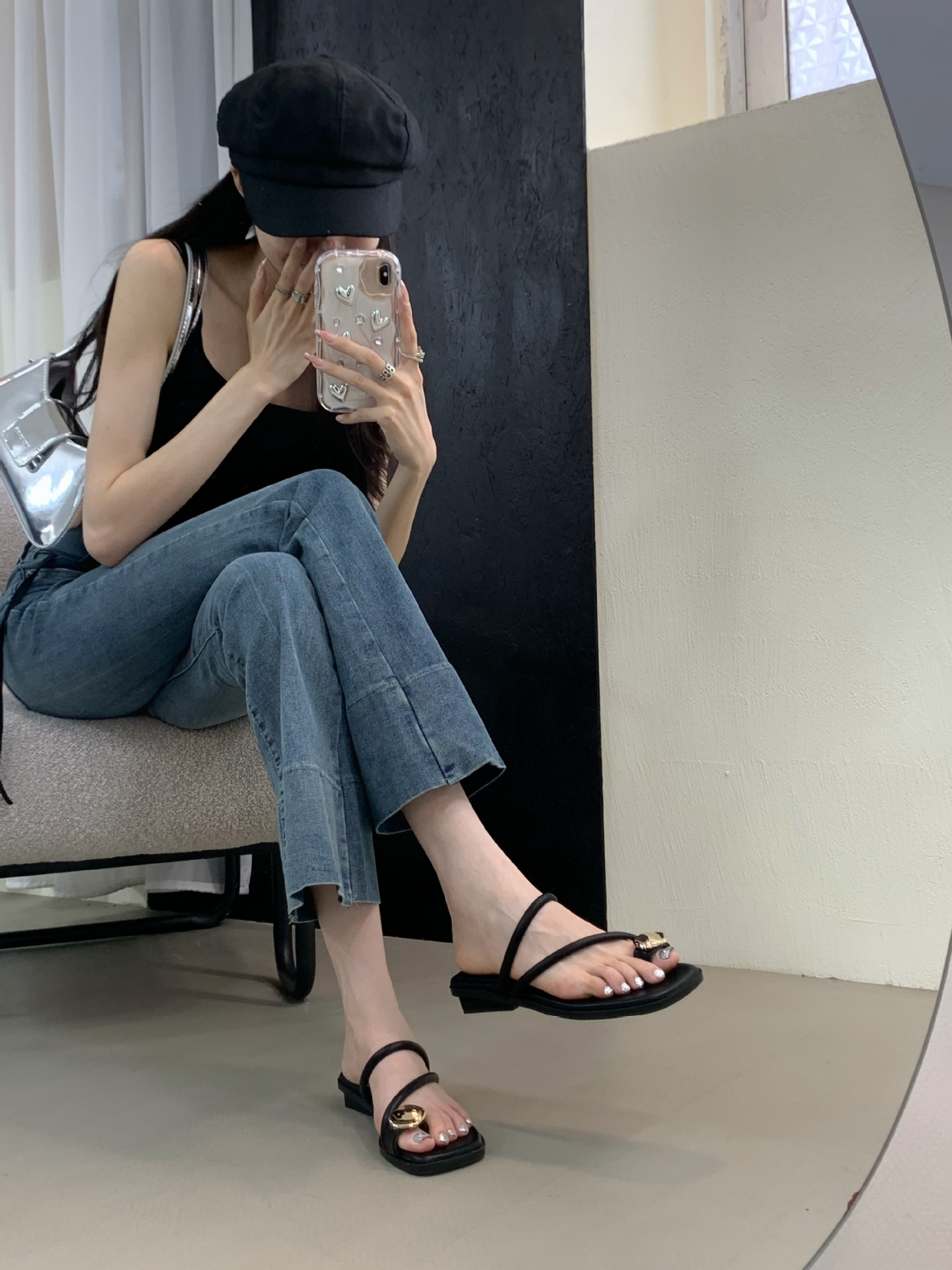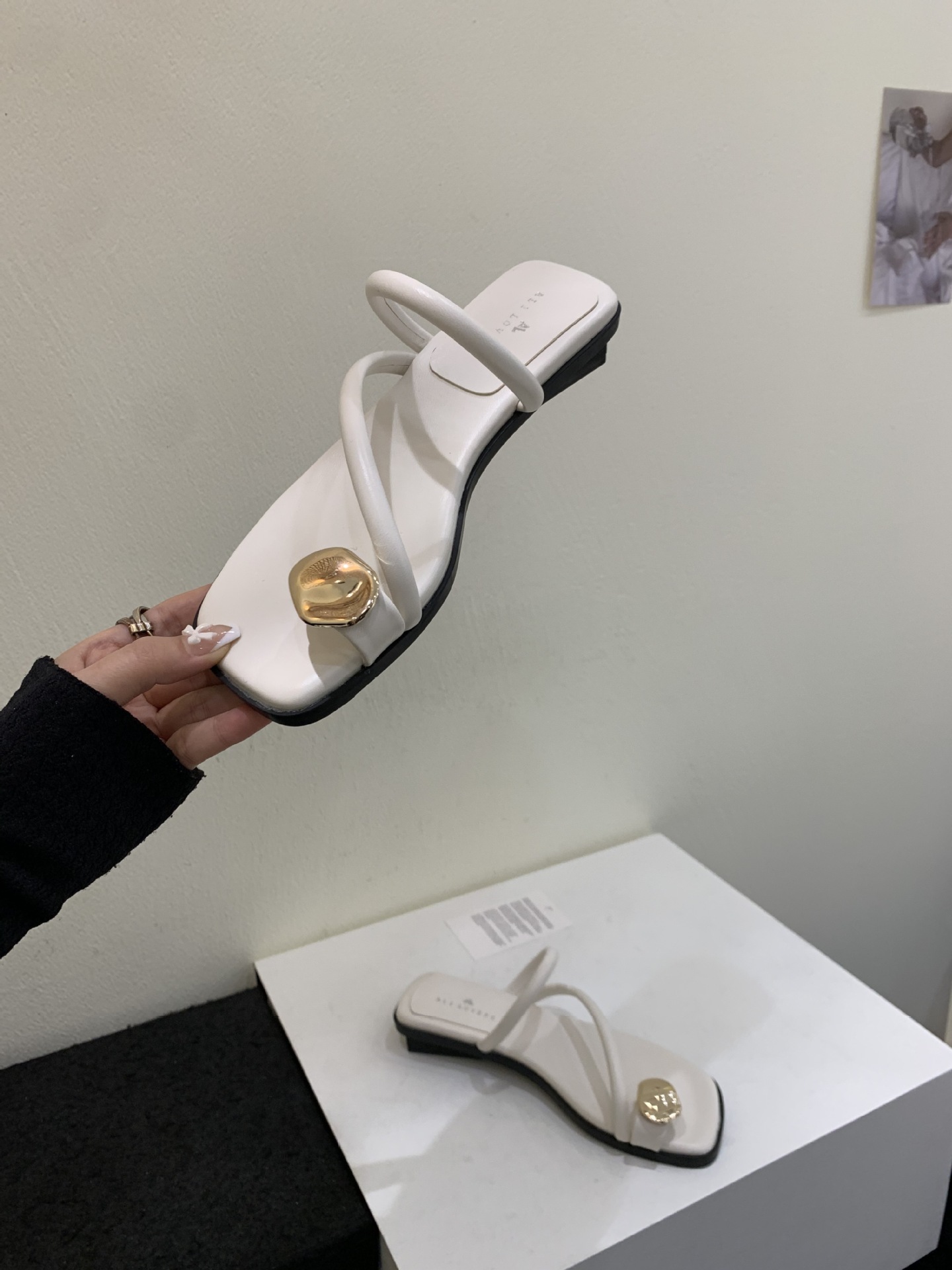 小众时尚一字拖凉拖拖鞋法式黑色平底罗马鞋凉鞋女款外穿夏季女鞋