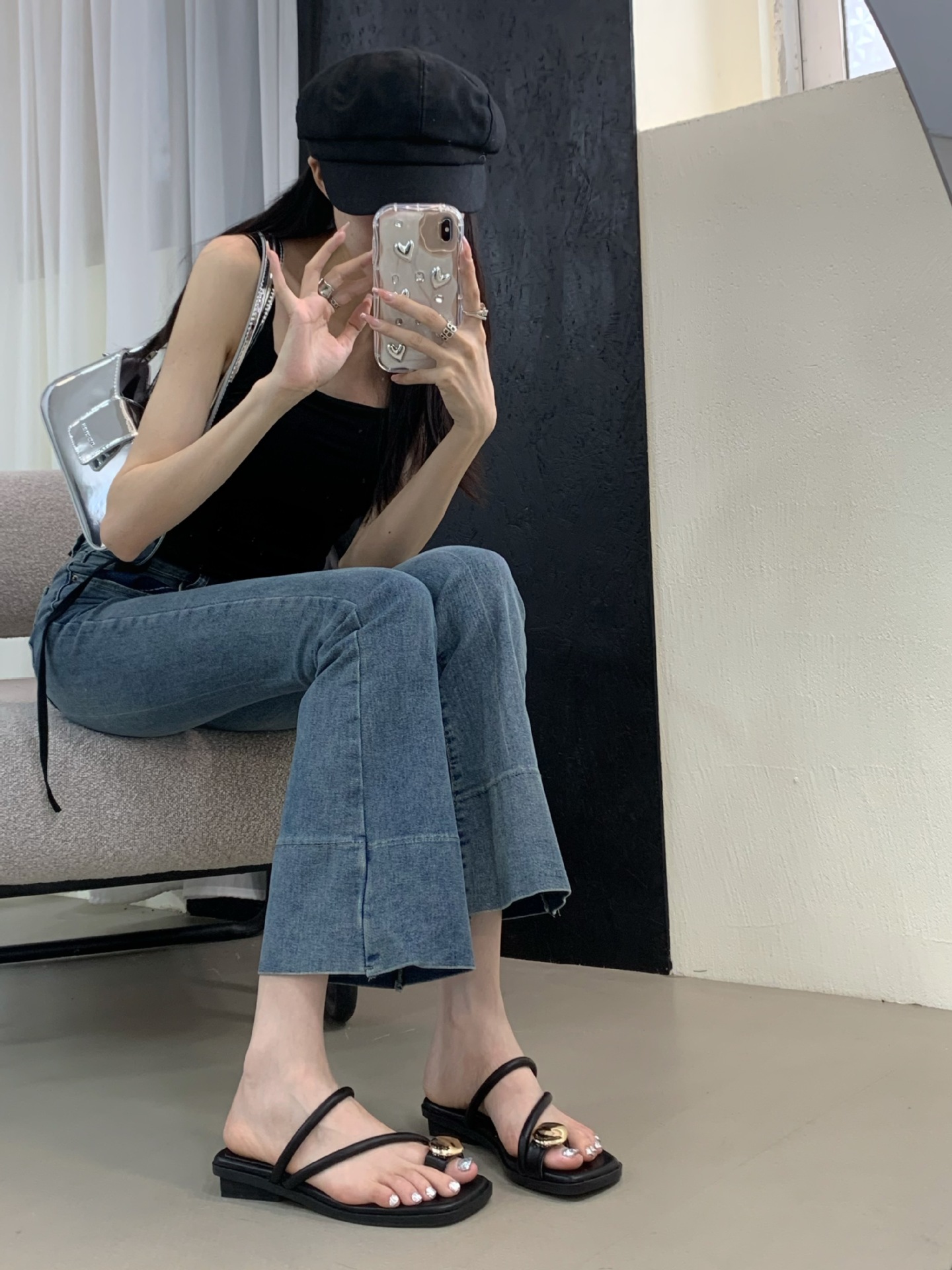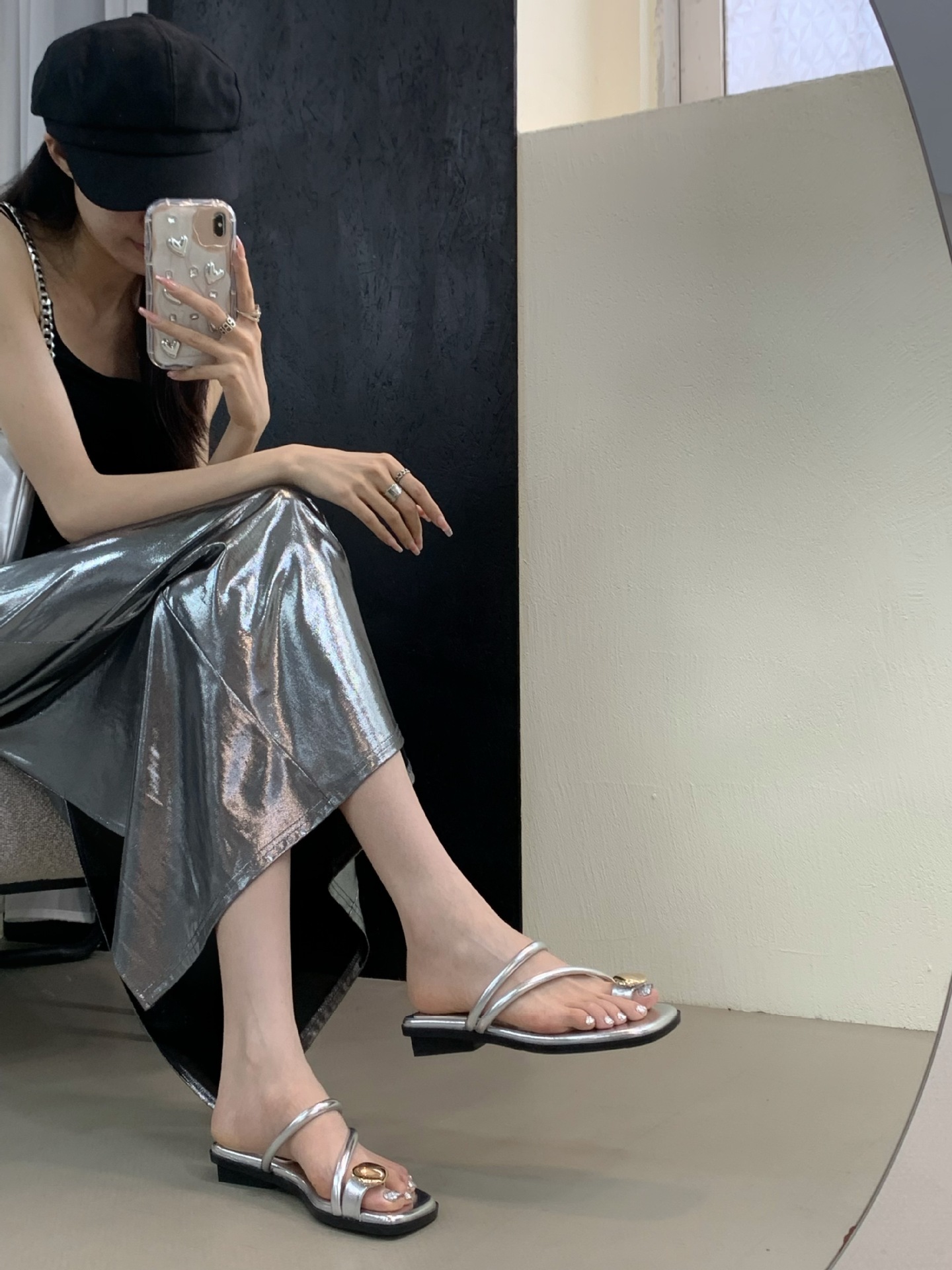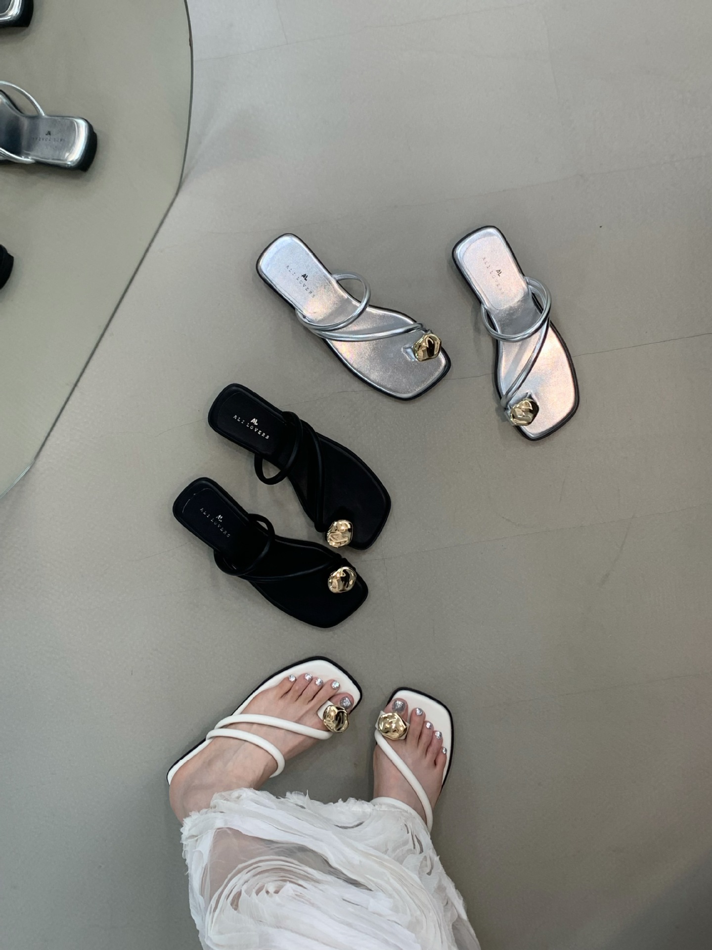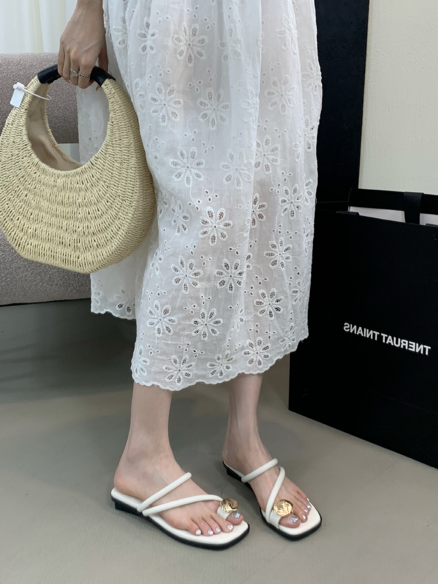 小众时尚一字拖凉拖拖鞋法式黑色平底罗马鞋凉鞋女款外穿夏季女鞋