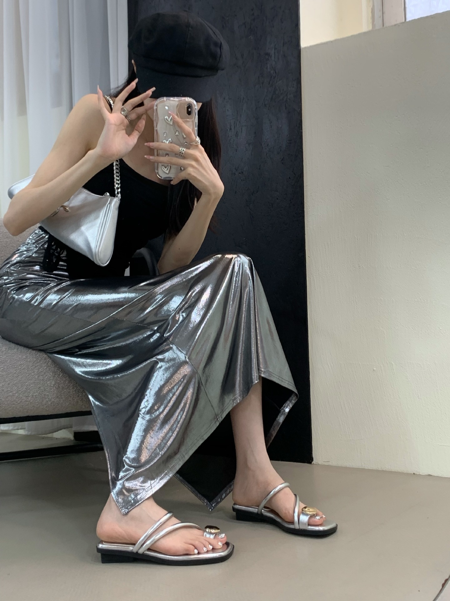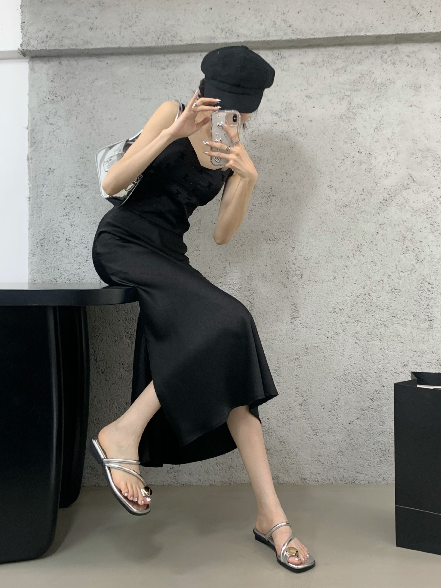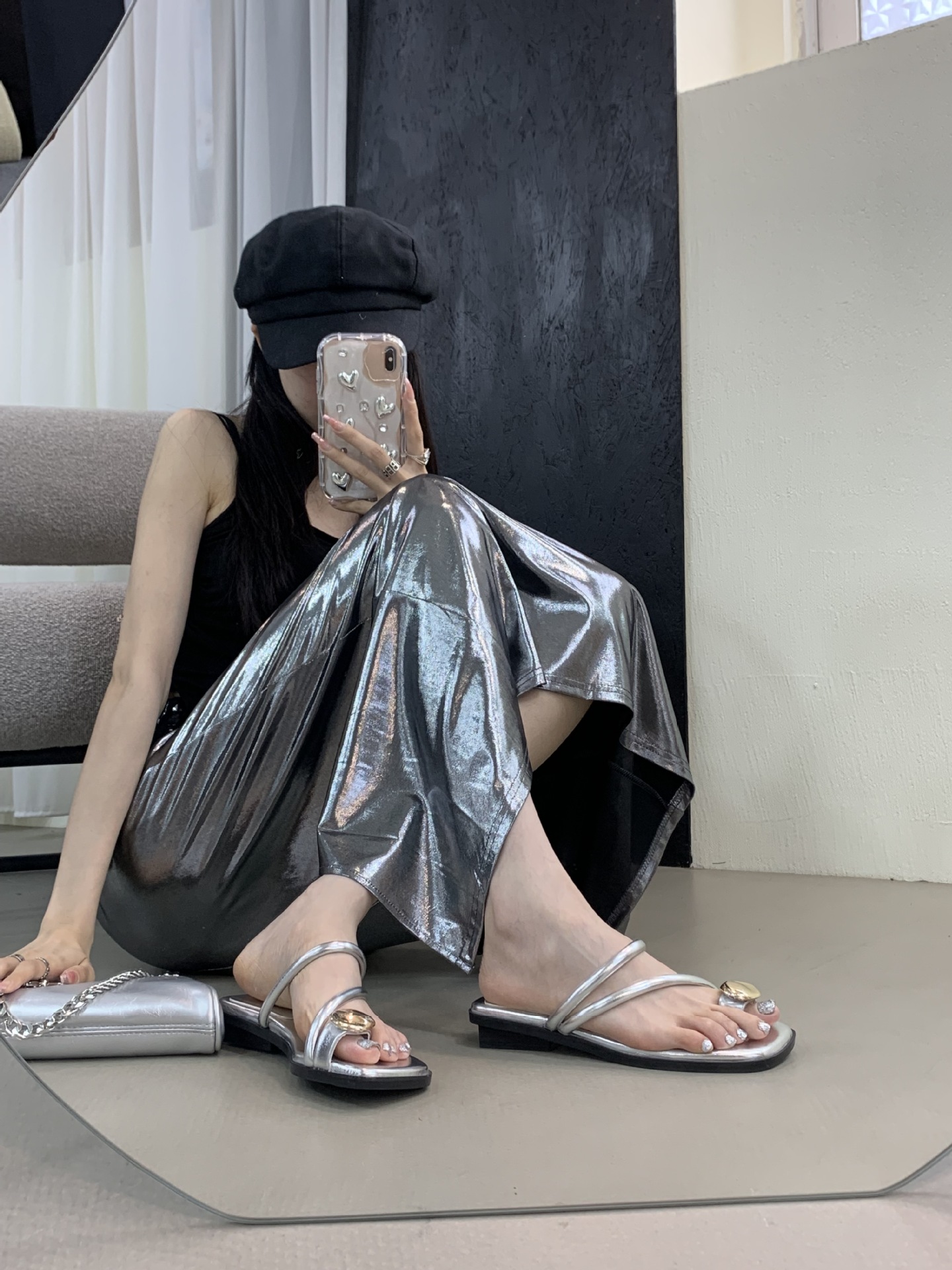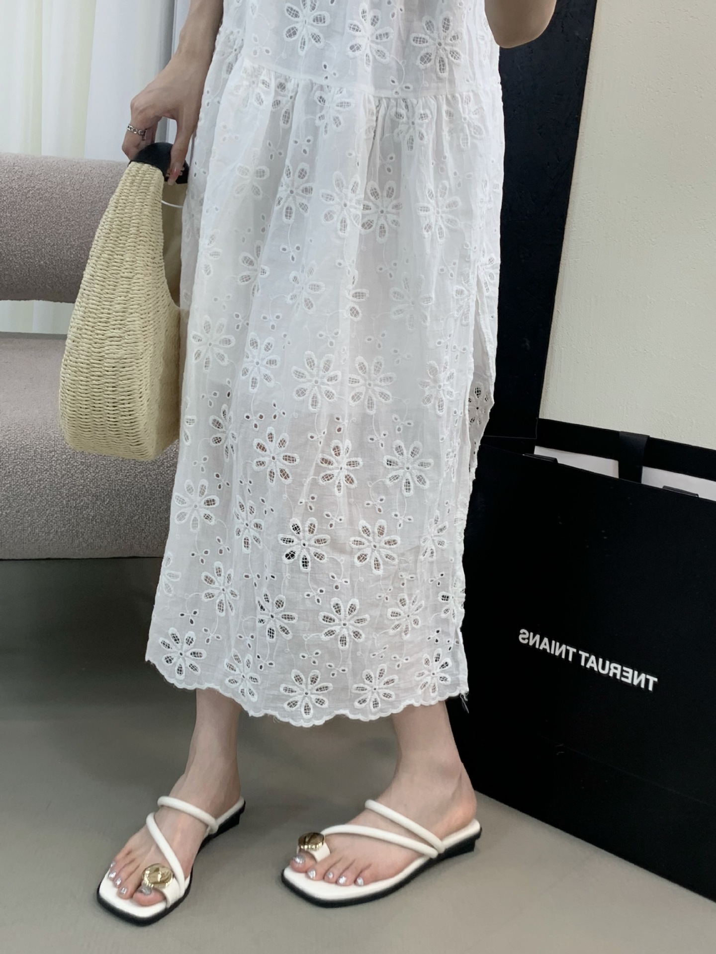 小众时尚一字拖凉拖拖鞋法式黑色平底罗马鞋凉鞋女款外穿夏季女鞋