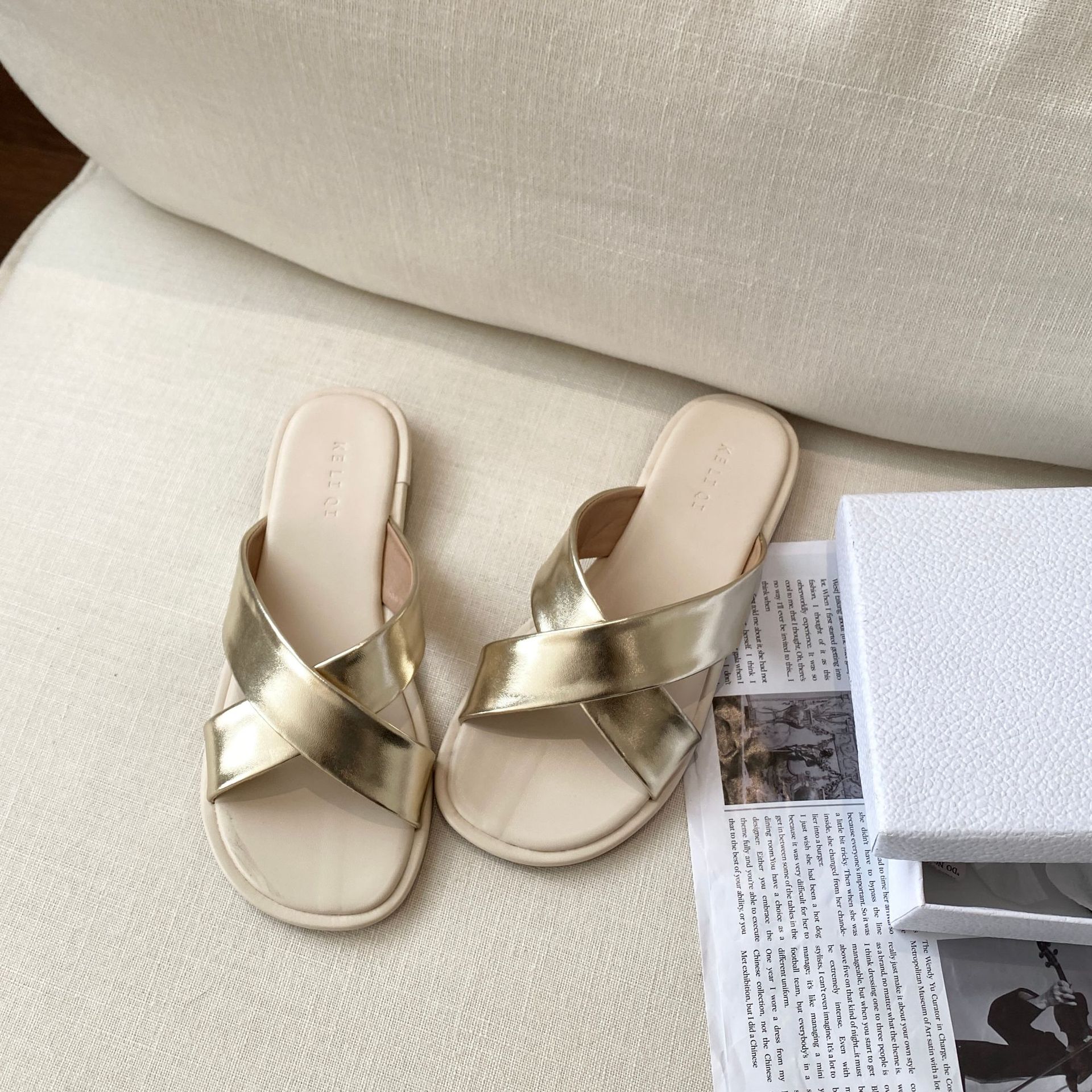 平底小众法式交叉带露趾拖鞋女外穿夏季新款软底沙滩凉鞋