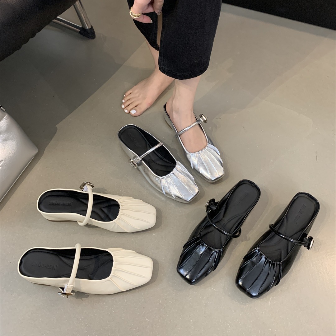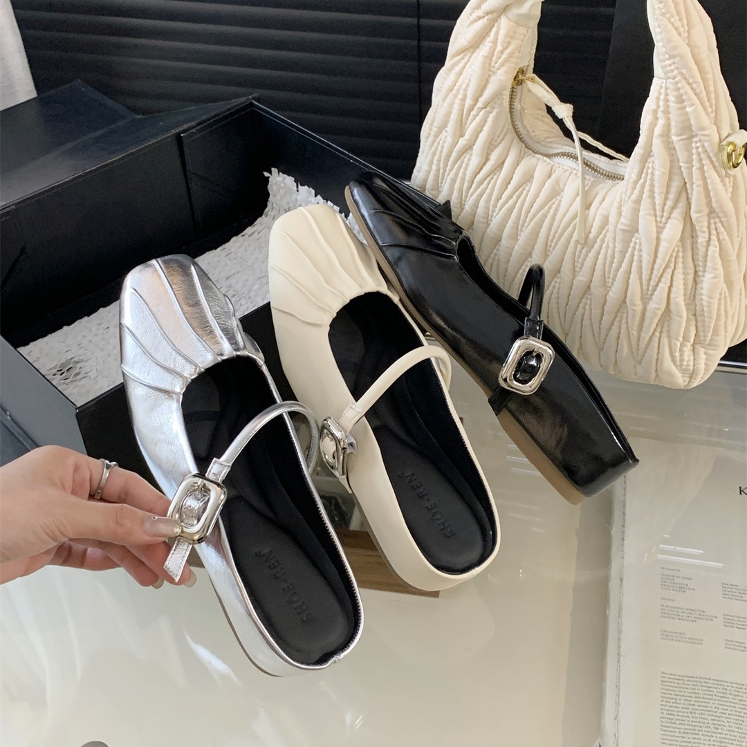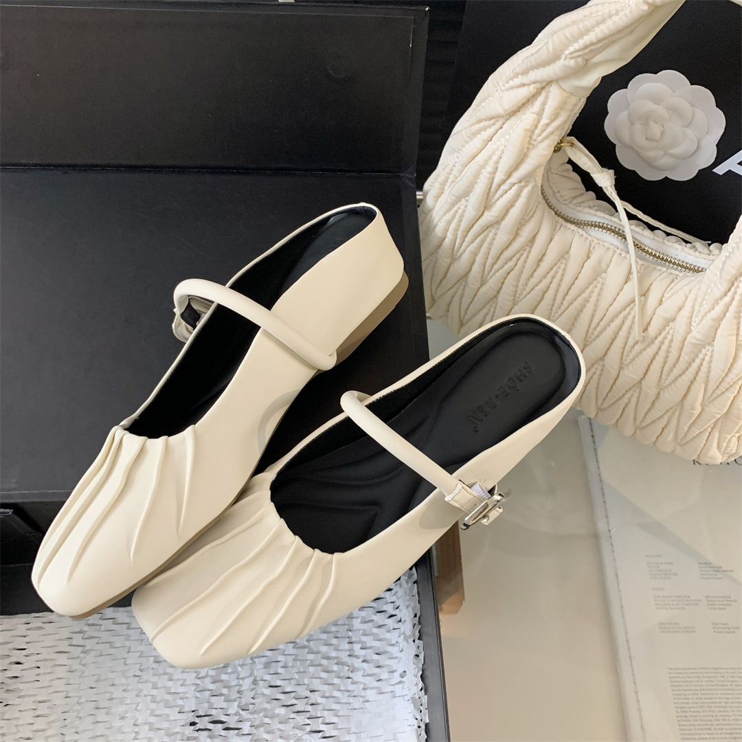 新款超软豆豆鞋懒人浅口方头玛丽珍鞋法式小香风浅口平底休闲