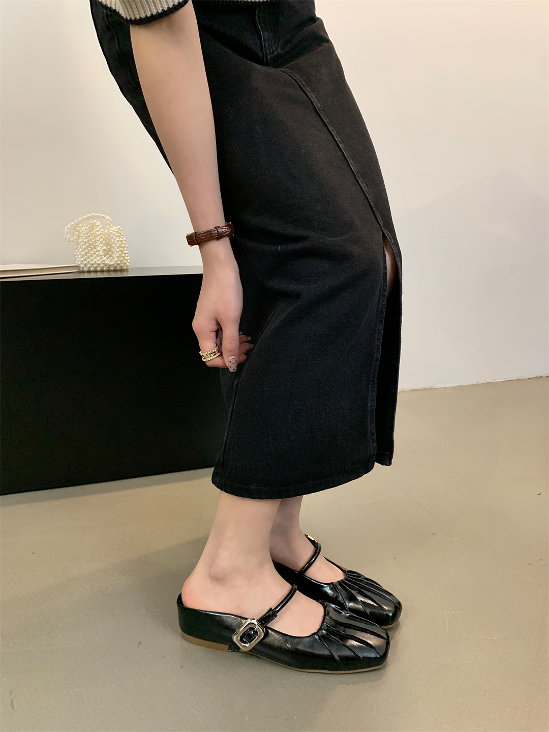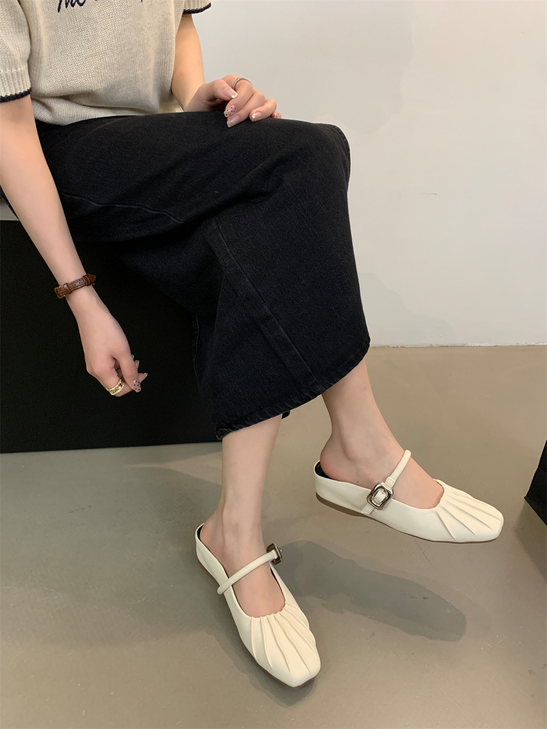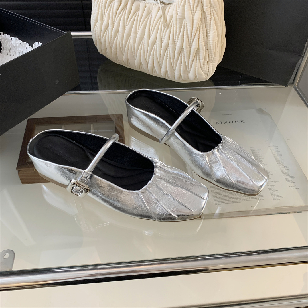 新款超软豆豆鞋懒人浅口方头玛丽珍鞋法式小香风浅口平底休闲