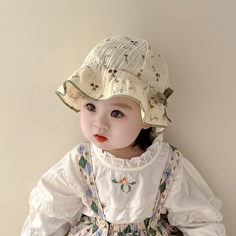 春秋薄款婴幼儿渔夫帽子女宝宝碎花田园风碎花遮阳防晒女童盆帽夏