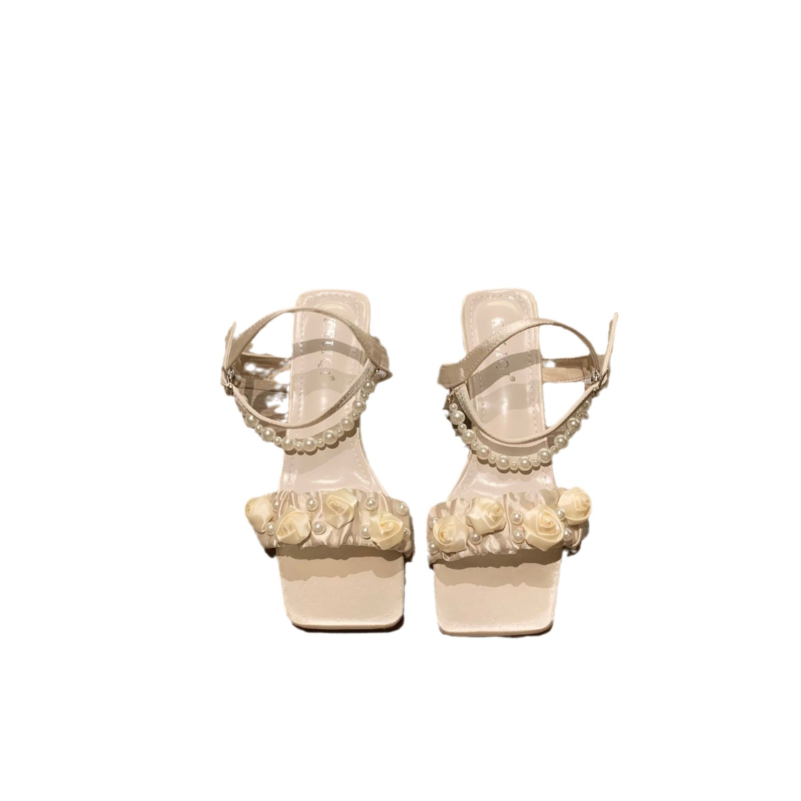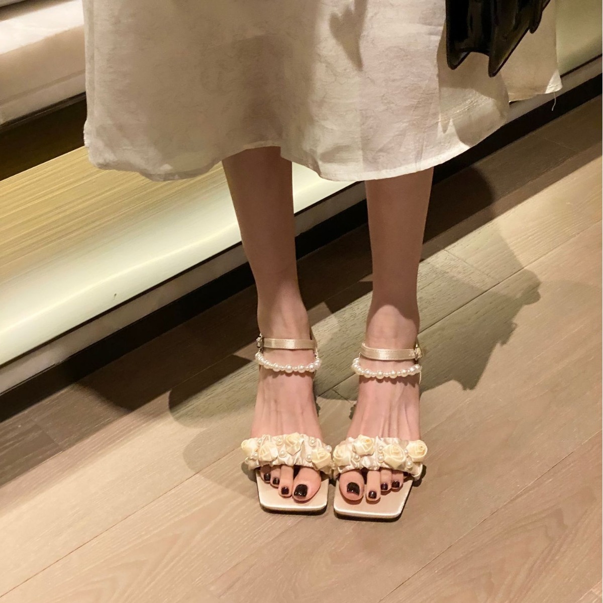 少女甜美珍珠花卉配裙子鞋气质露趾一字扣带时装凉鞋凉拖夏