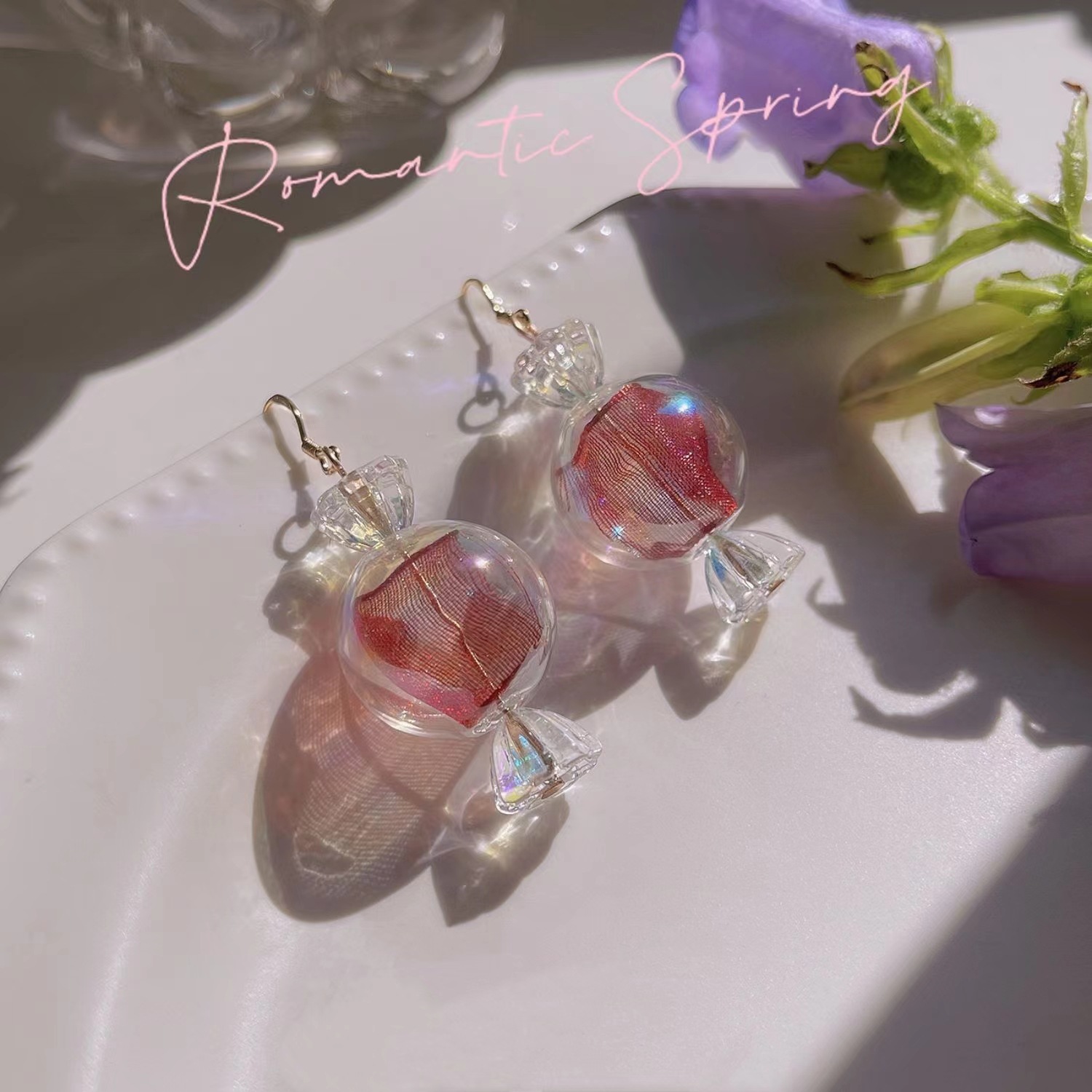 【有耳夹】幻彩玻璃气泡立体纱质夹心糖果可爱925银手作耳环耳夹
