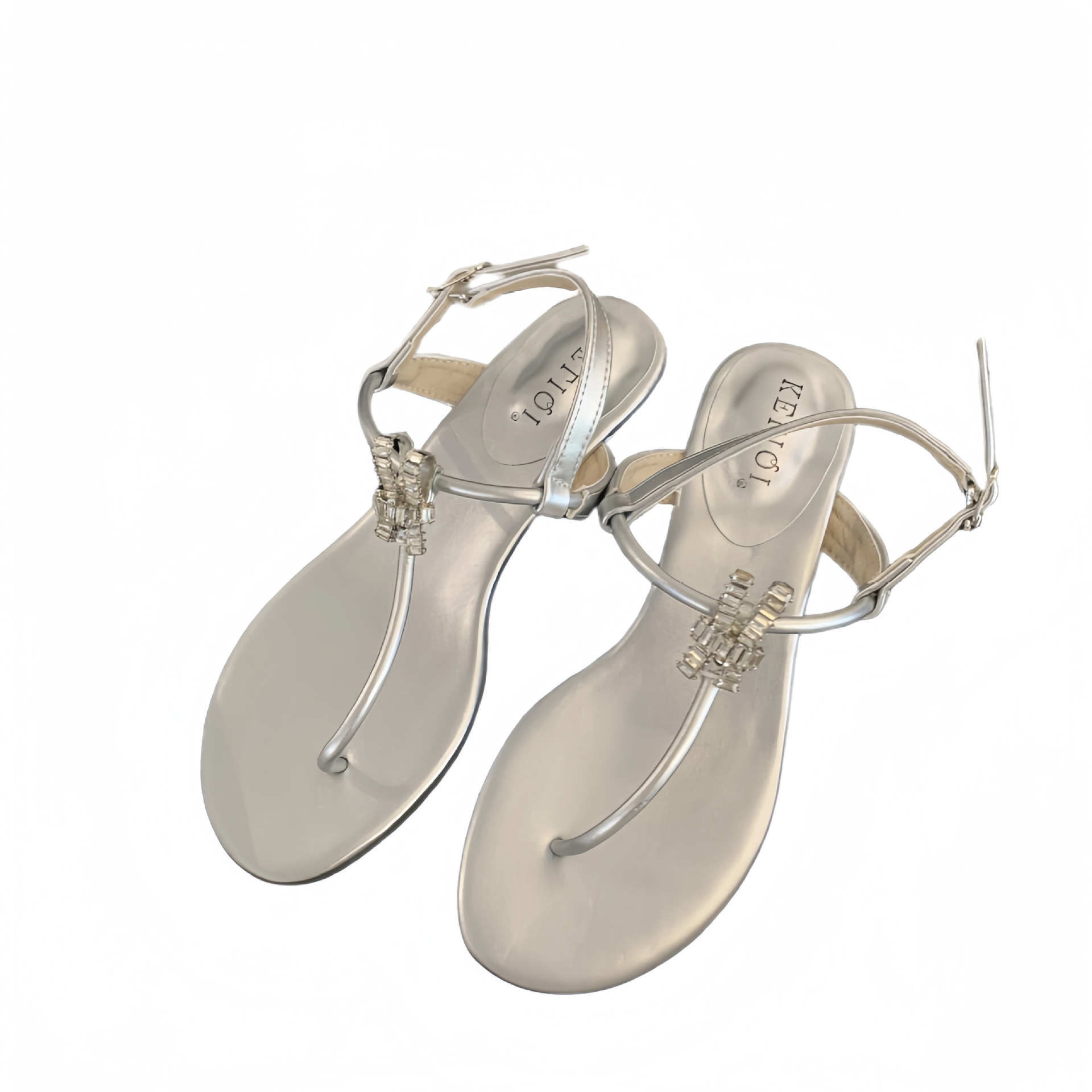 夏新款欧美水晶钻夹脚趾平底扣带沙滩海边度假凉鞋女ins潮