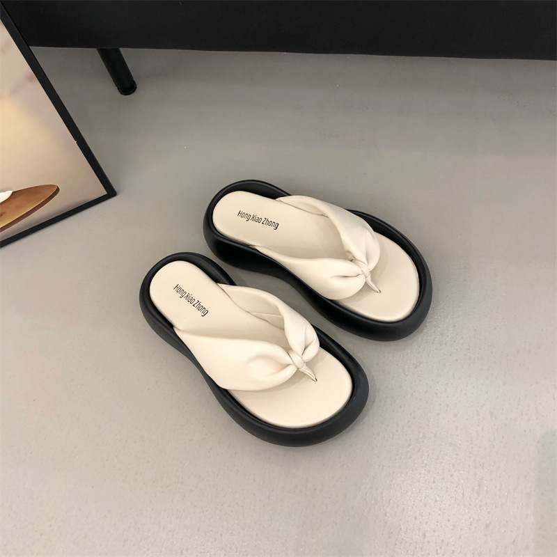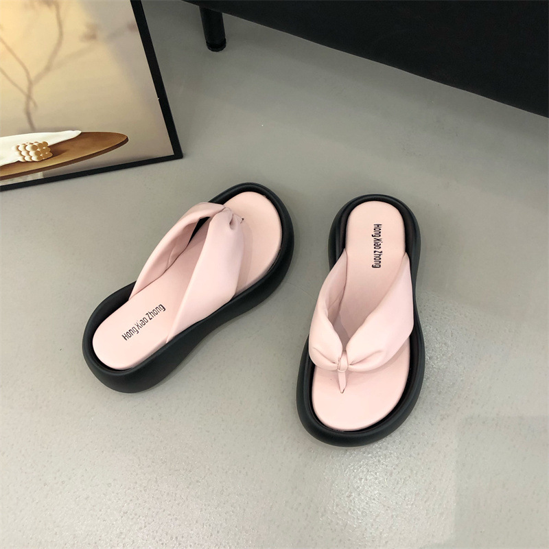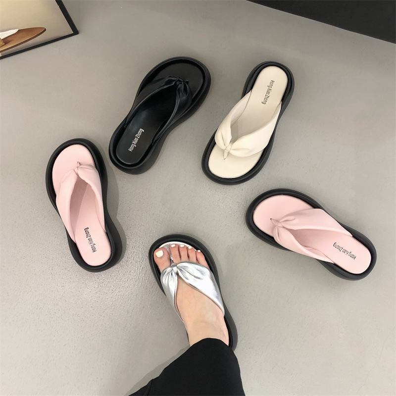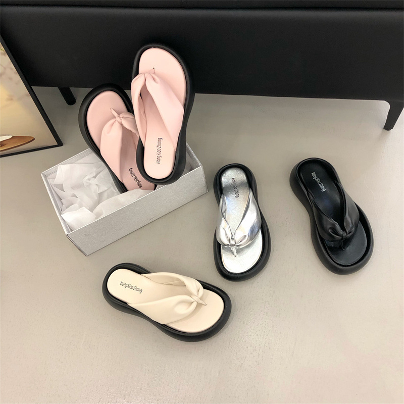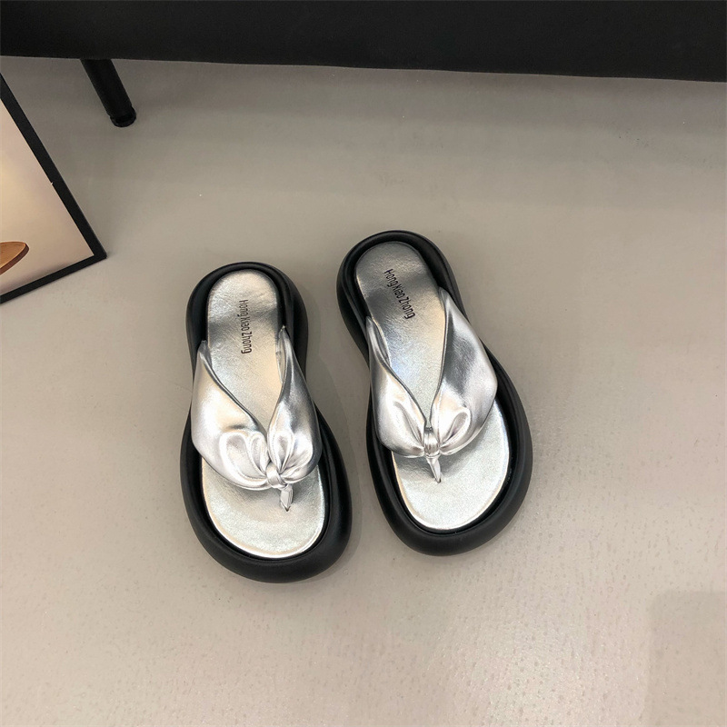网红厚底凉拖松糕拖鞋女新款夏季外穿气质银色夹脚人字拖凉鞋