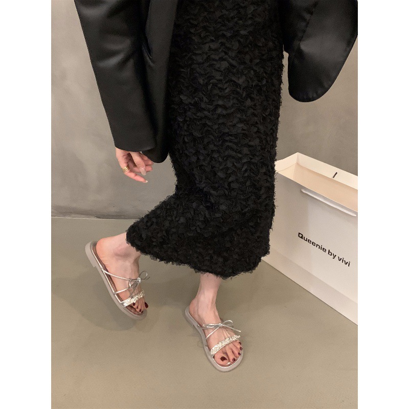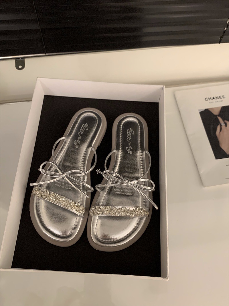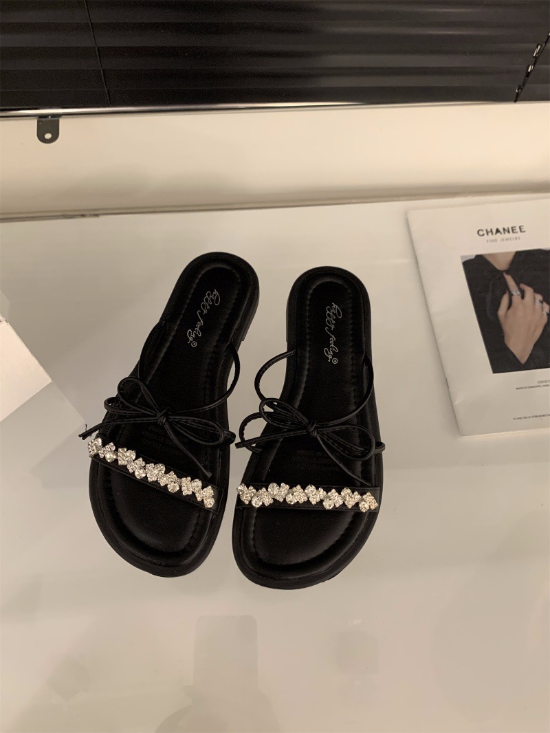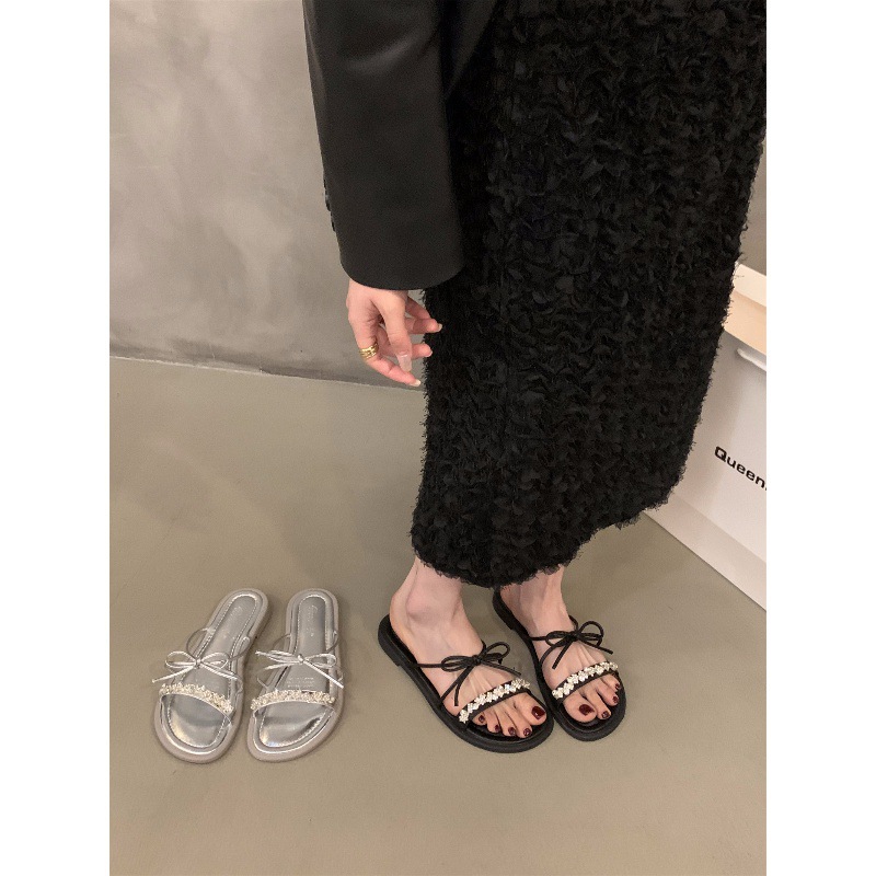 平底蝴蝶结拖鞋仙女鞋子外穿夏季软底沙滩法式小凉拖水钻凉鞋