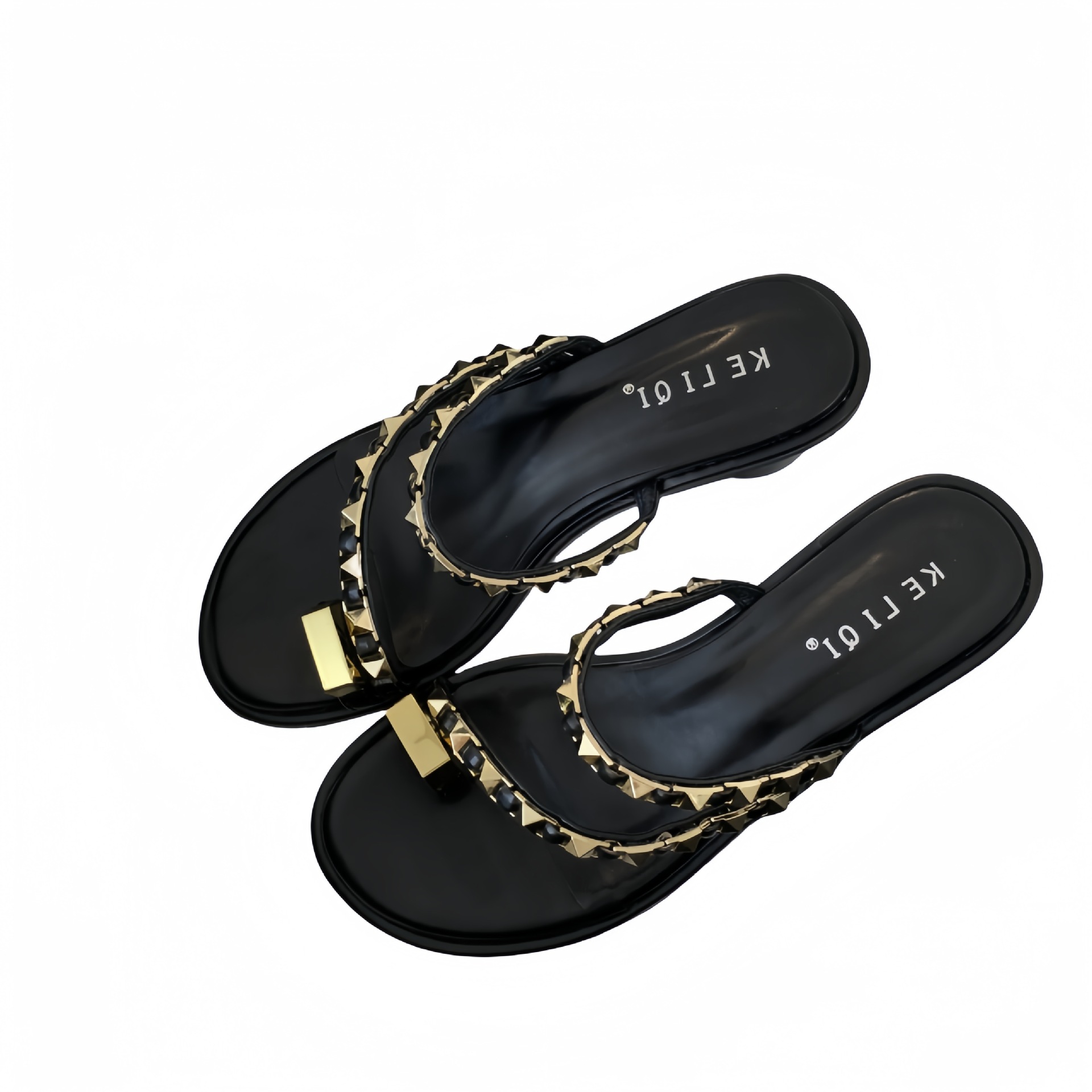 粗跟法式高级感金属套趾拖鞋女外穿夏季新款中跟凉鞋