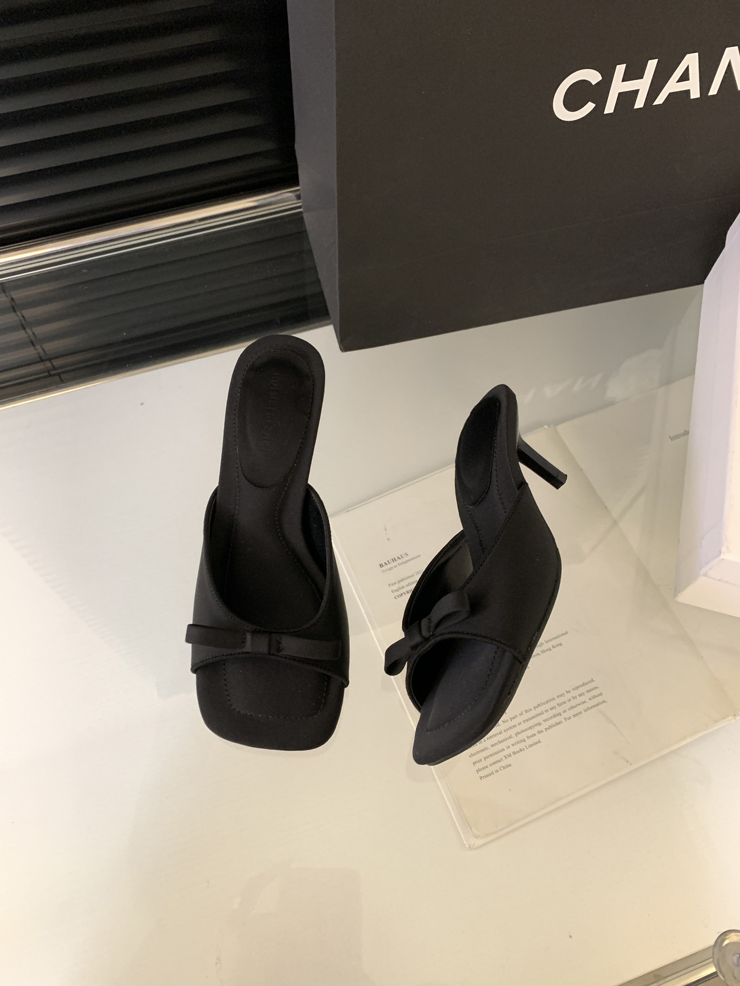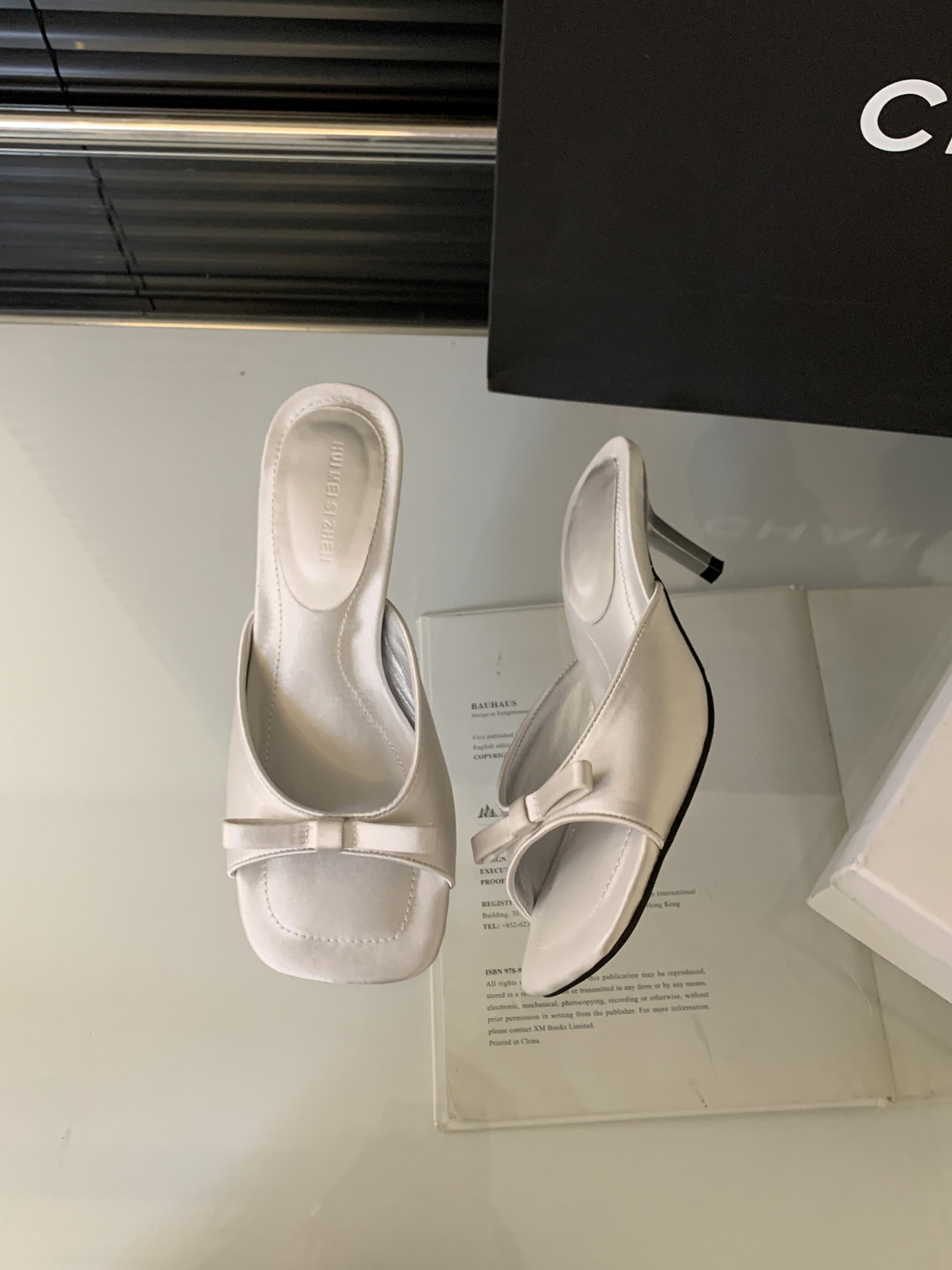 法式高级感纯色蝴蝶结方头露趾细跟凉拖鞋夏季仙女风外穿高跟鞋