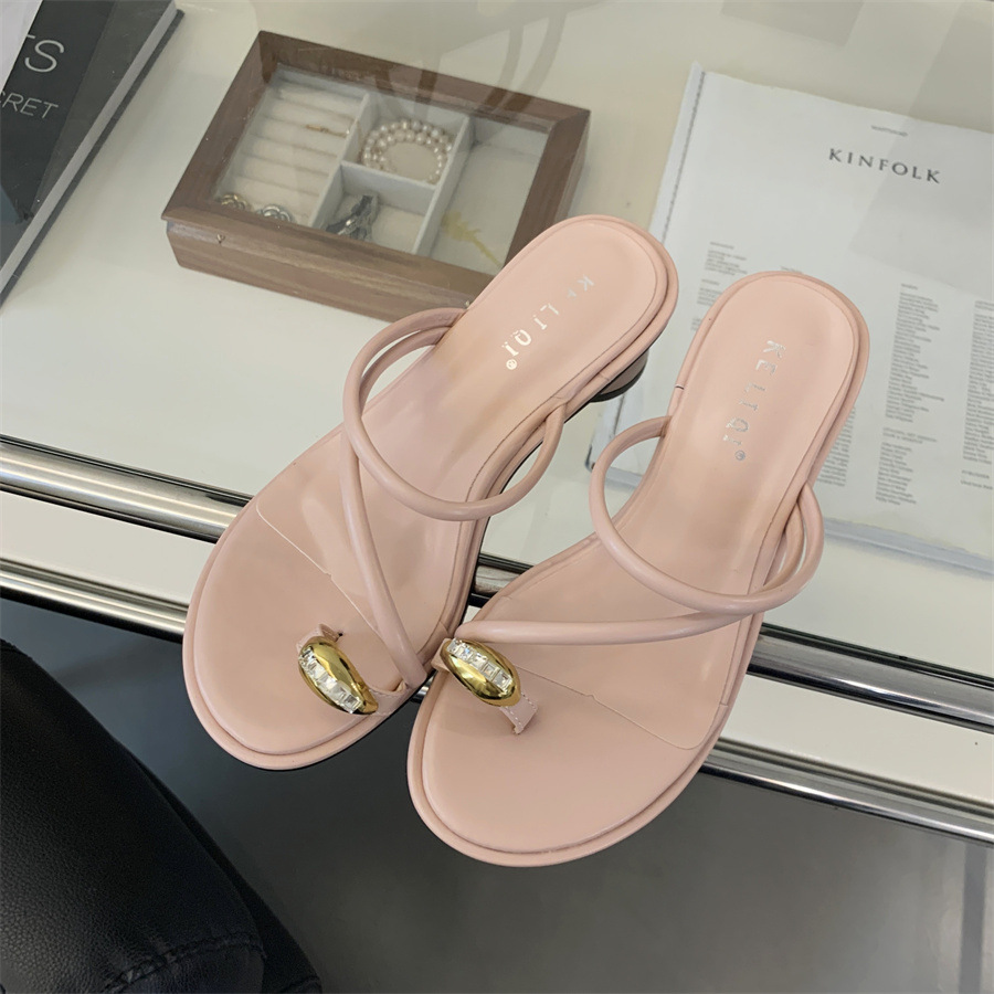 套趾拖鞋女外穿夏季新款时尚百搭小个子粗跟防滑复古凉拖鞋