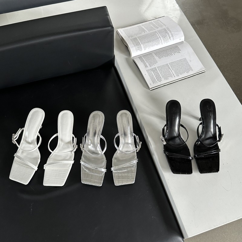 夏季新款蝴蝶结气质方头露趾法式高跟水钻扣凉拖鞋女外穿