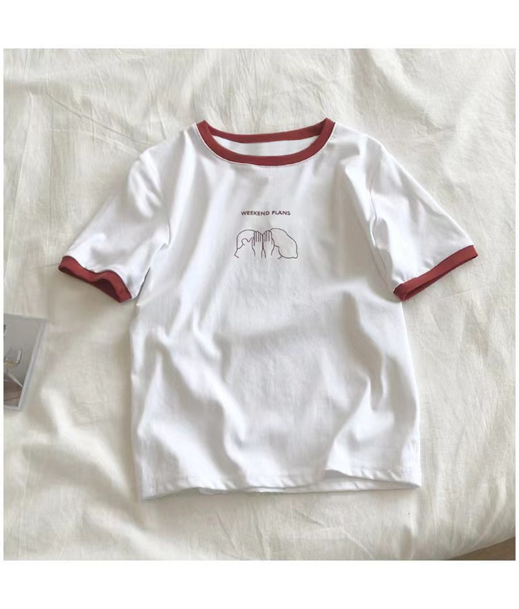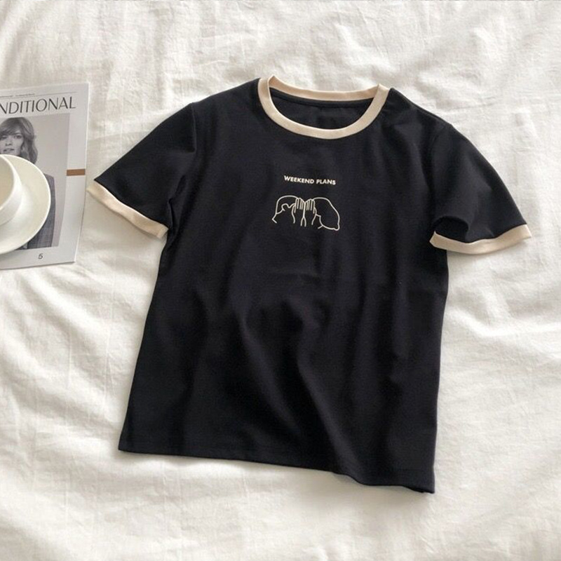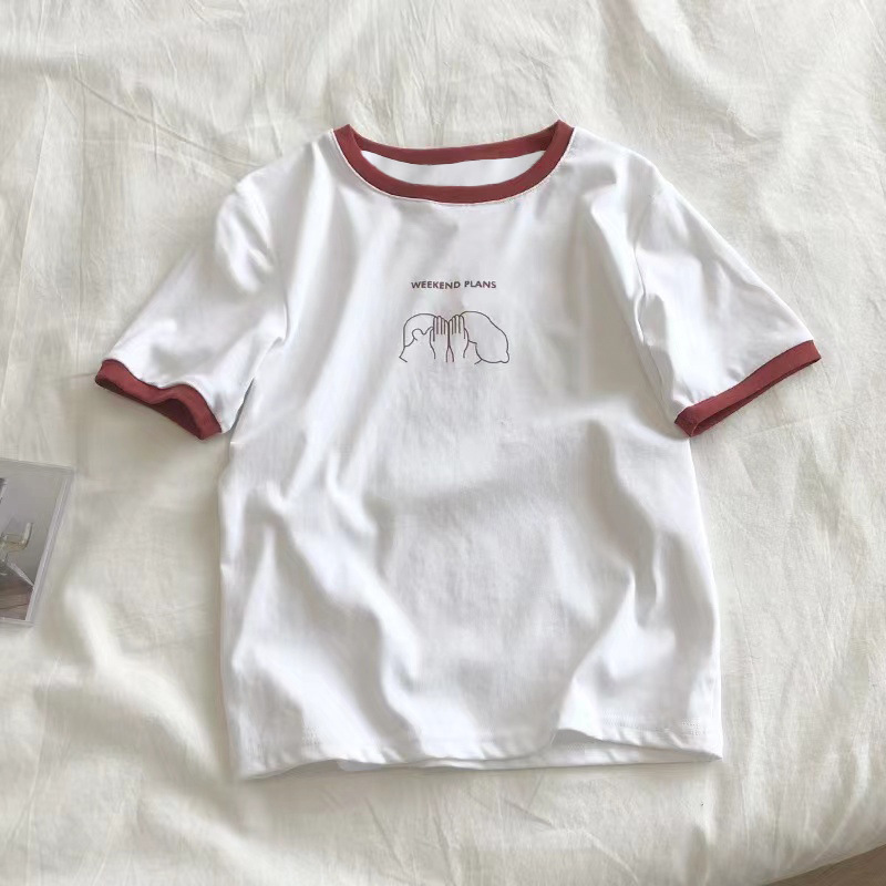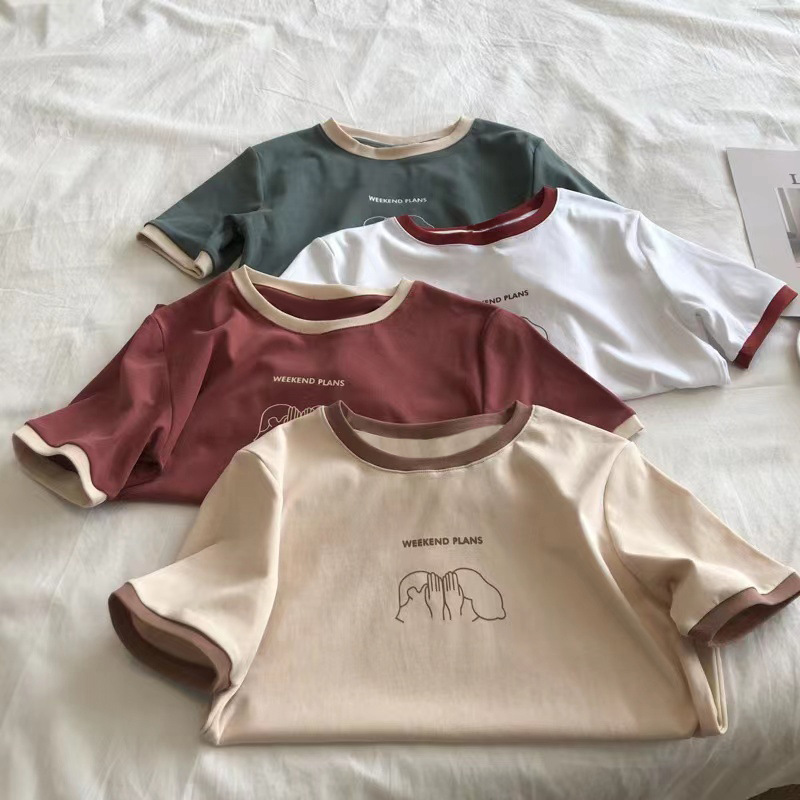 插色修身短袖T恤女夏季新款打底衫学生休闲韩版上衣外贸女装