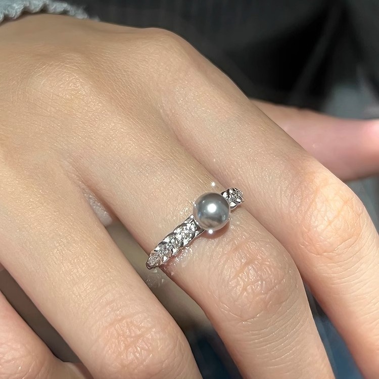 方糖家 精致轻奢麦穗锆石施家珍珠可调节指环高级食指戒