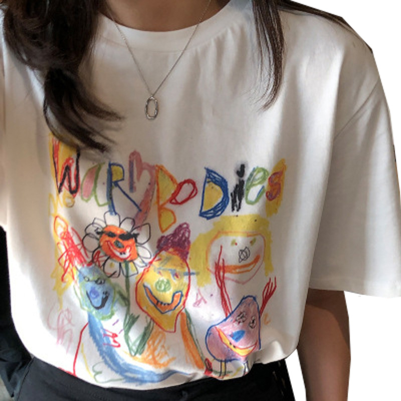 涂鸦白色短袖女韩版宽松半袖T恤女新款夏季学生百搭打底上衣